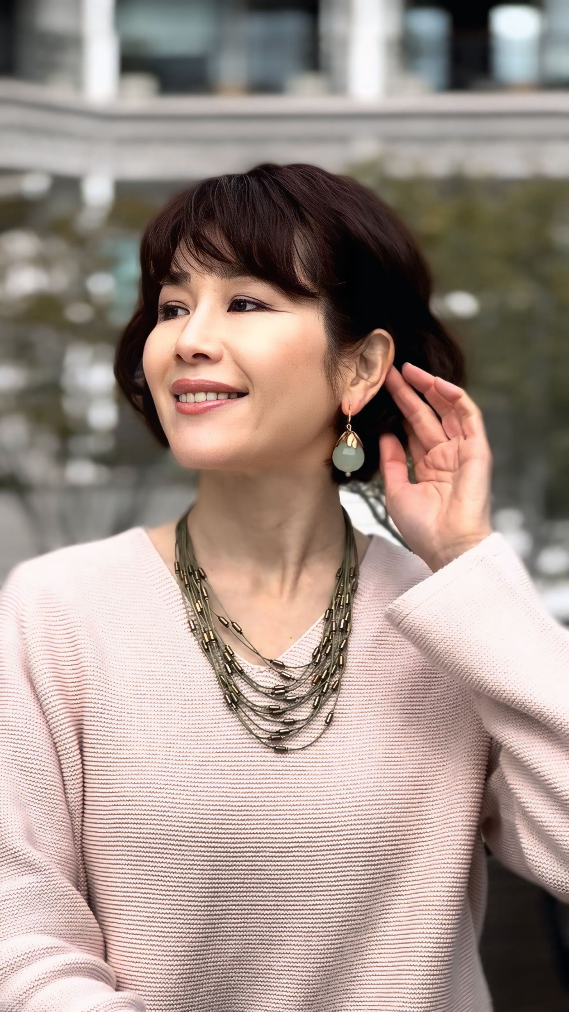 ニットやワンピースなどシンプルな装いに合わせることでより上品で洗練された雰囲気を与えてくれますヨ!