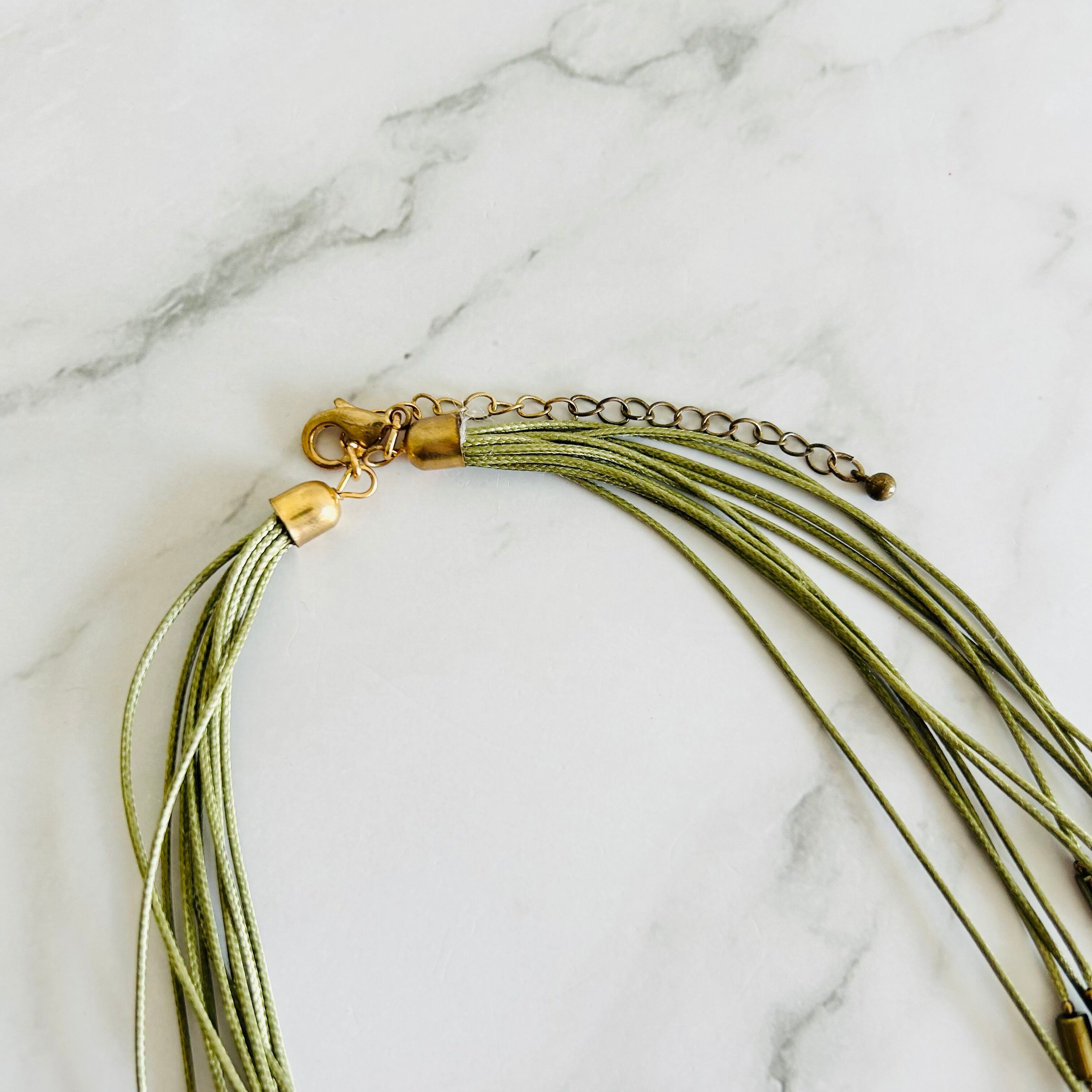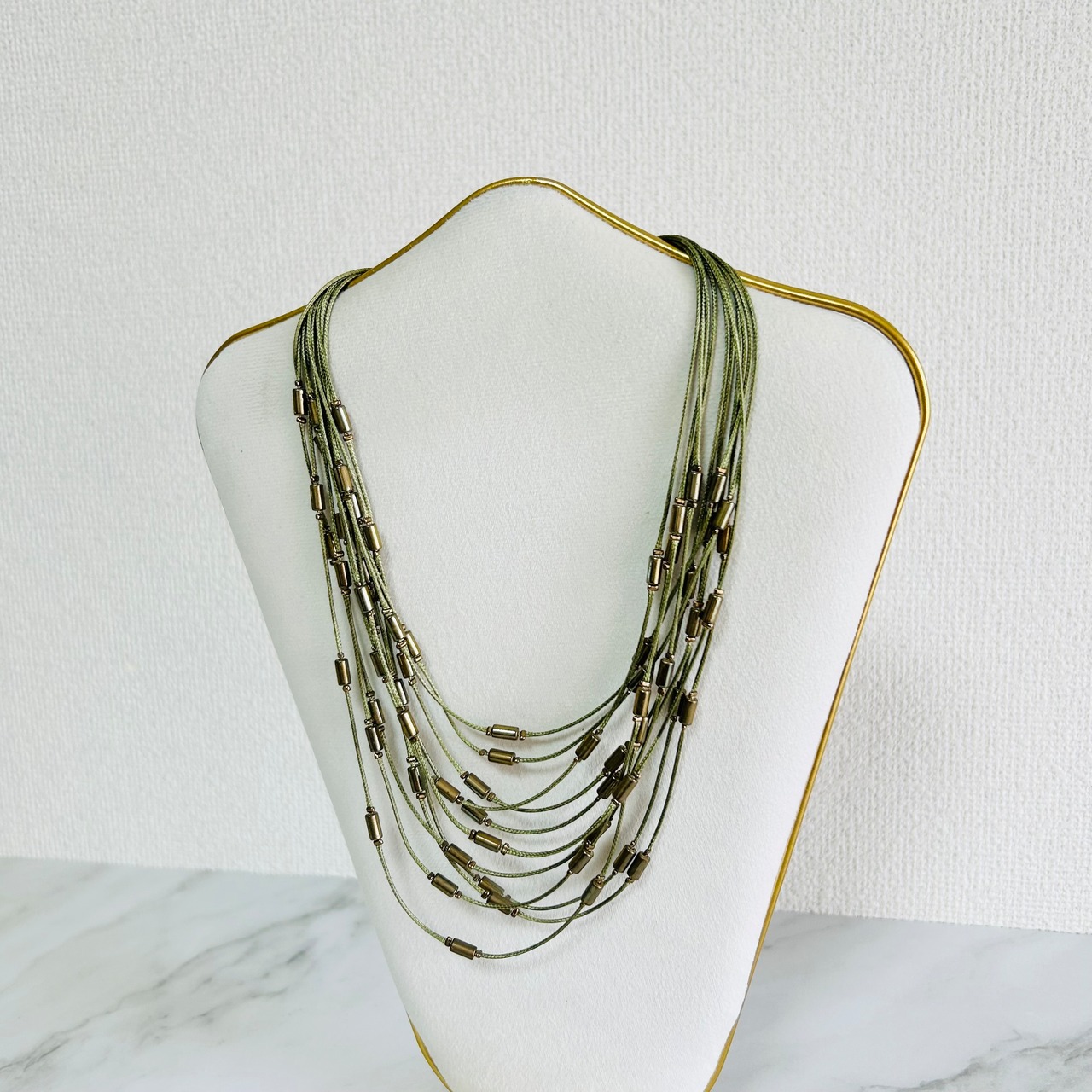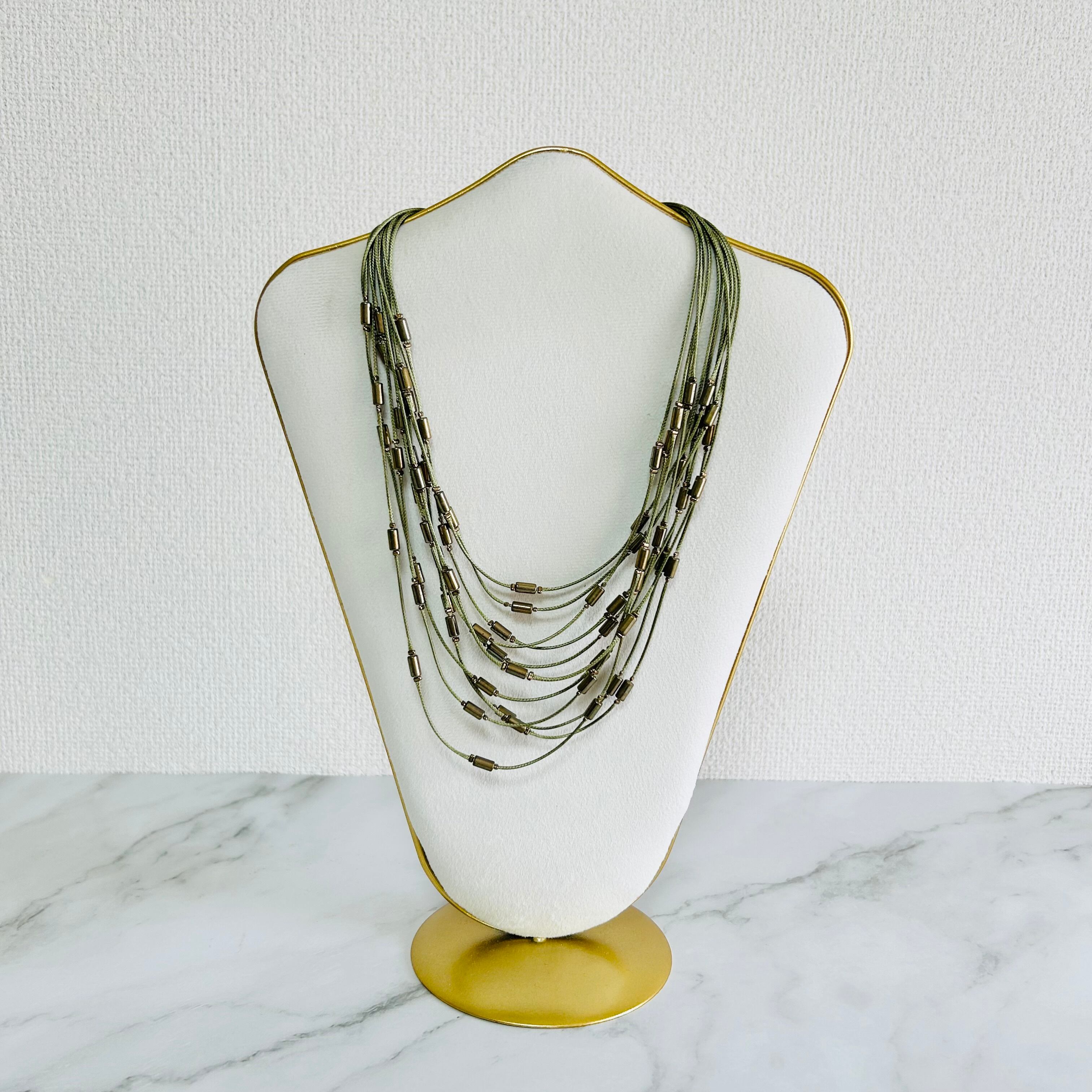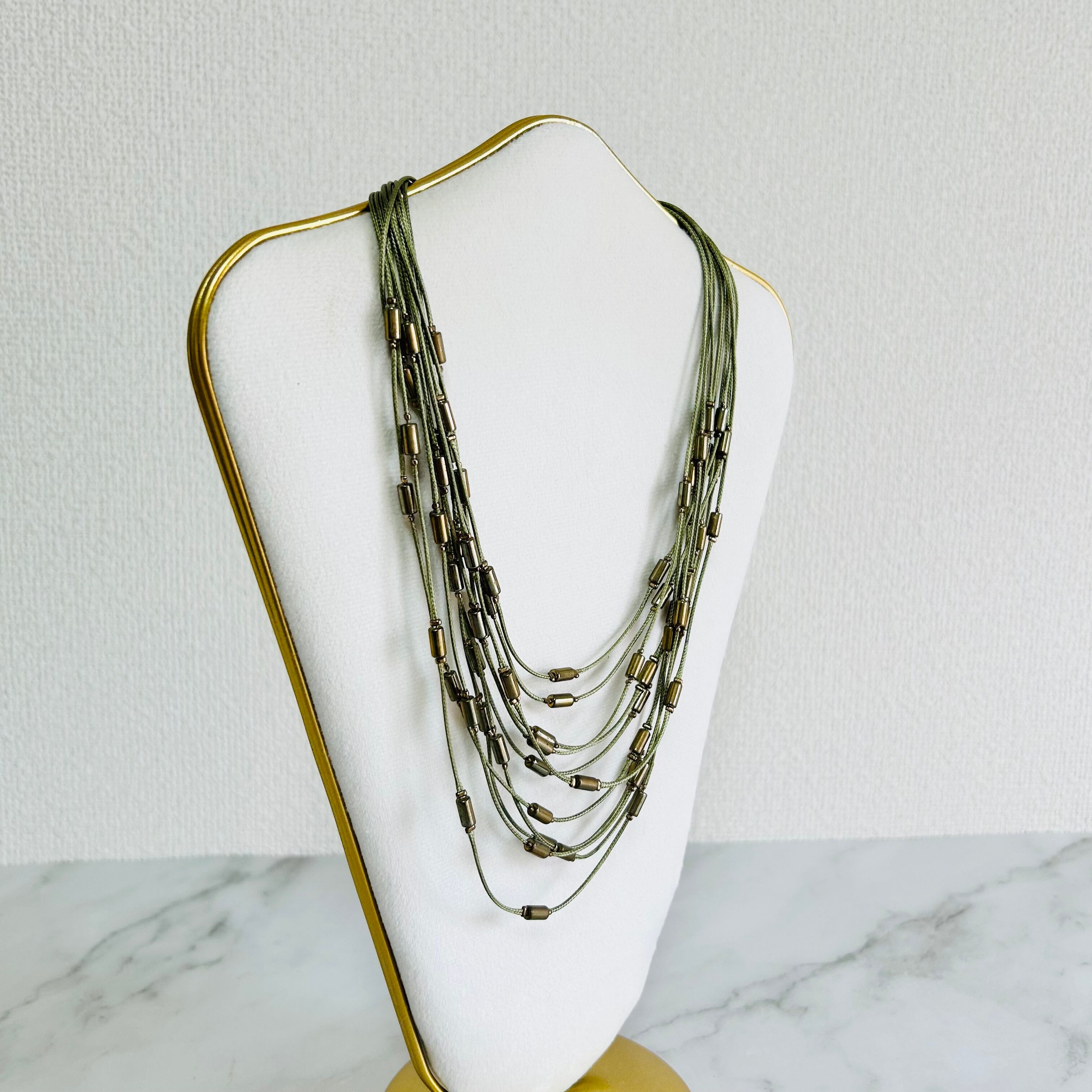 オリーブグリーン✖️アンティークゴールドカラーのネックレスです。