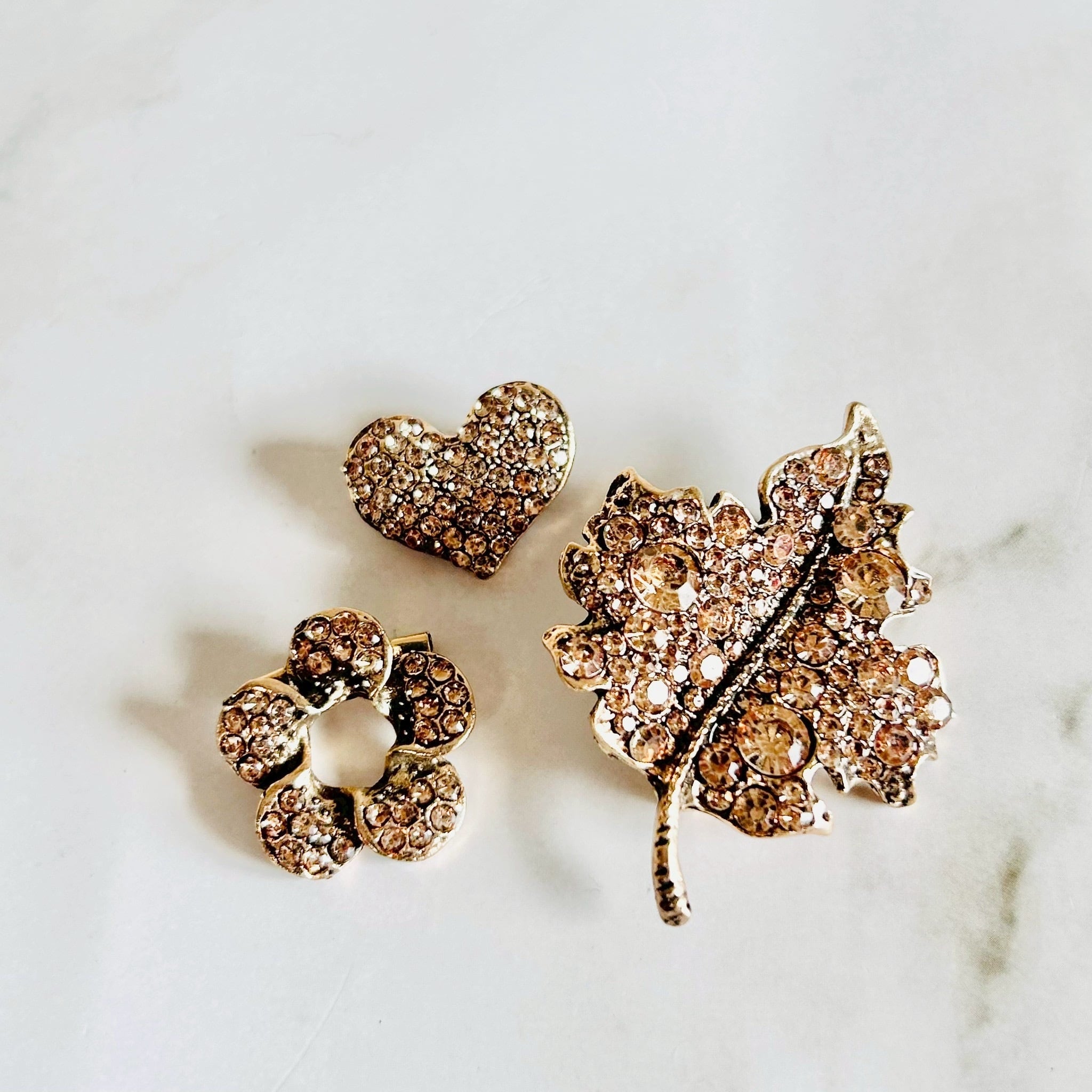 クリスタル✖️アンティークゴールドカラーのブローチ3点セットです。