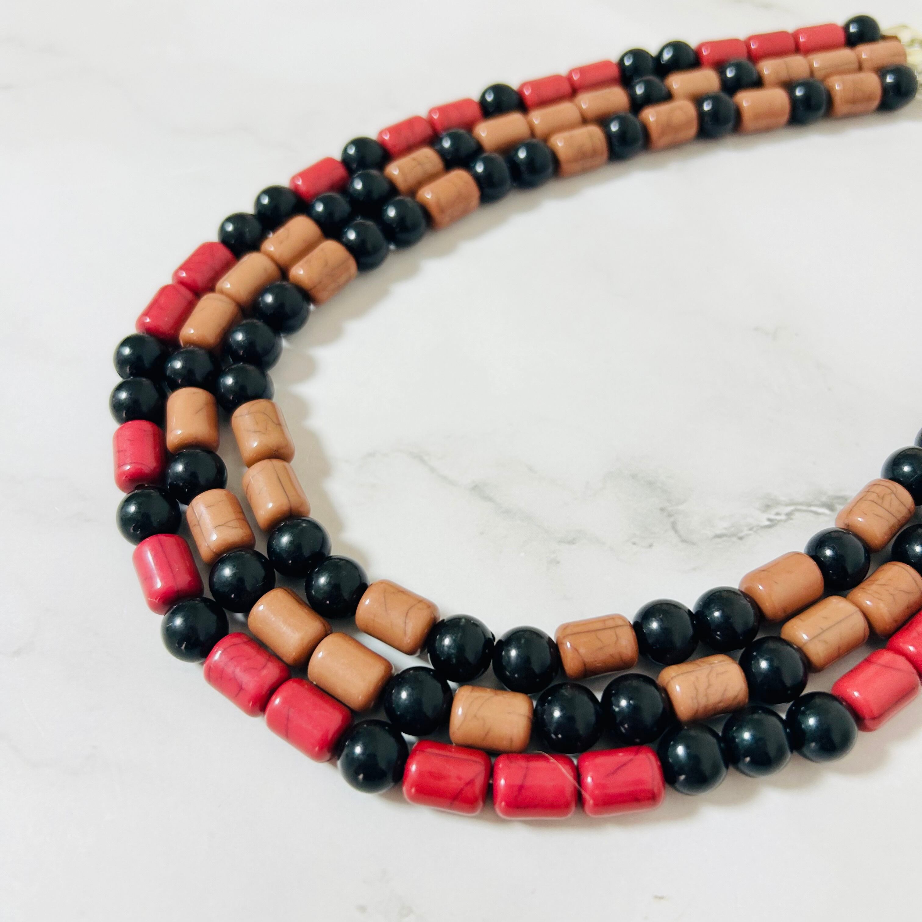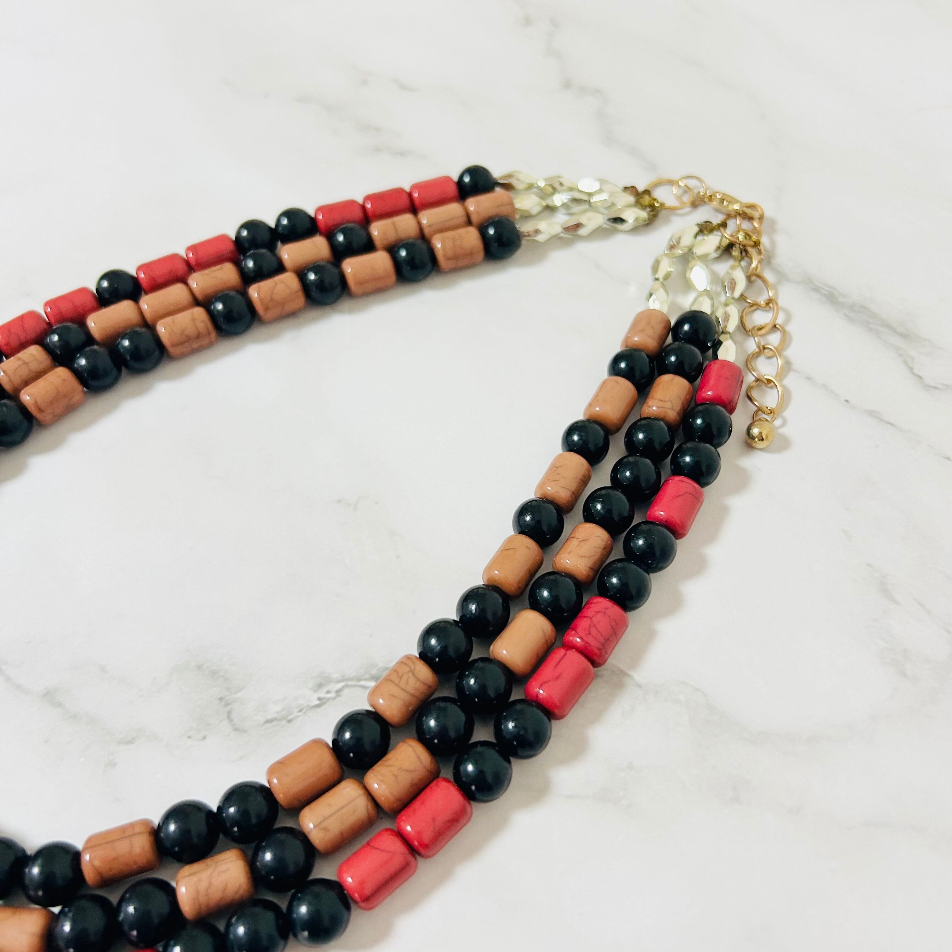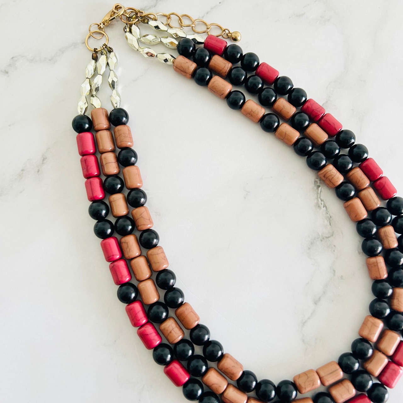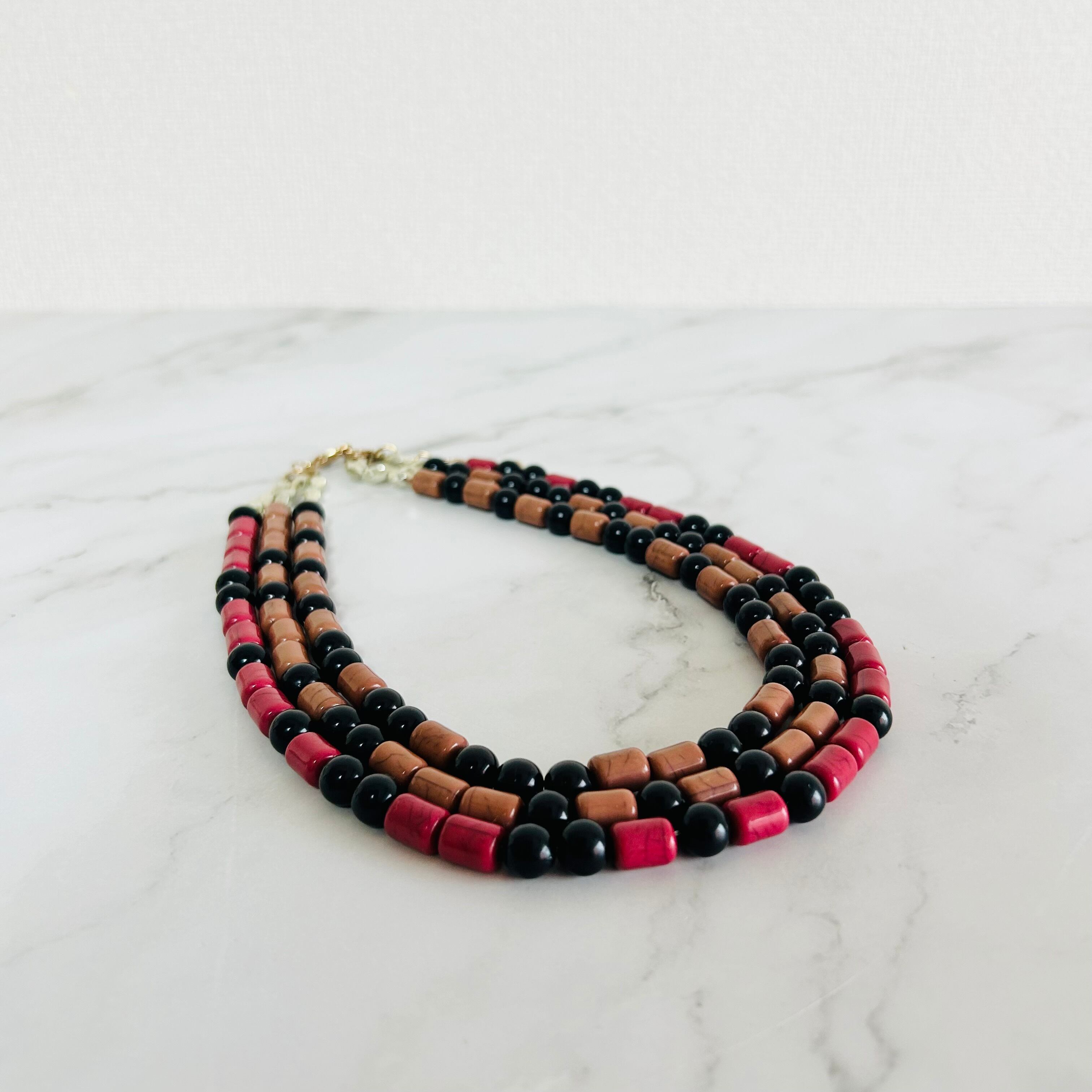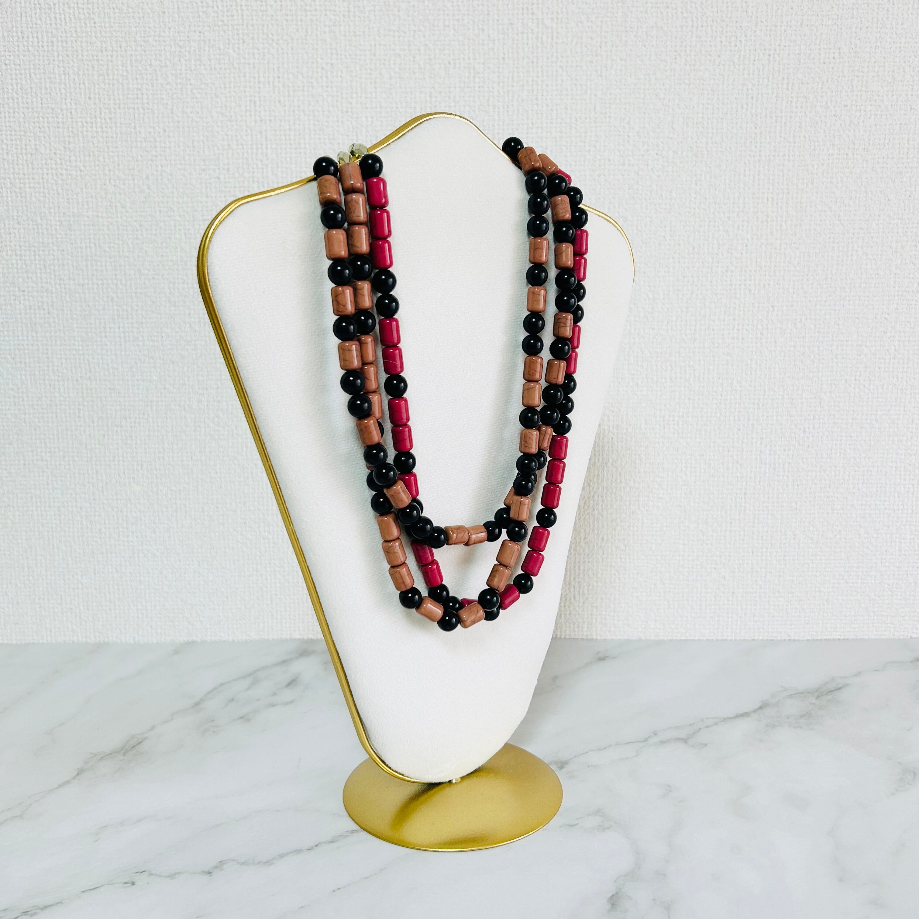 ピンクブラウン、シルバー、ブラック✖️アンティークゴールドカラーのネックレスです。