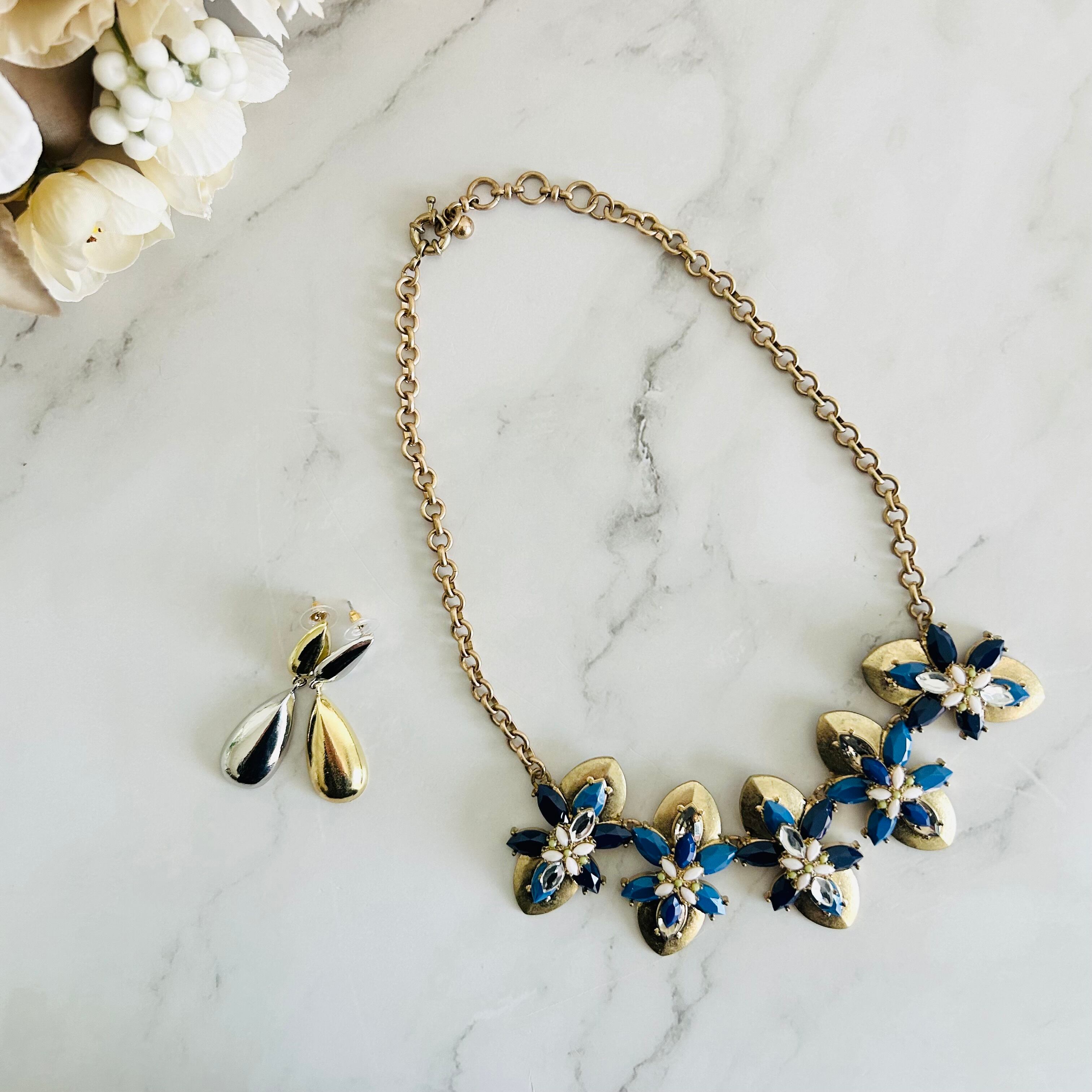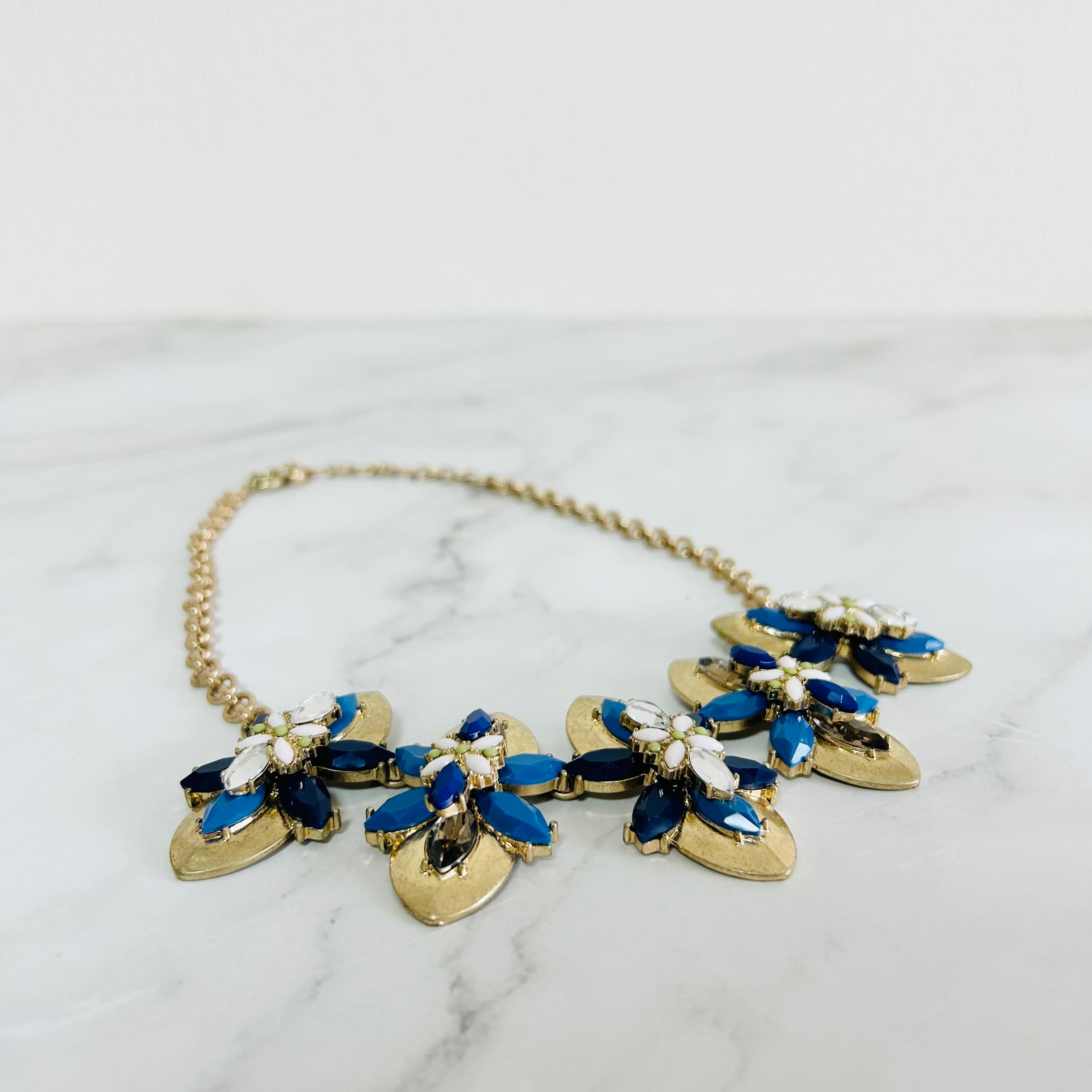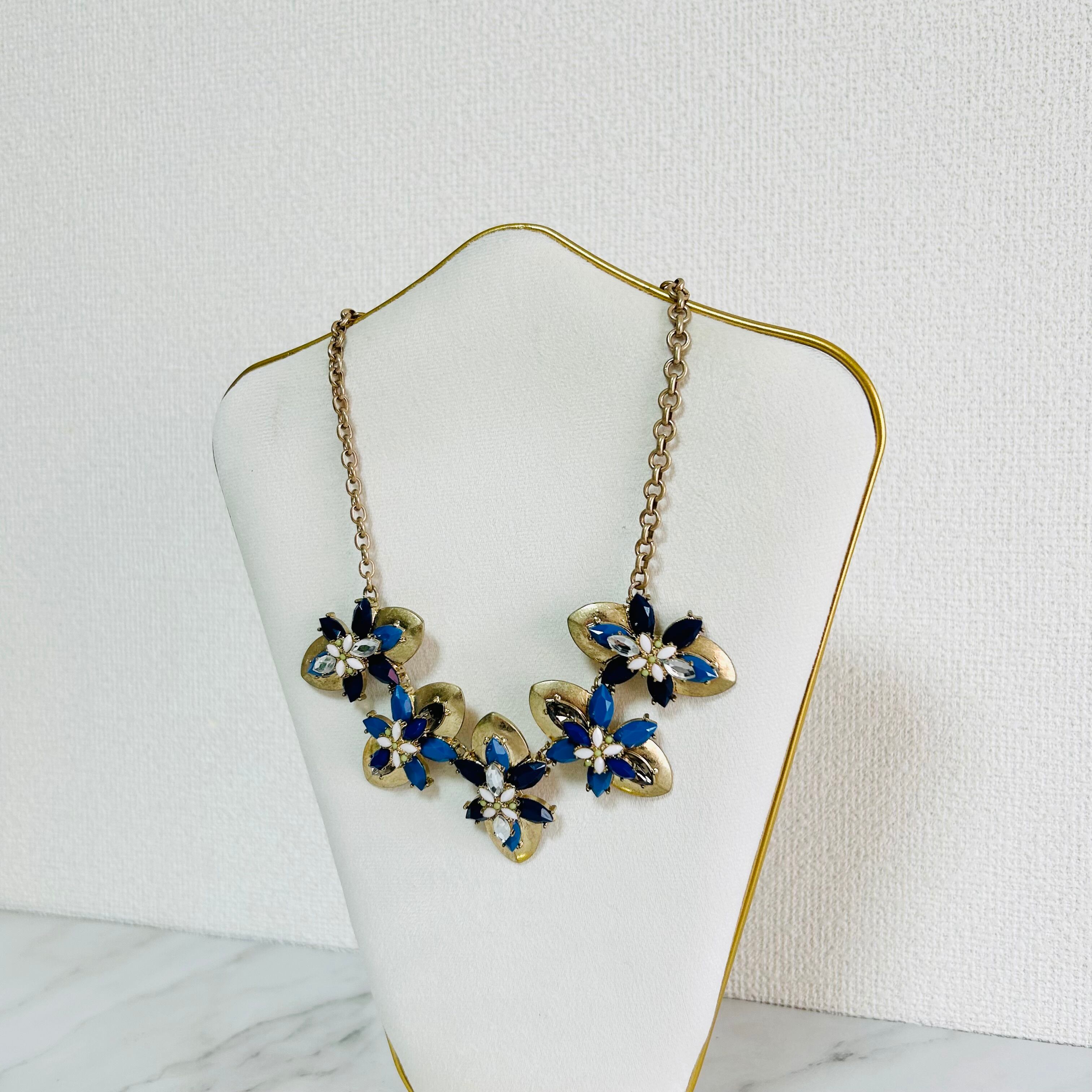 ブルー系✖️アンティークゴールドカラーのネックレスです。
