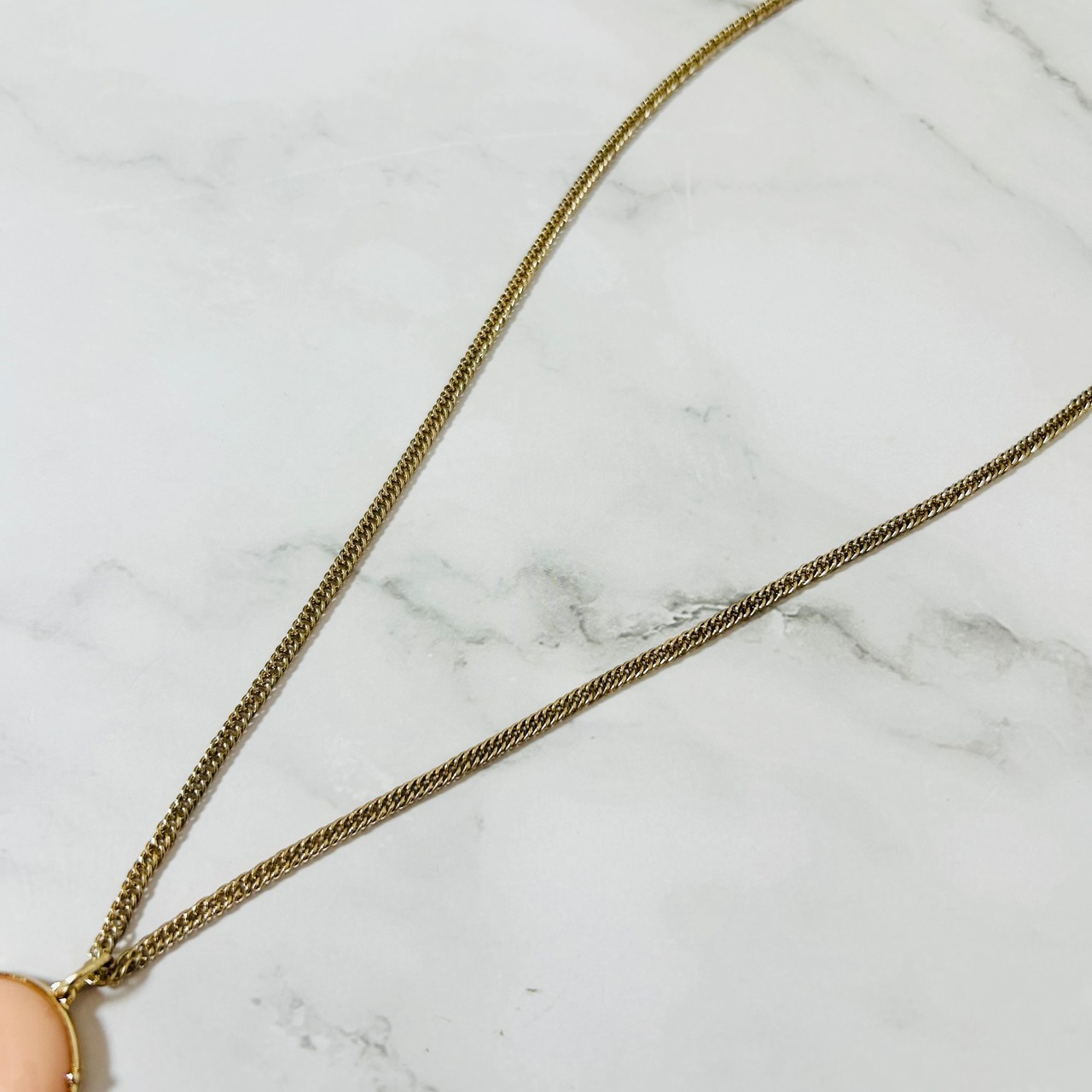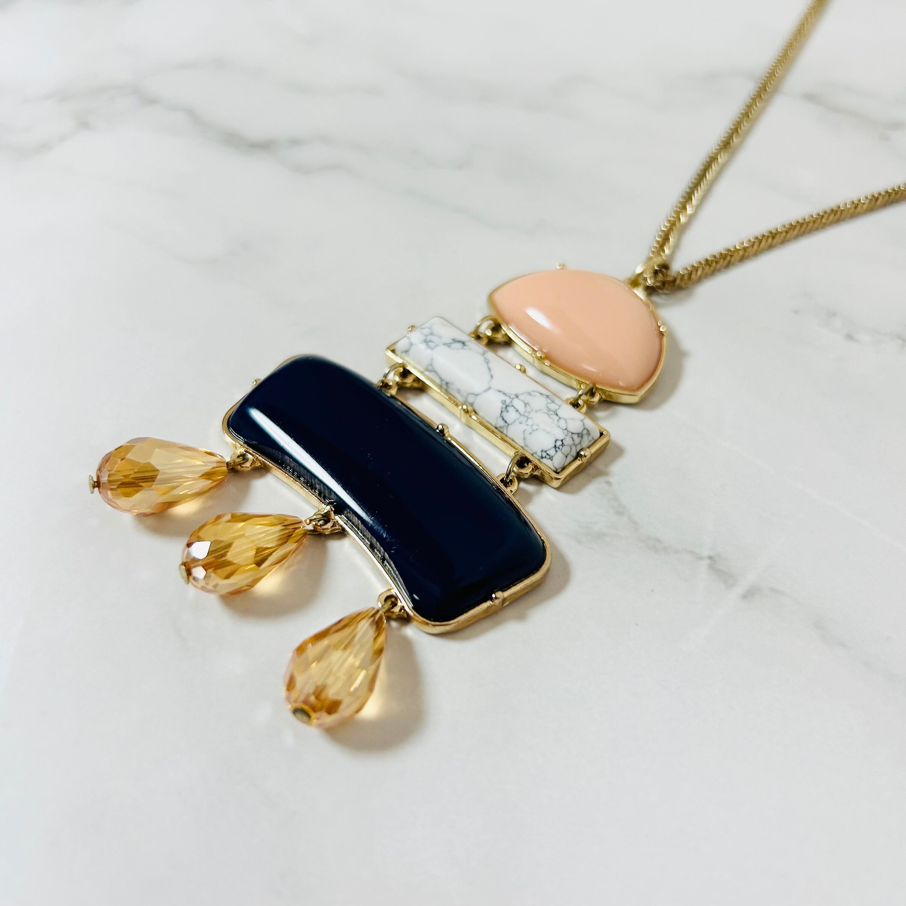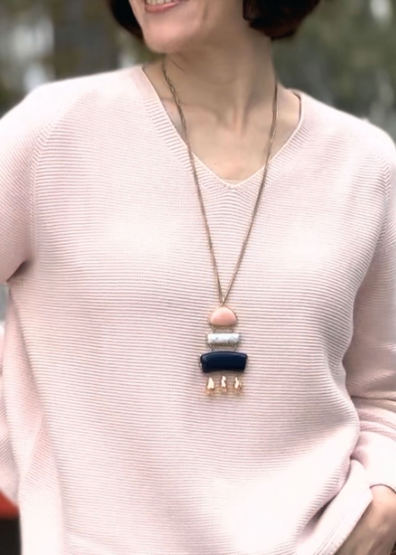 ピンク、ダークネイビー、ホワイト、クリアベージュ✖️アンティークゴールドカラーのロングネックレスです。