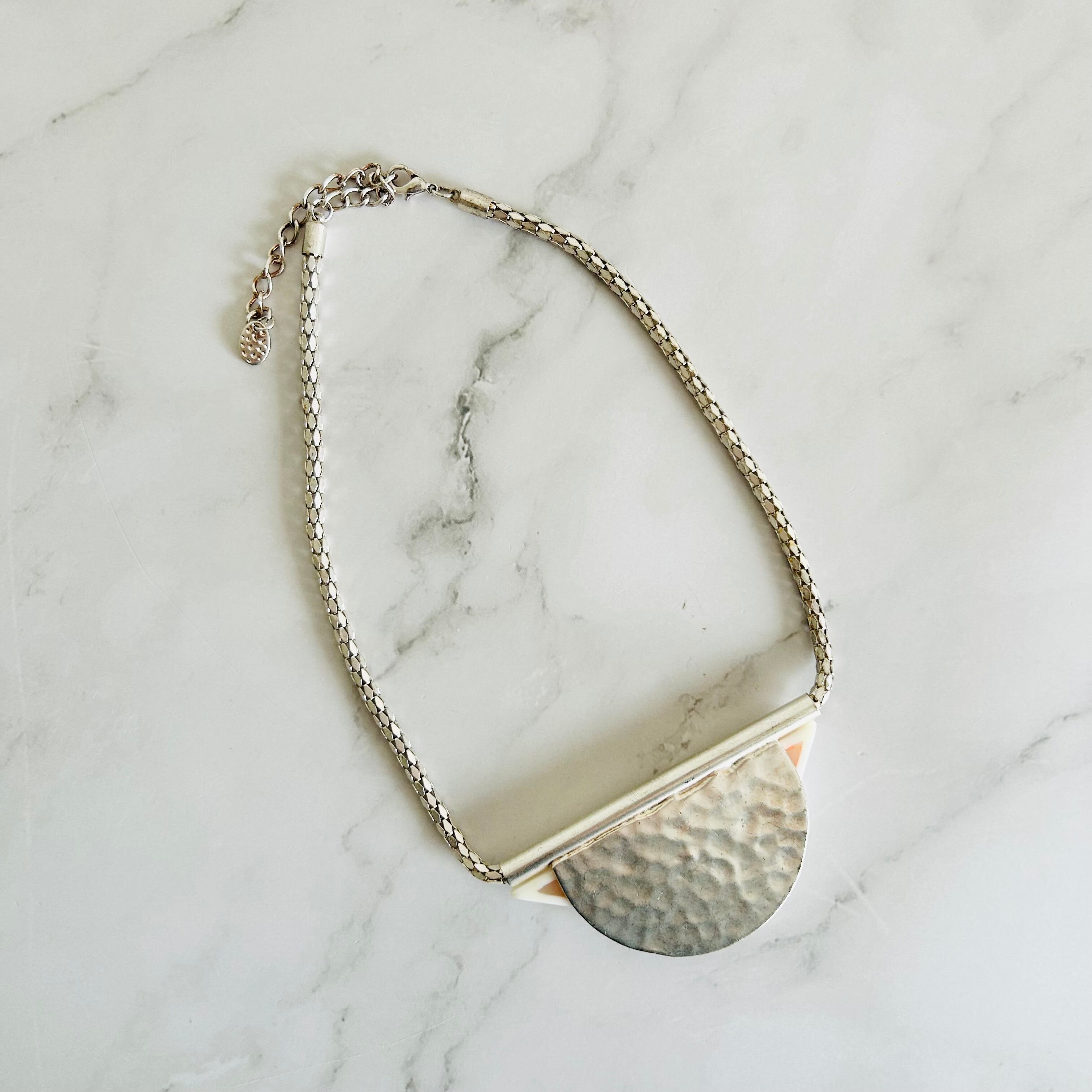 クリアオレンジ、ホワイト✖️シルバーカラーのネックレスです。