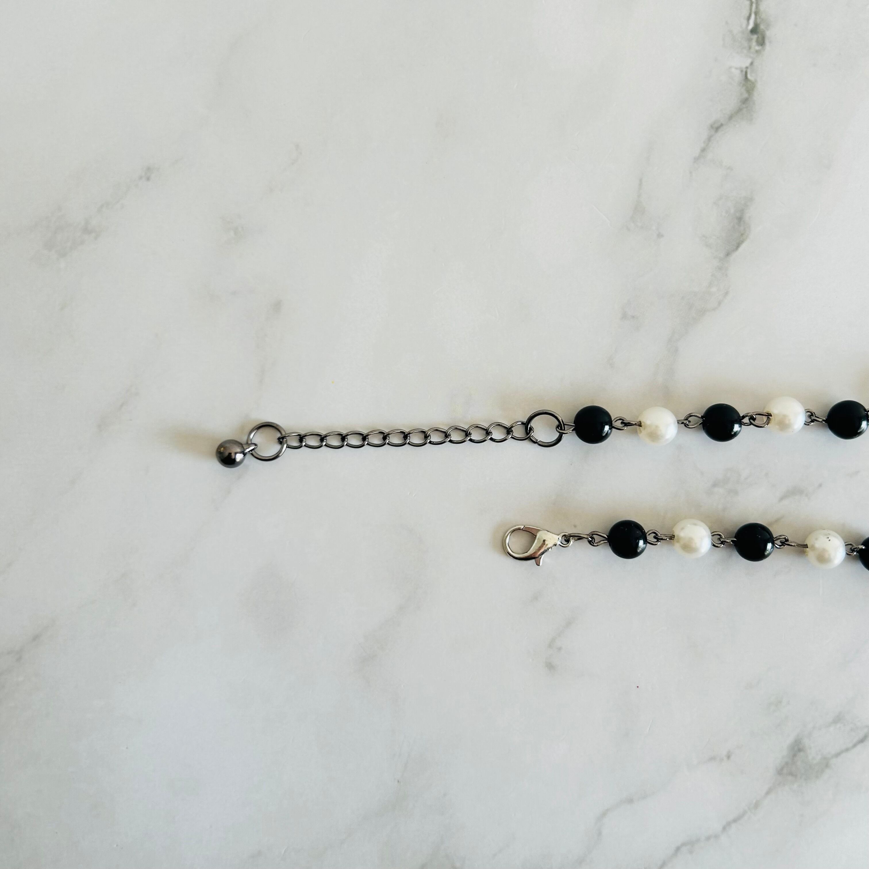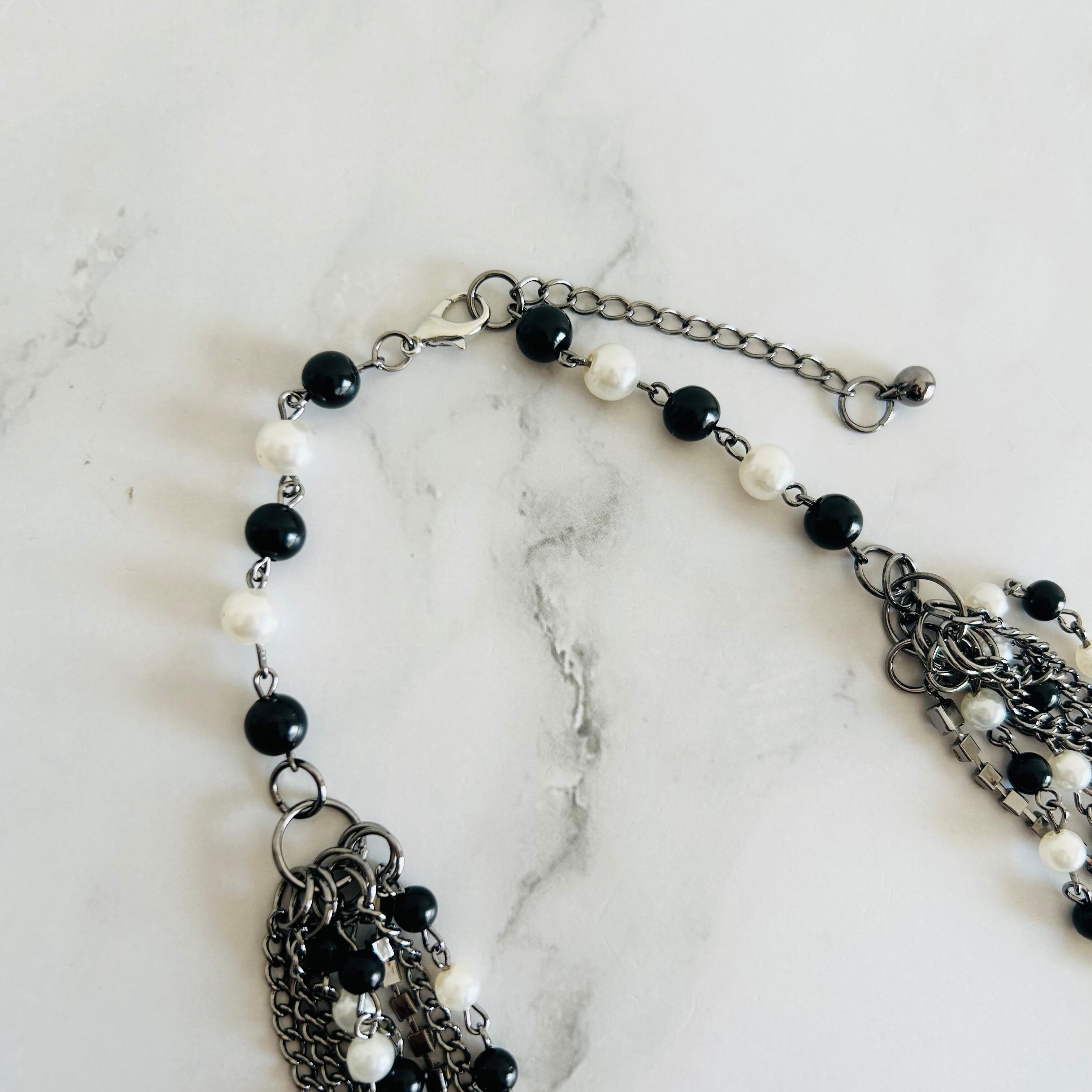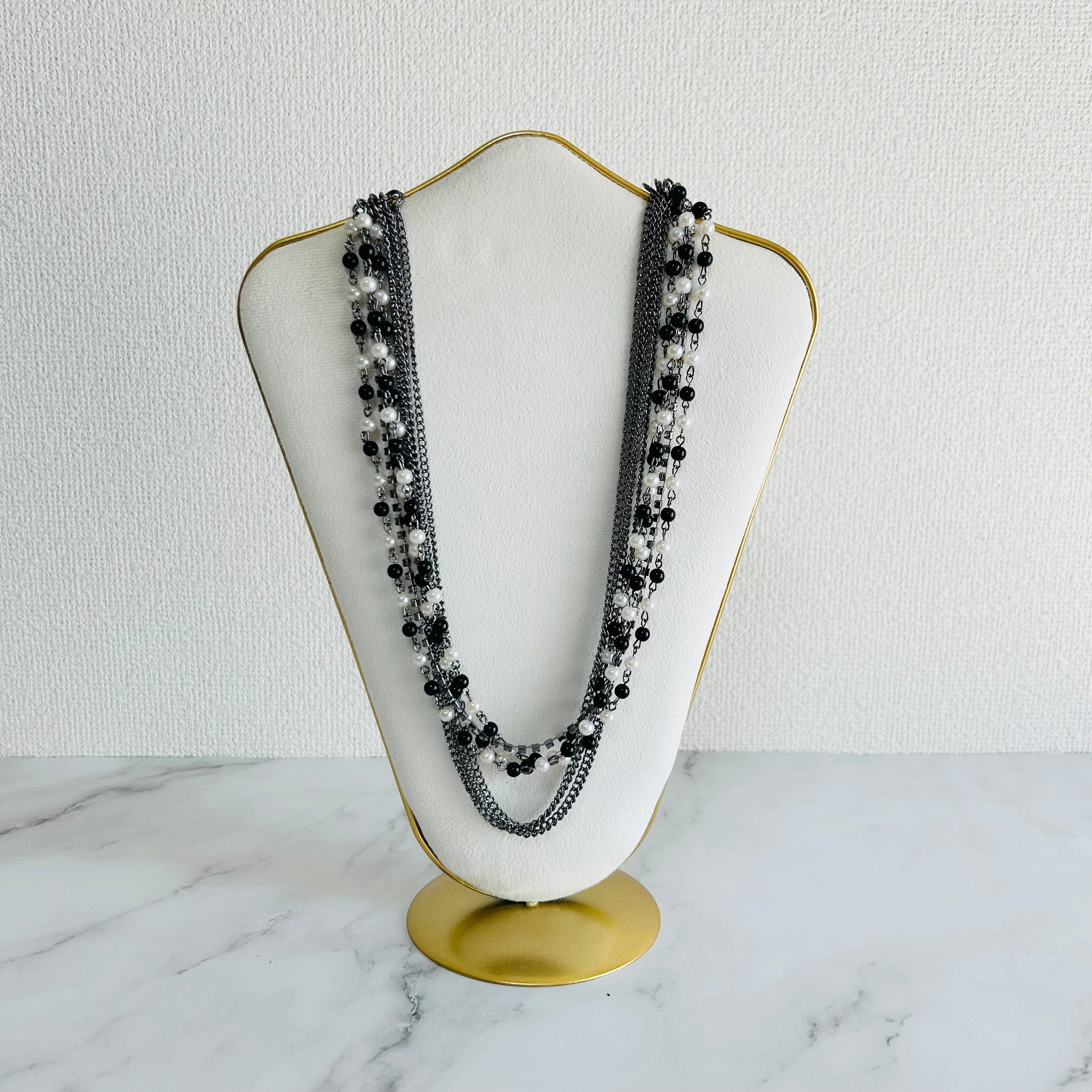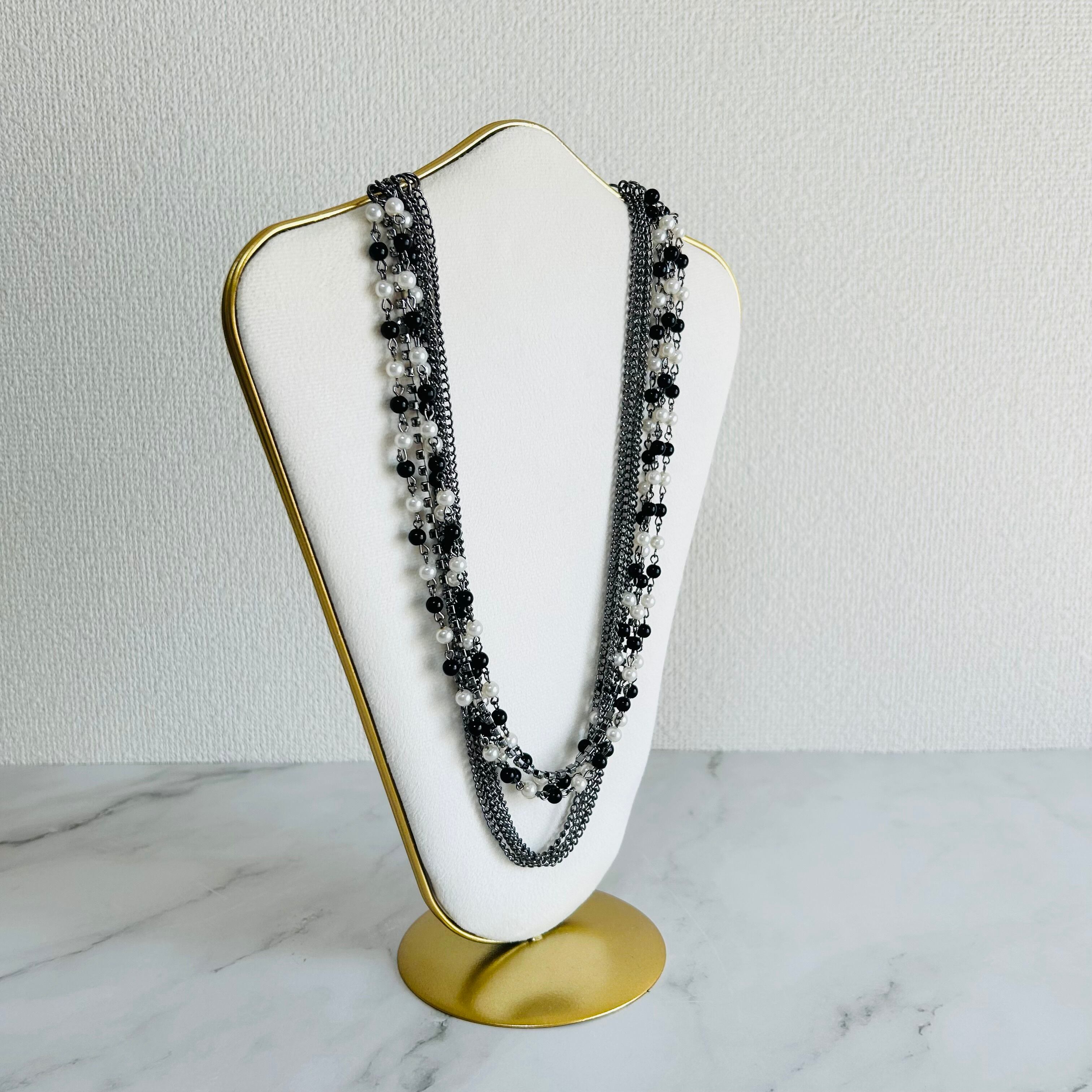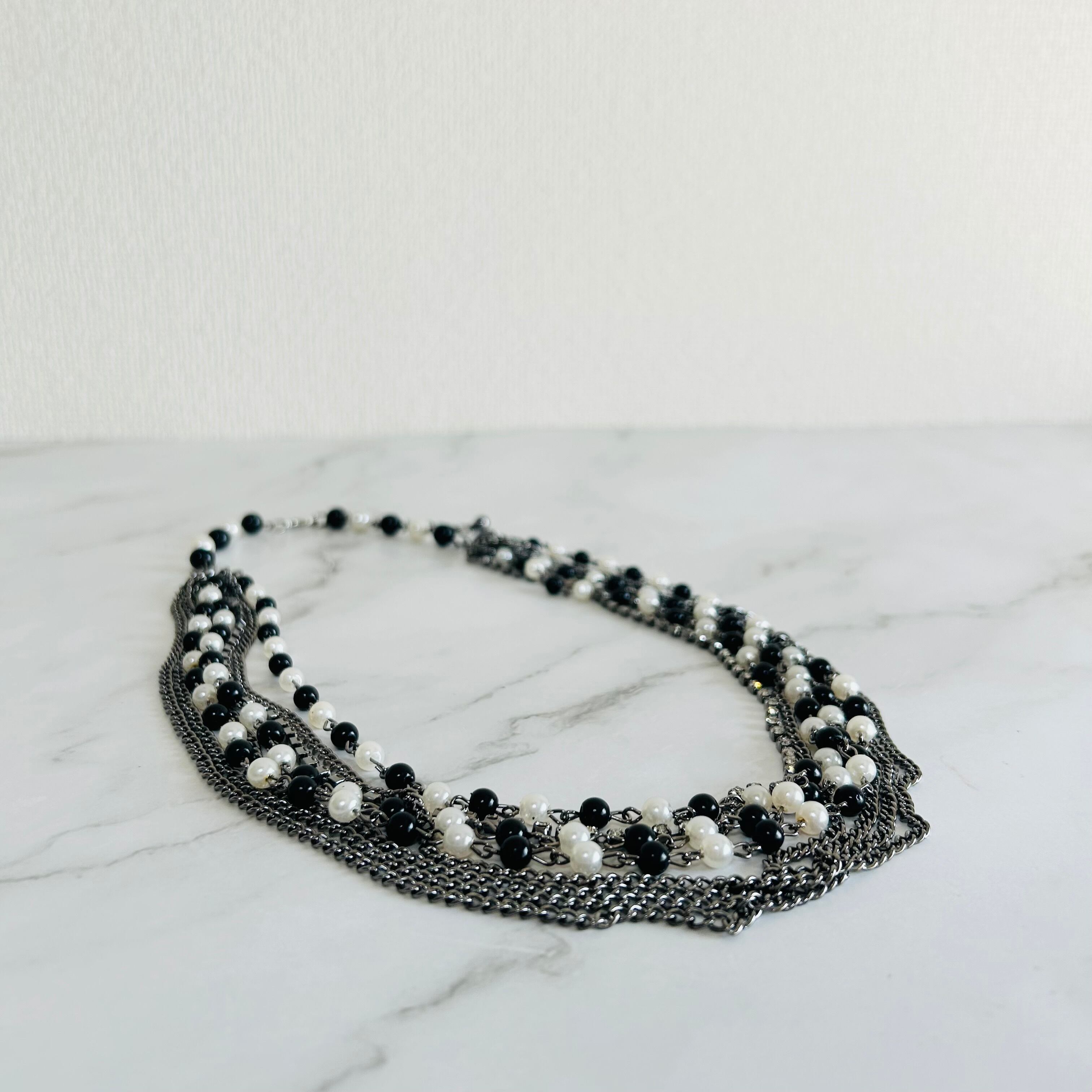パール、ブラックカラー✖️ブラックメタルカラーのネックレスです。