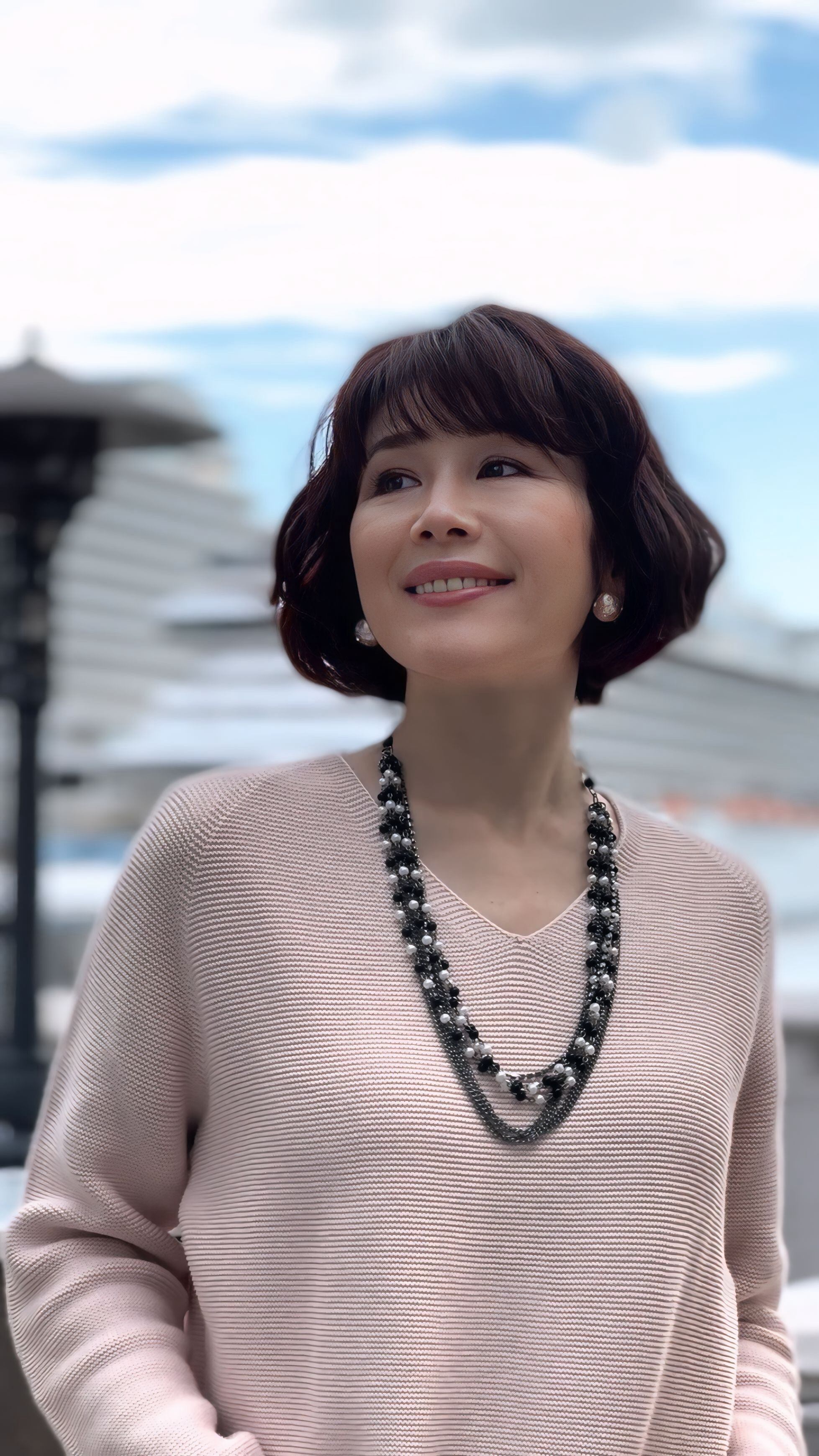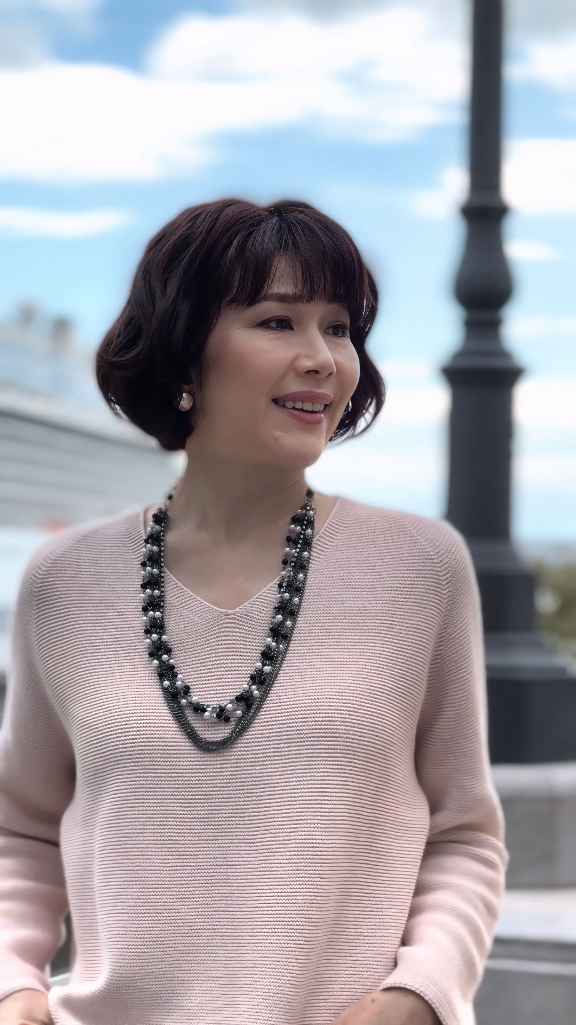 シンプルな無地のお洋服に合わせると、美しいデザインがより際立ち、さらに華やかな印象に仕上がります。