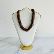 深みのあるワインレッドとアンティークゴールドのコントラストが美しく、クラシックな雰囲気を纏う華やかなネックレス。