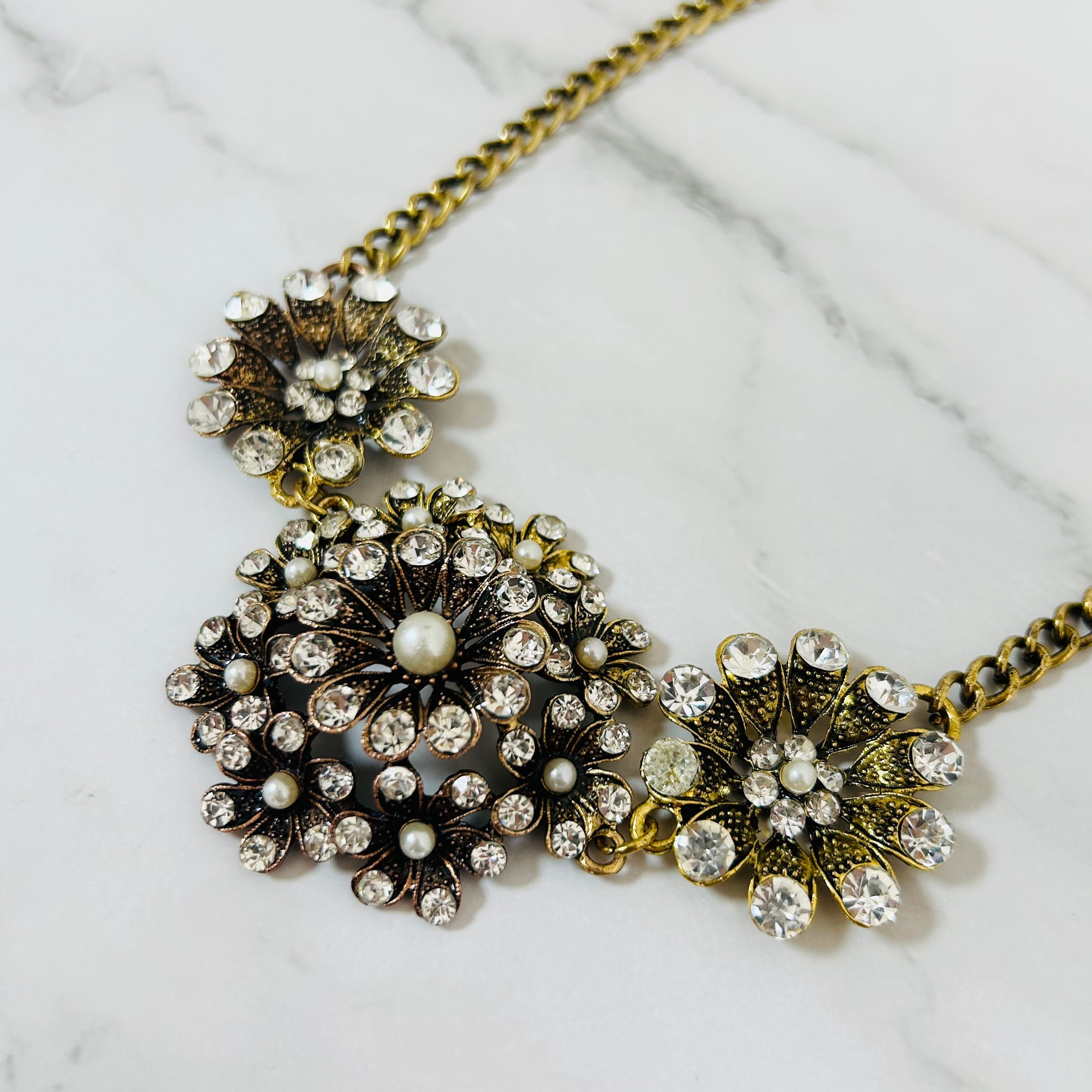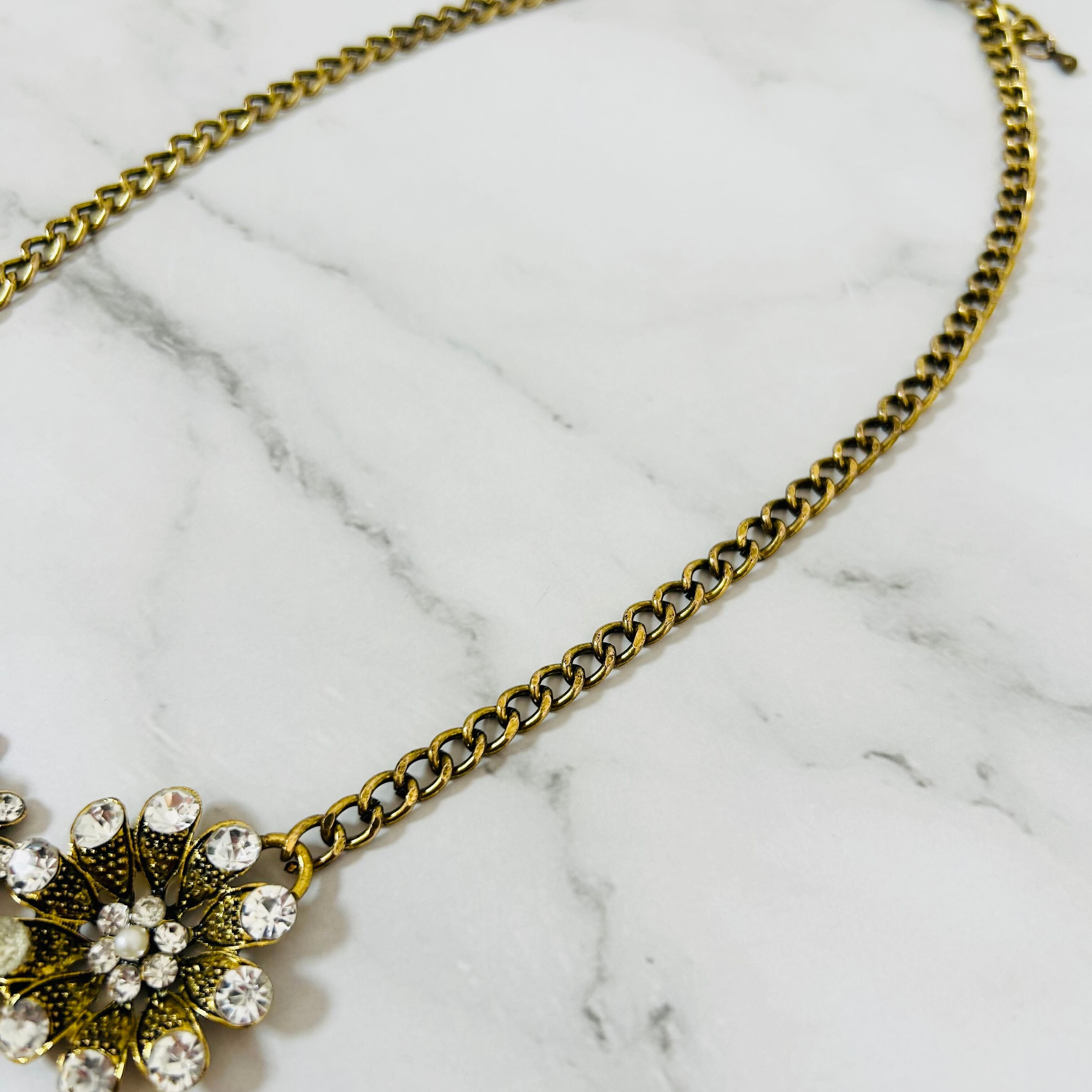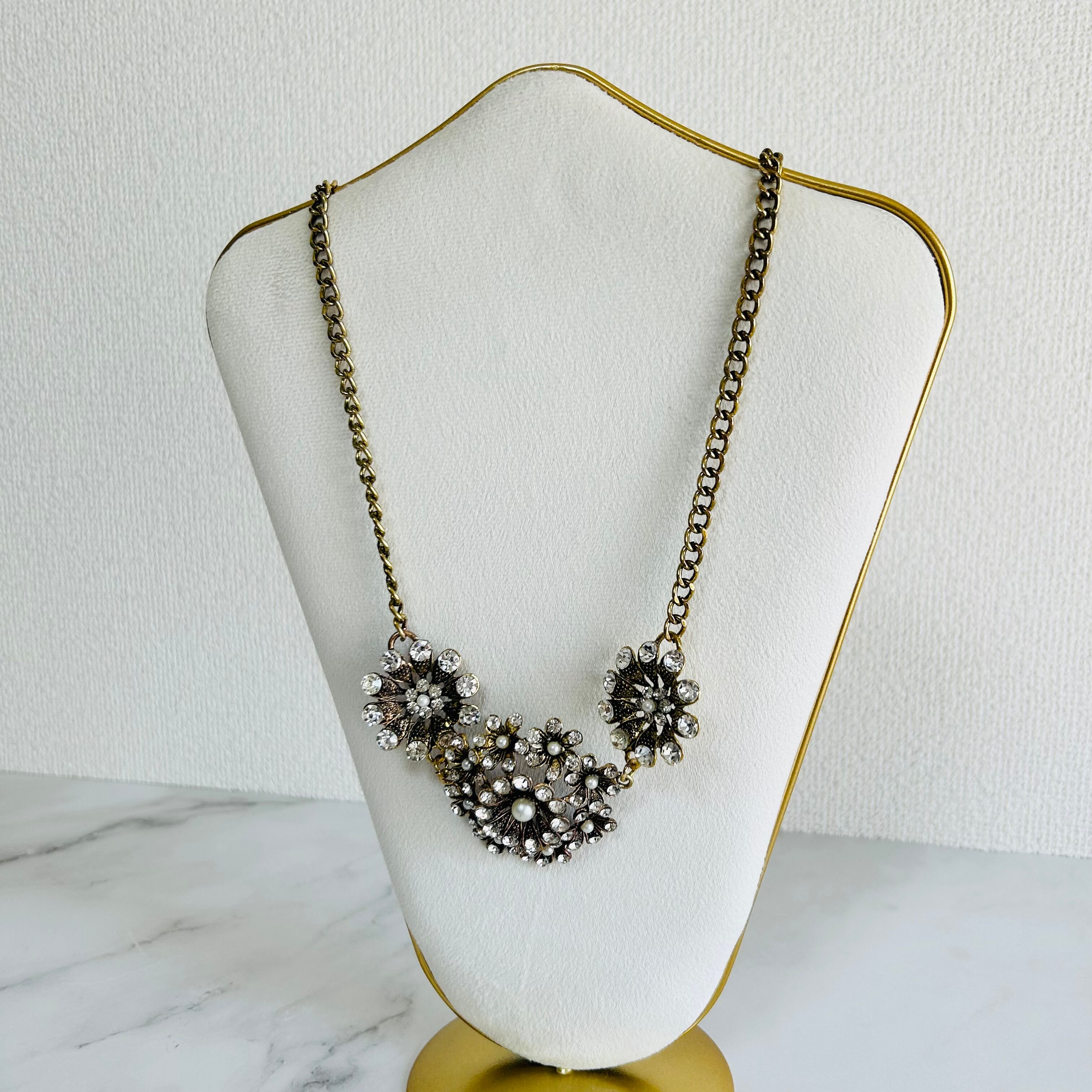 クリスタル、パール ✖️ アンティークゴールドカラーのネックレス