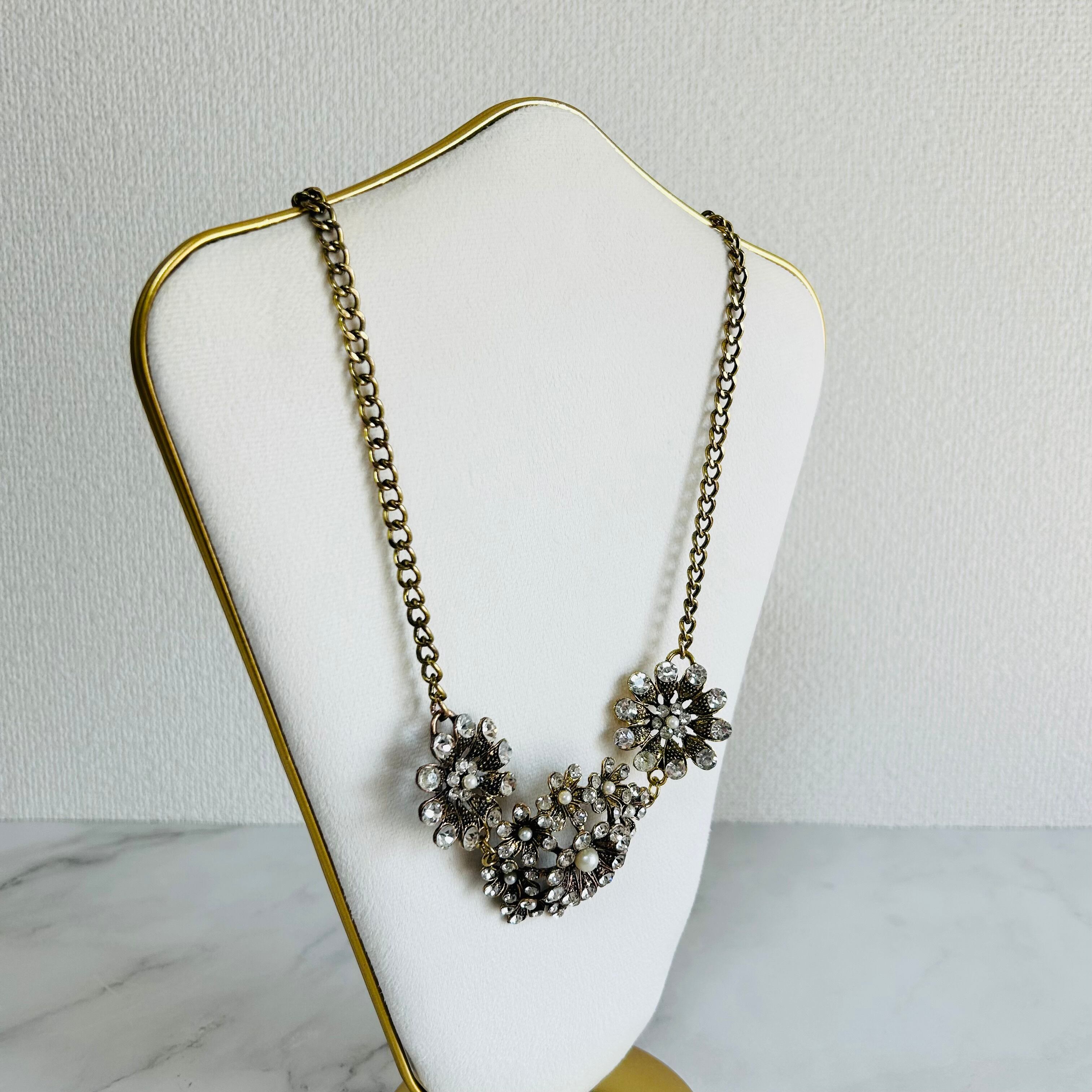 立体的なフラワーモチーフが首元を美しく彩り、上品でエレガントな印象を与えてくれるネックレス☆