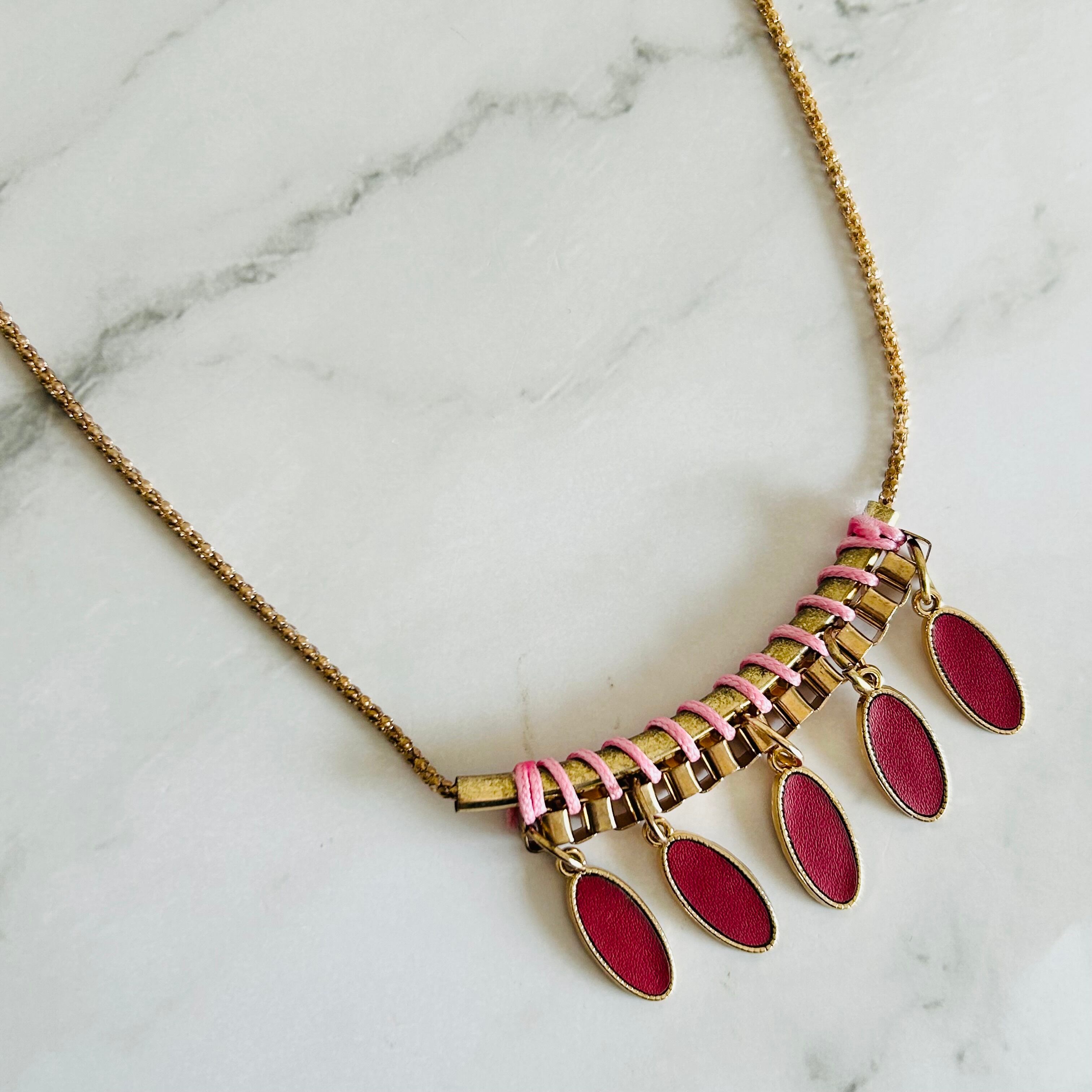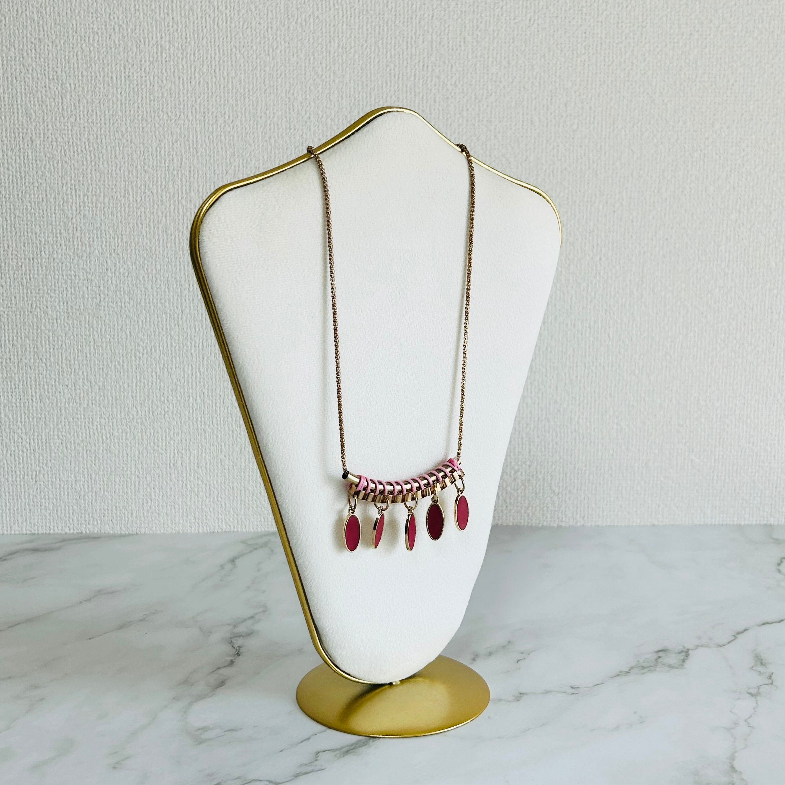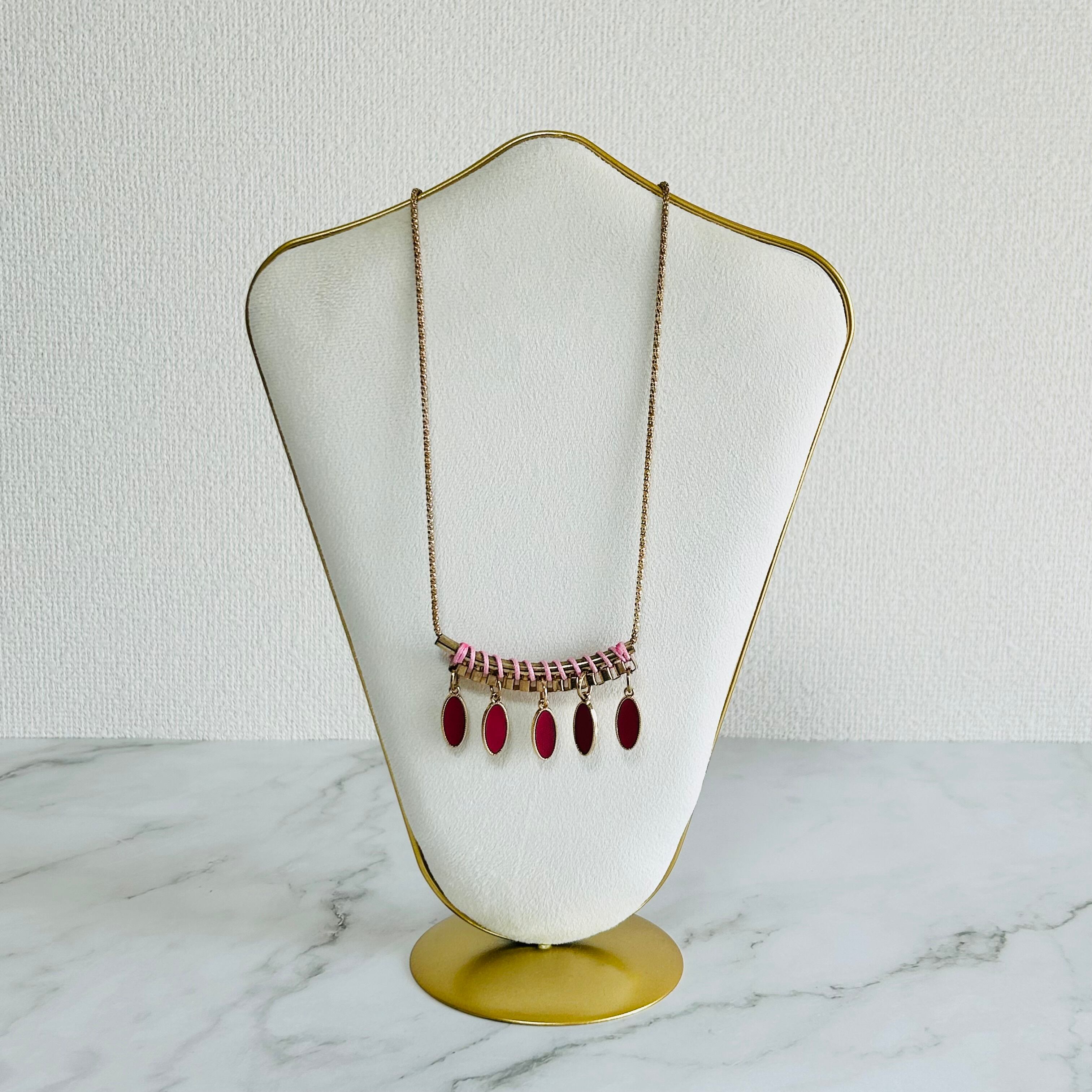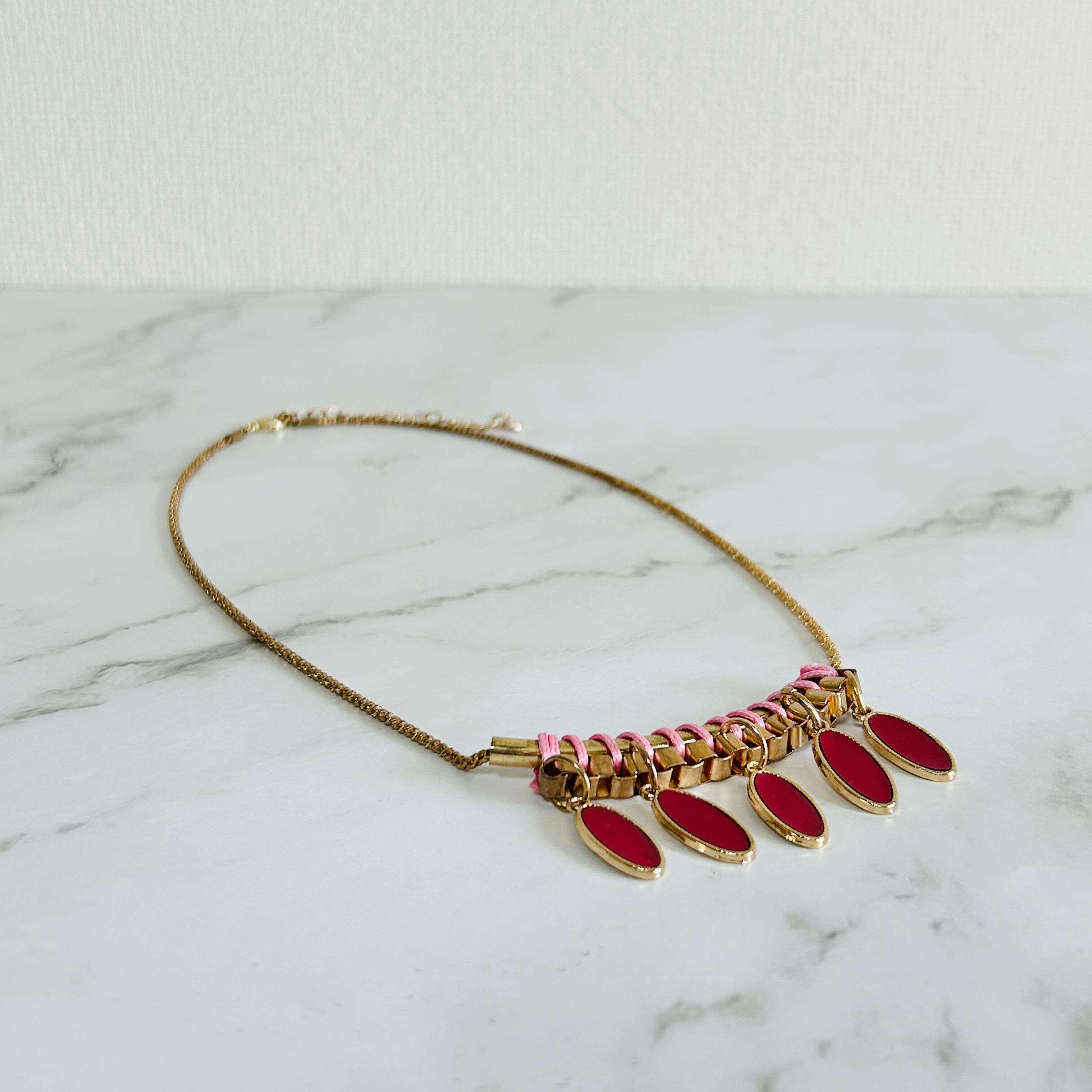 レッド、ピンク✖️アンティークゴールドカラーのロングネックレスです。