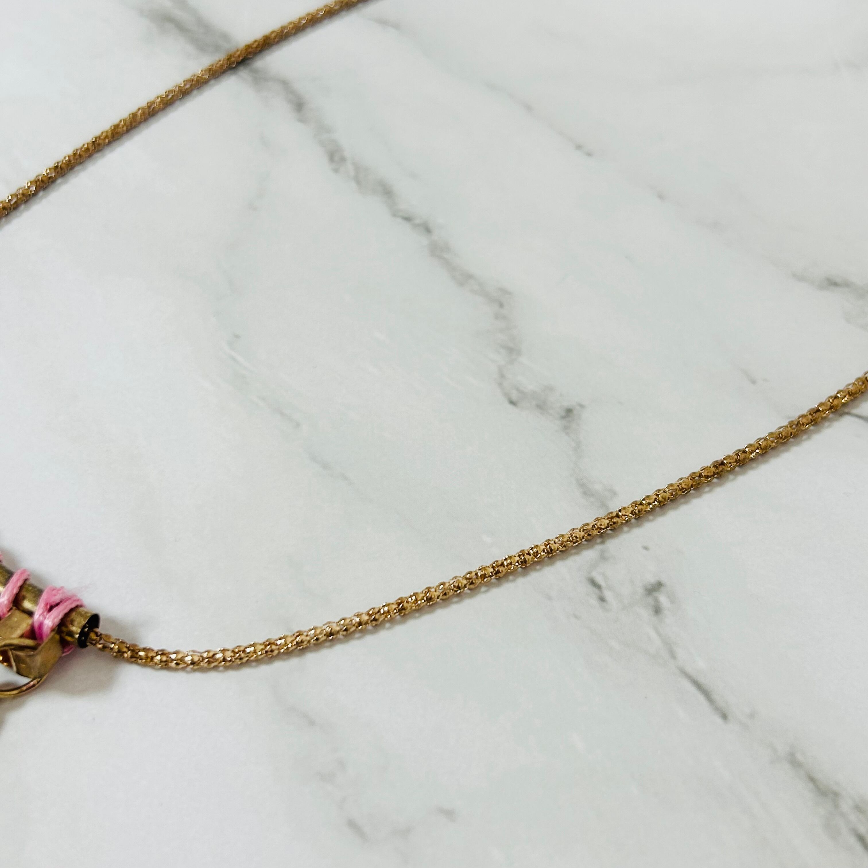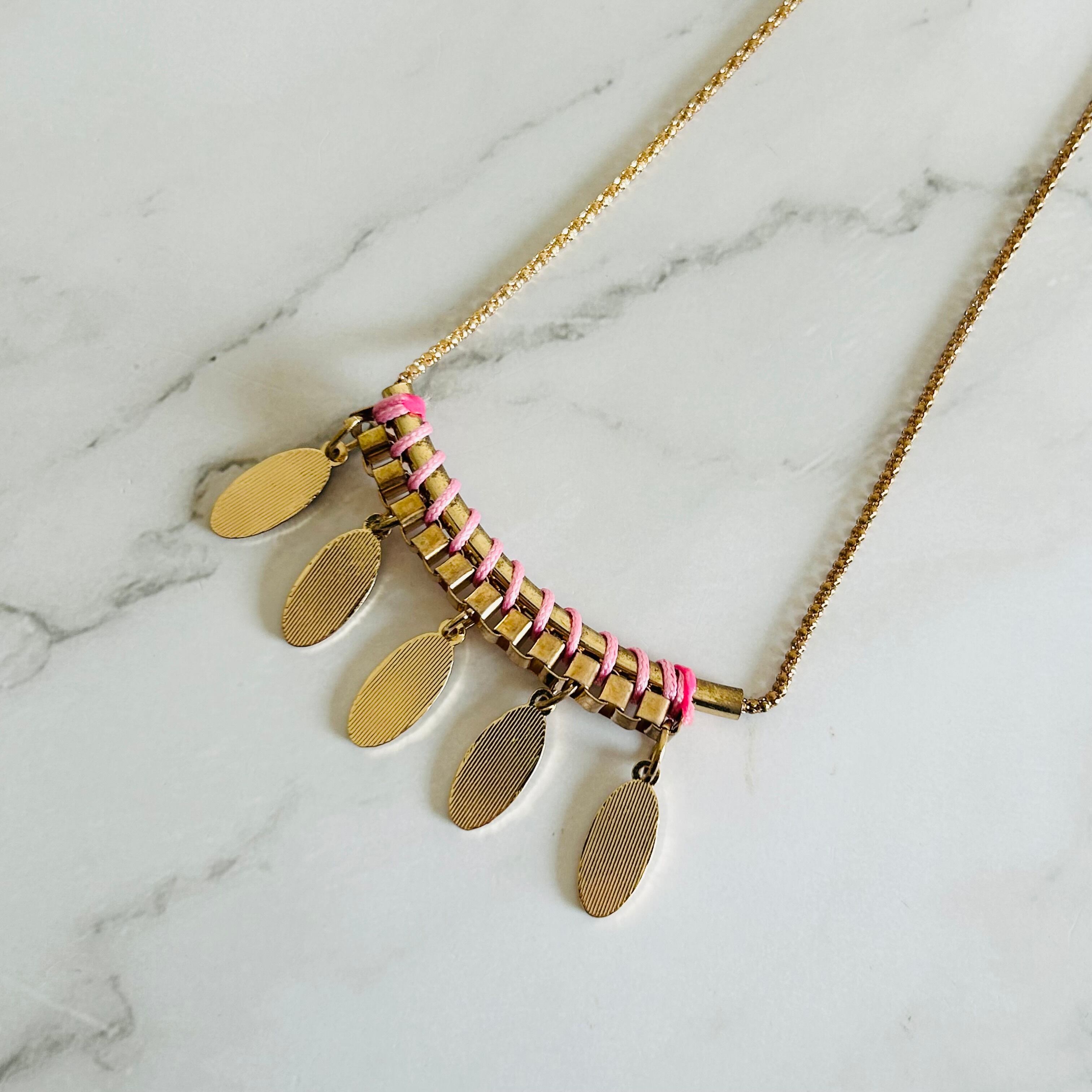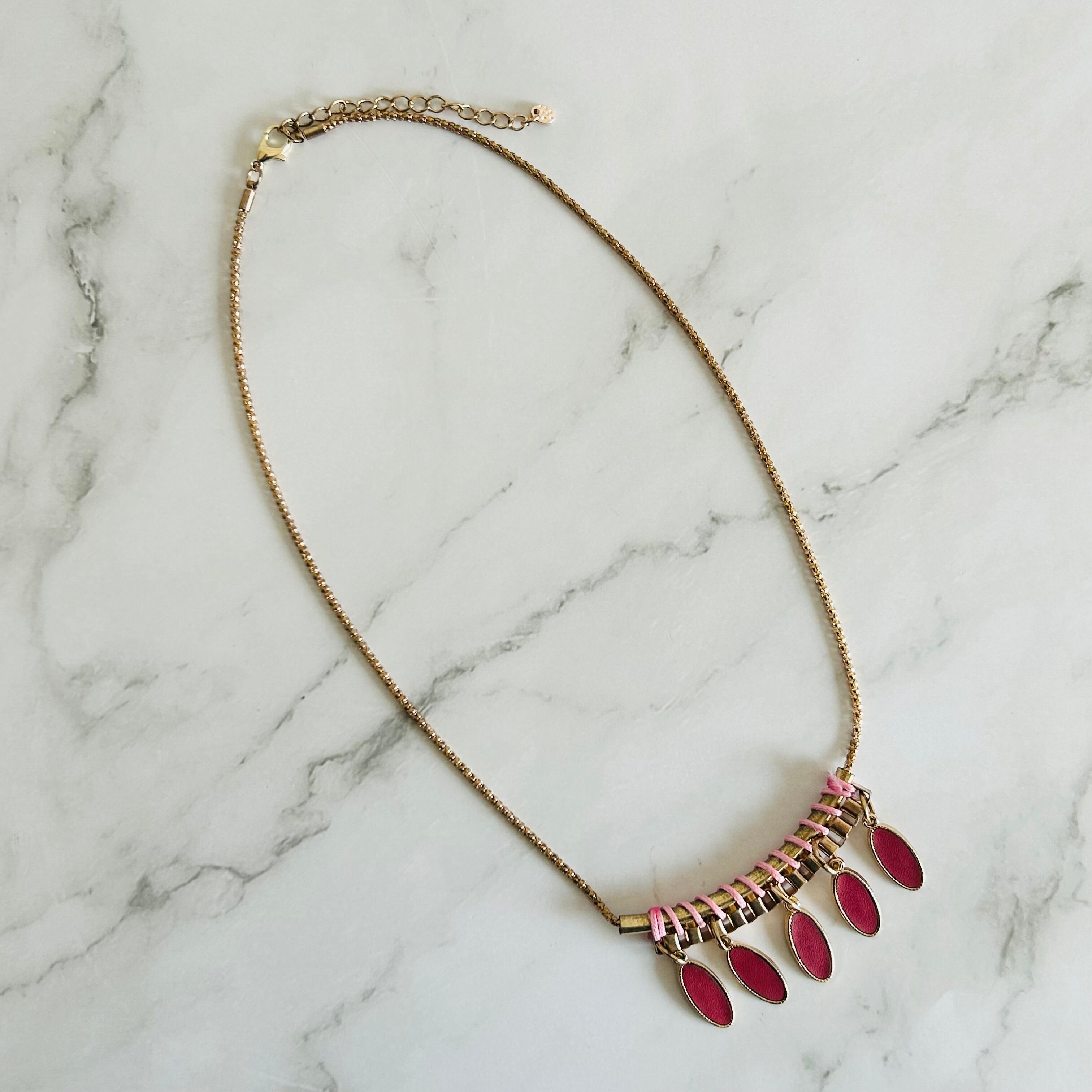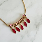レッド、ピンク✖️アンティークゴールドカラーのロングネックレスです。