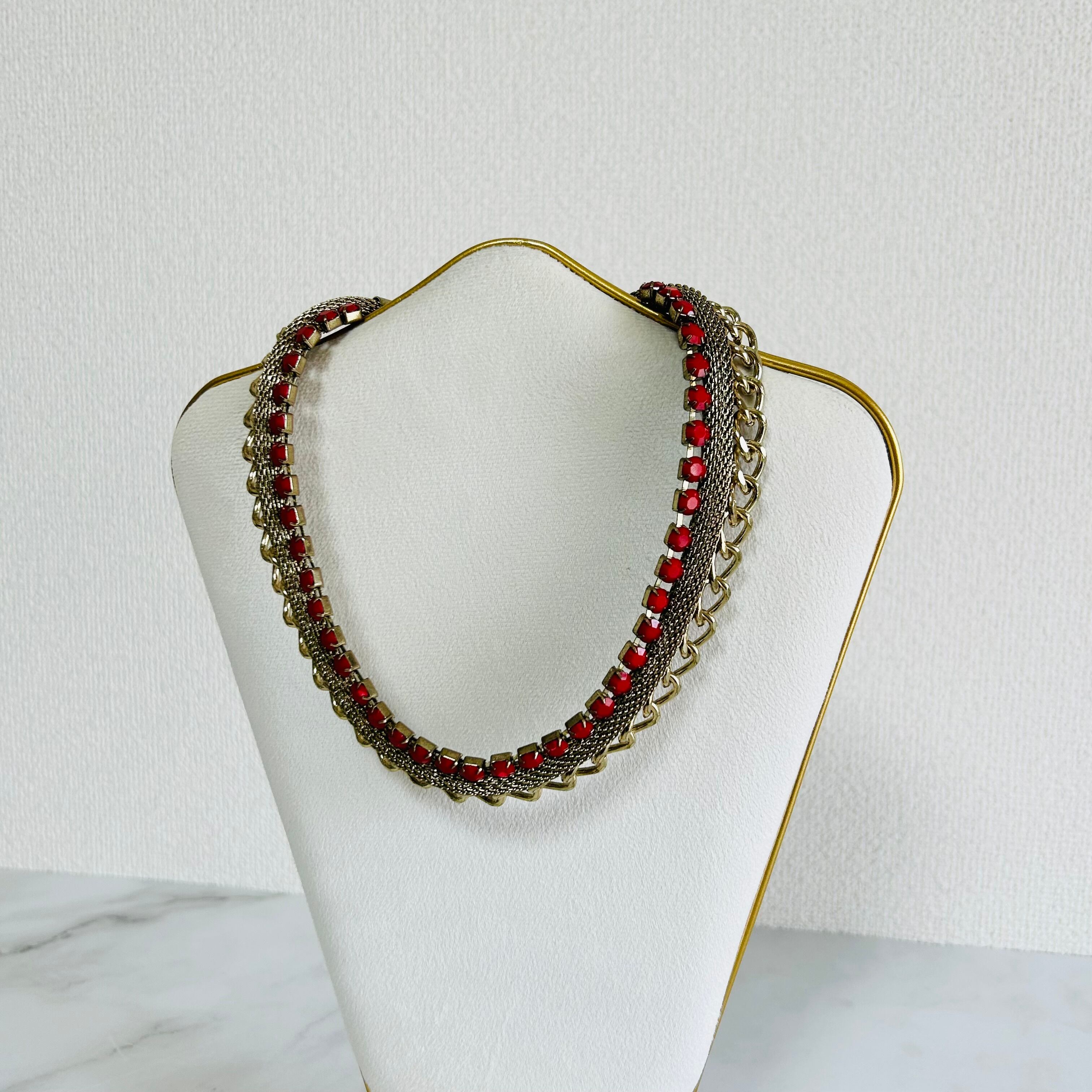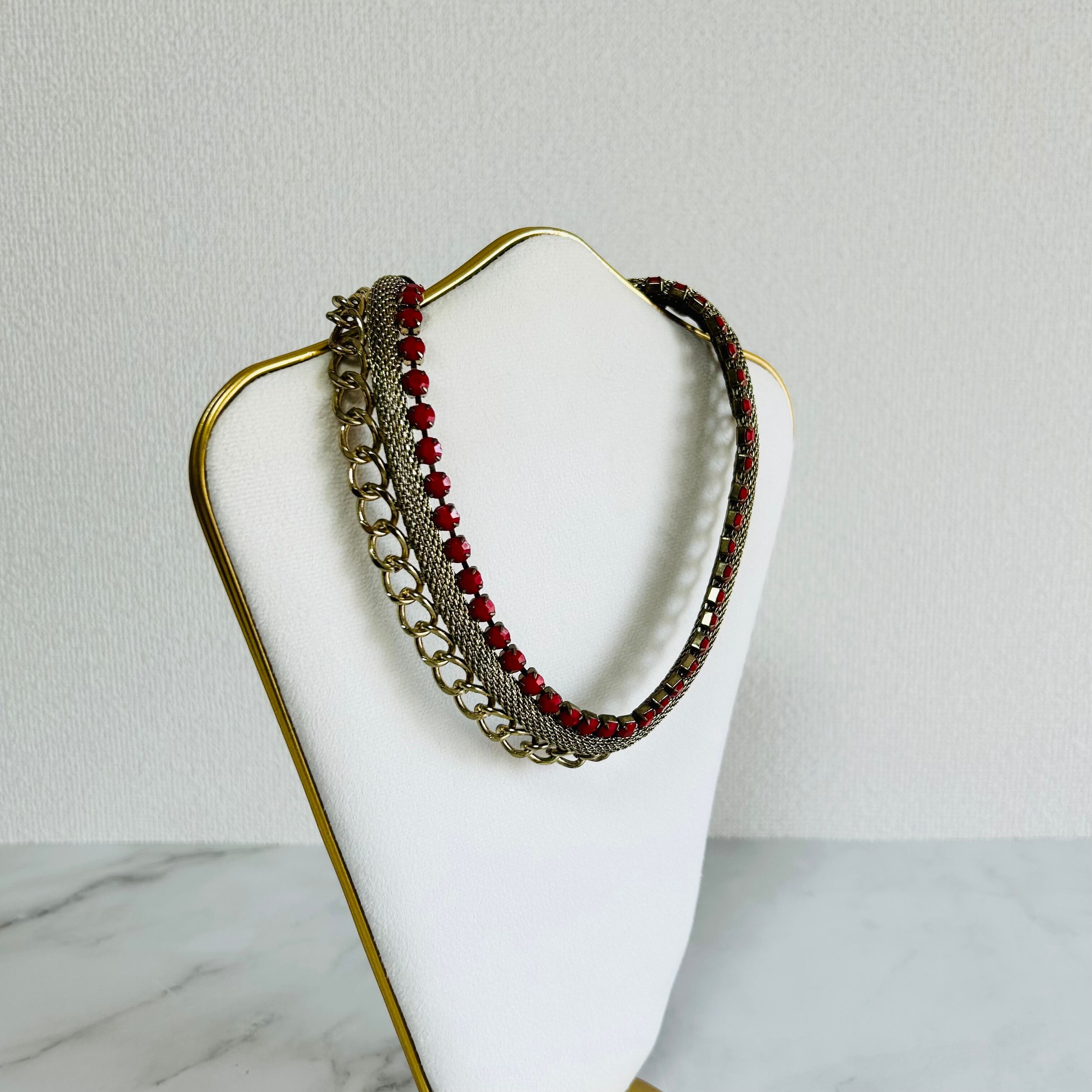 レッドカラーとアンティークゴールドのコントラストが美しく、クラシックな雰囲気を纏う優雅なネックレス。