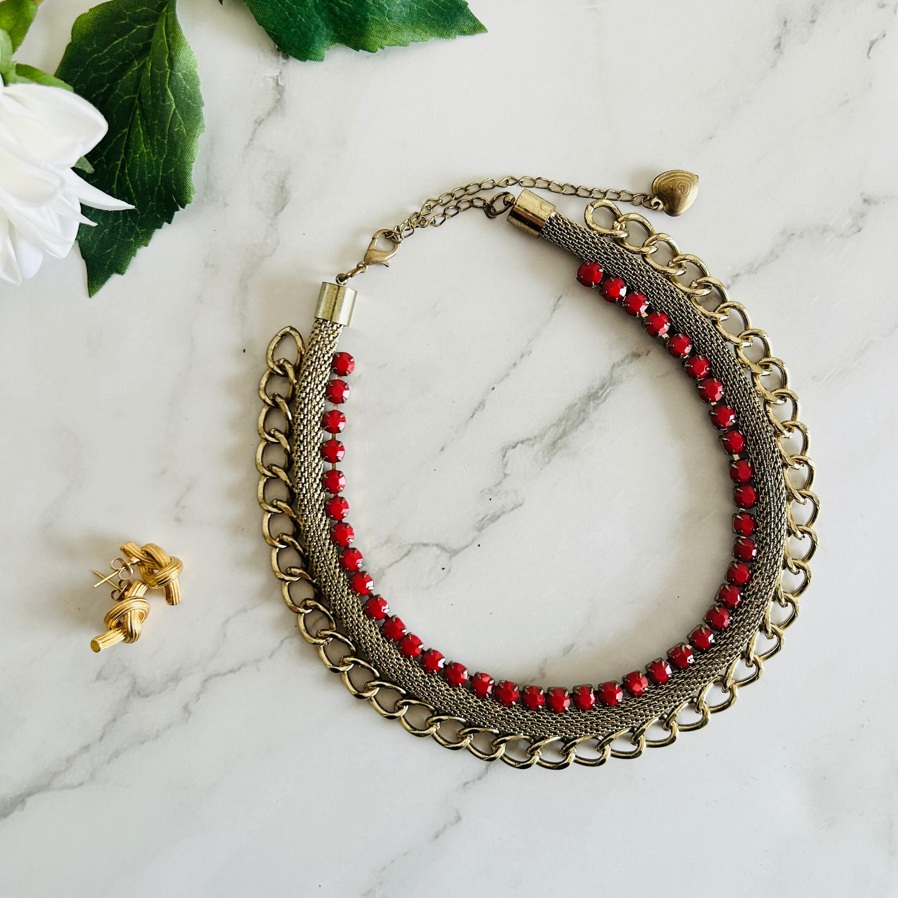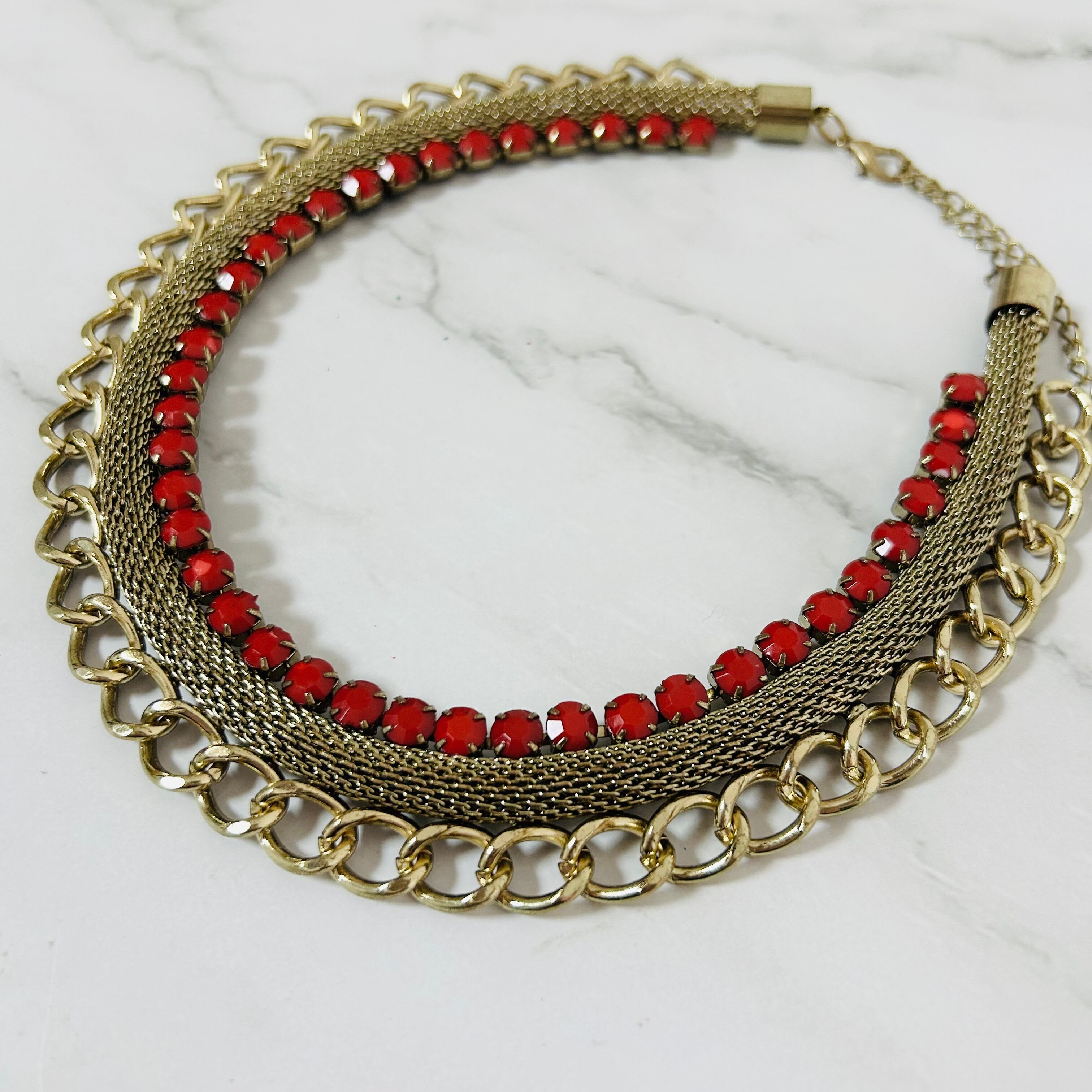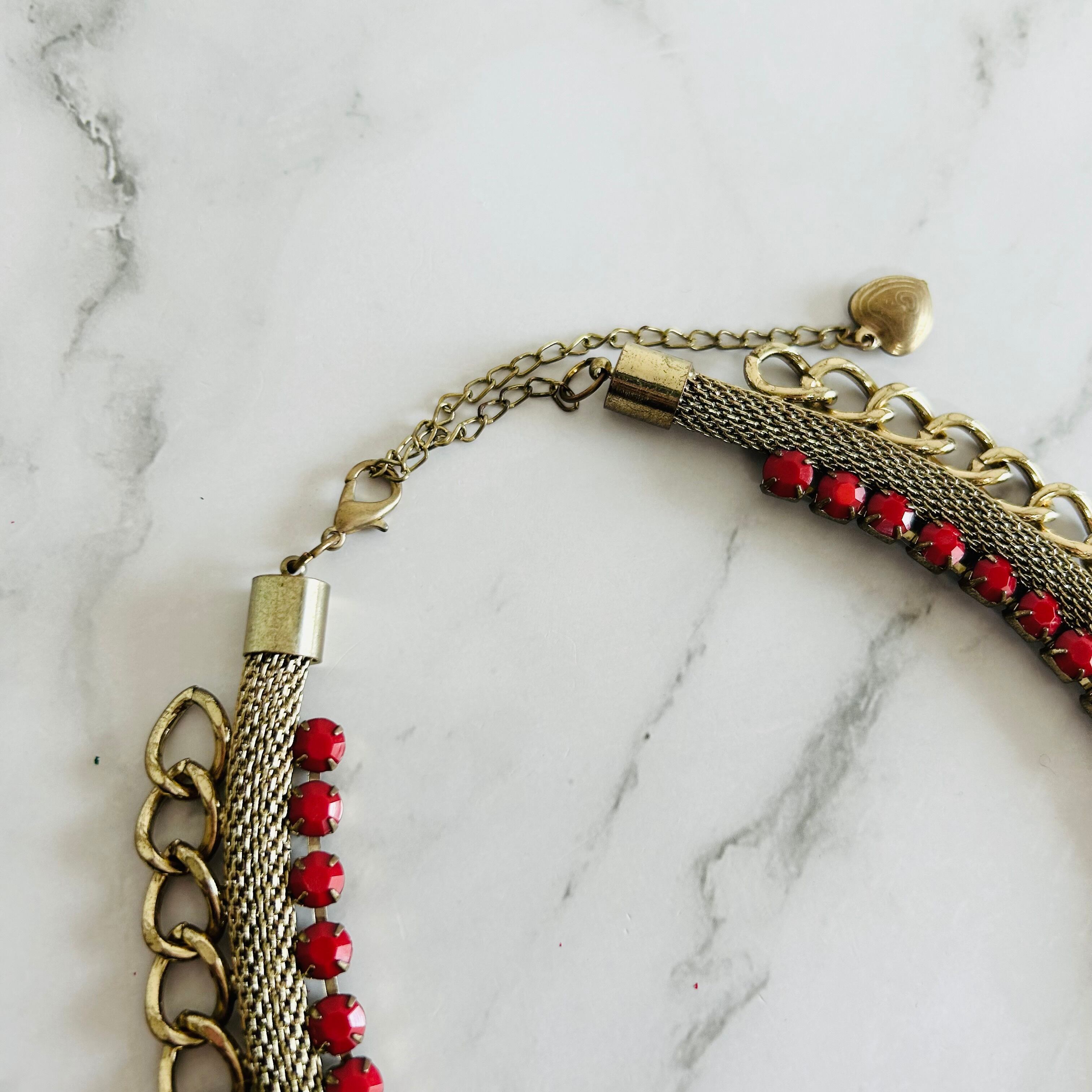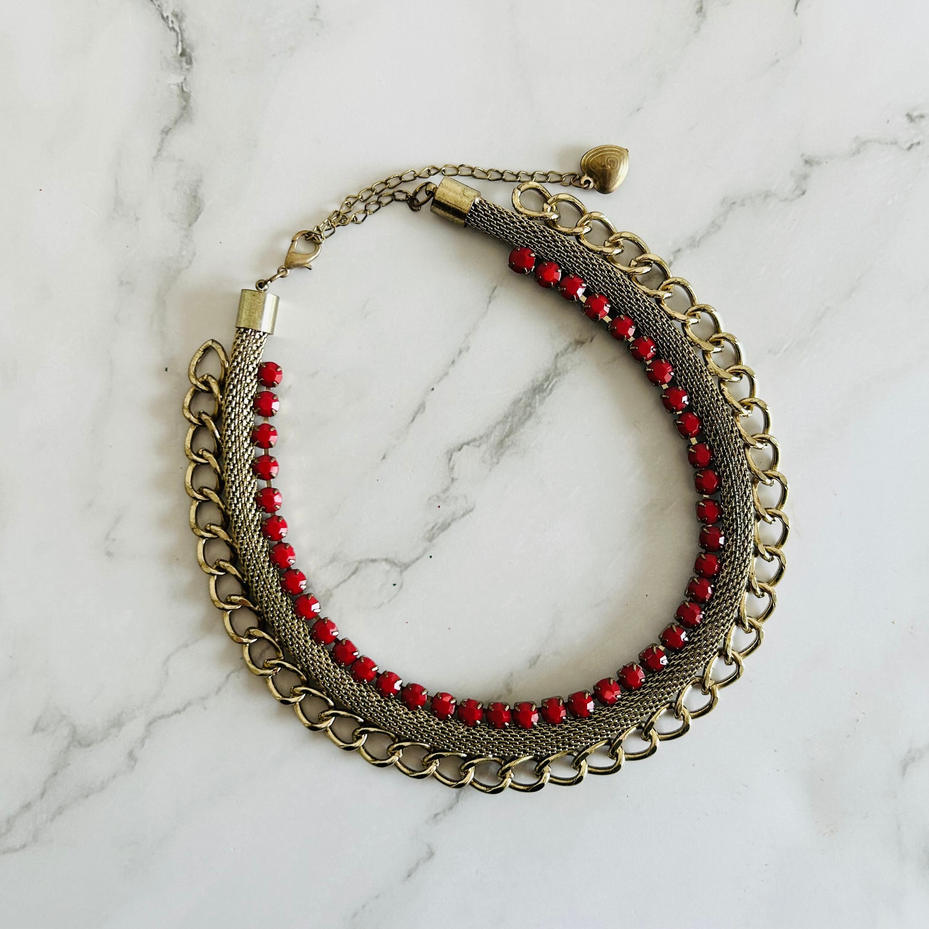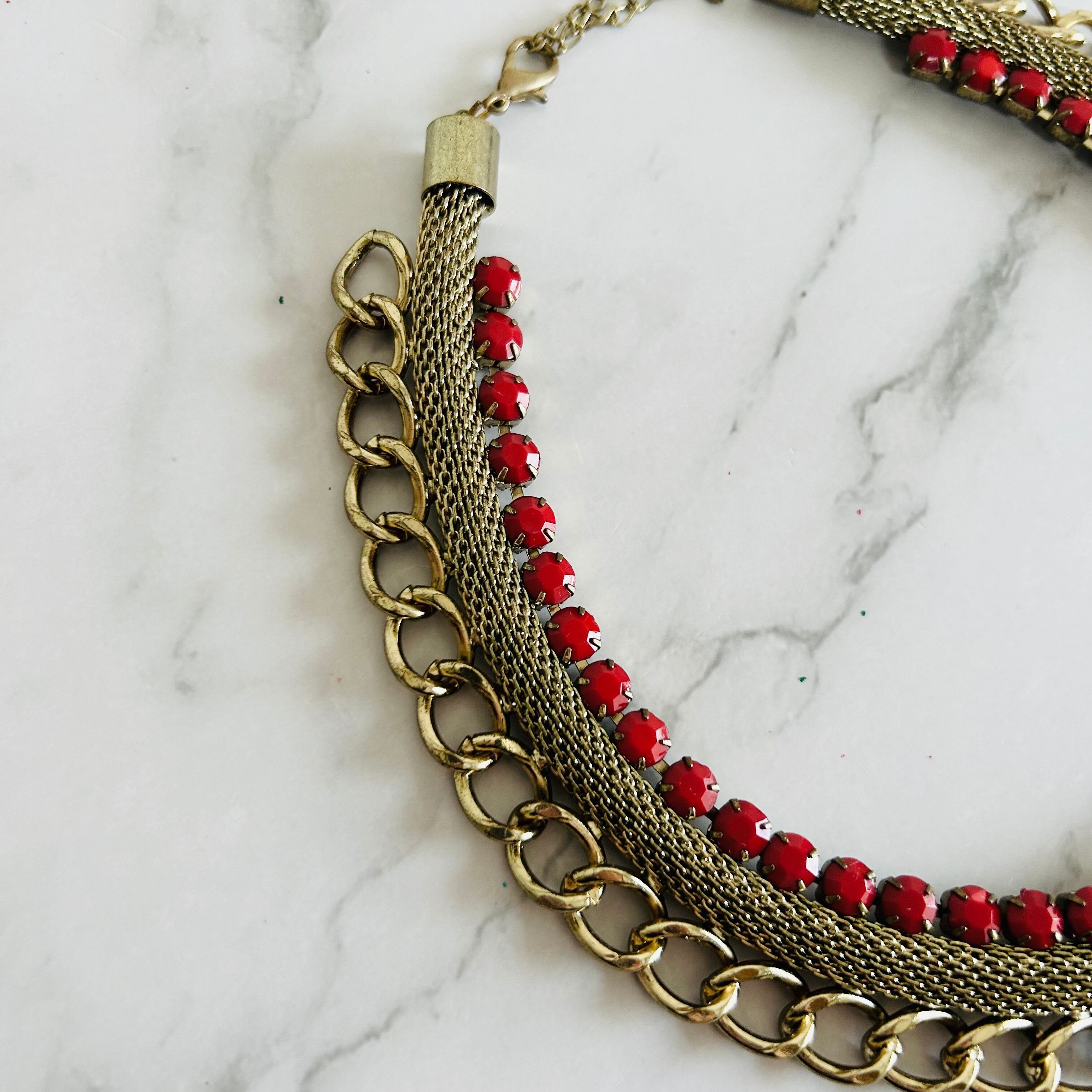 レッド✖️アンティークゴールドカラーのネックレスです。