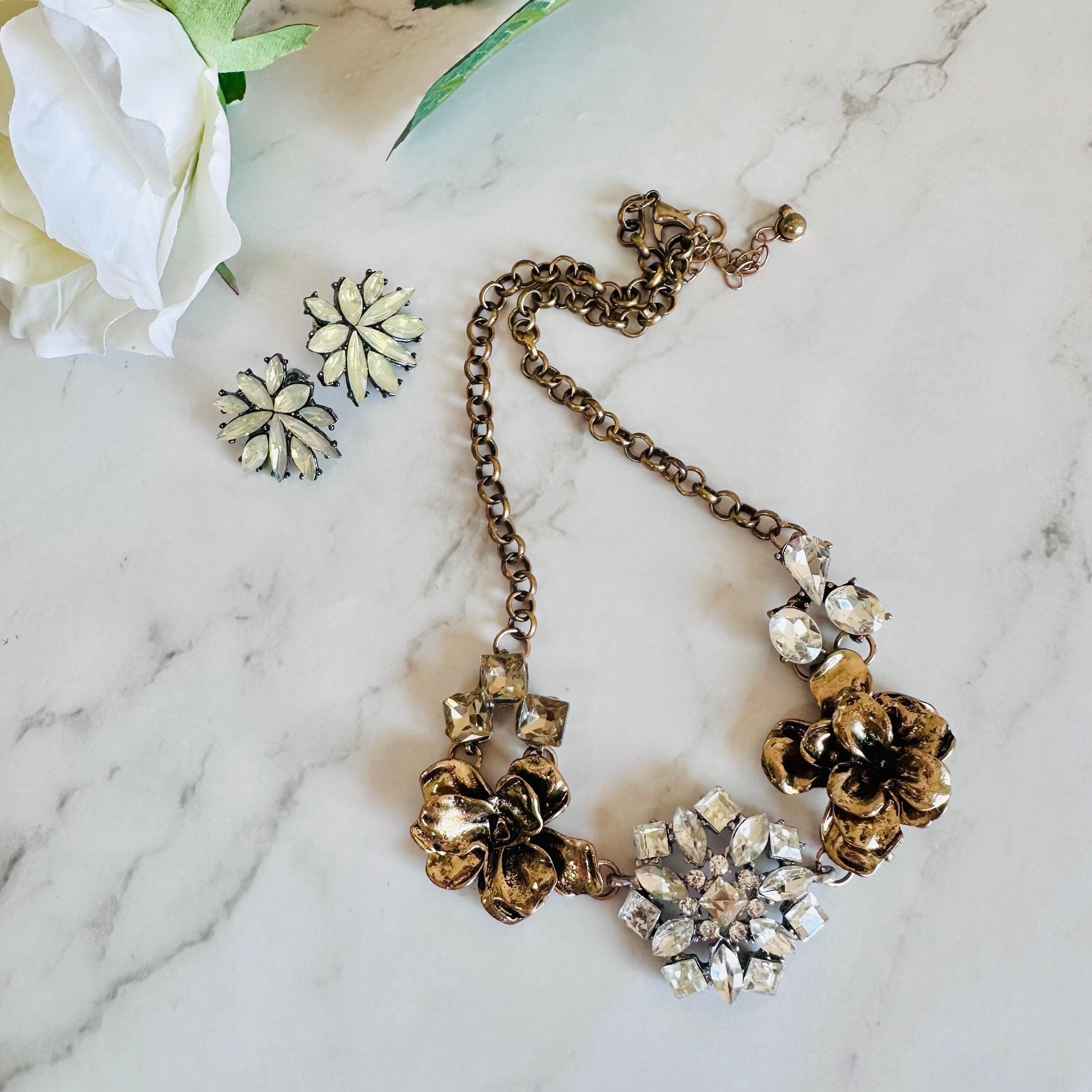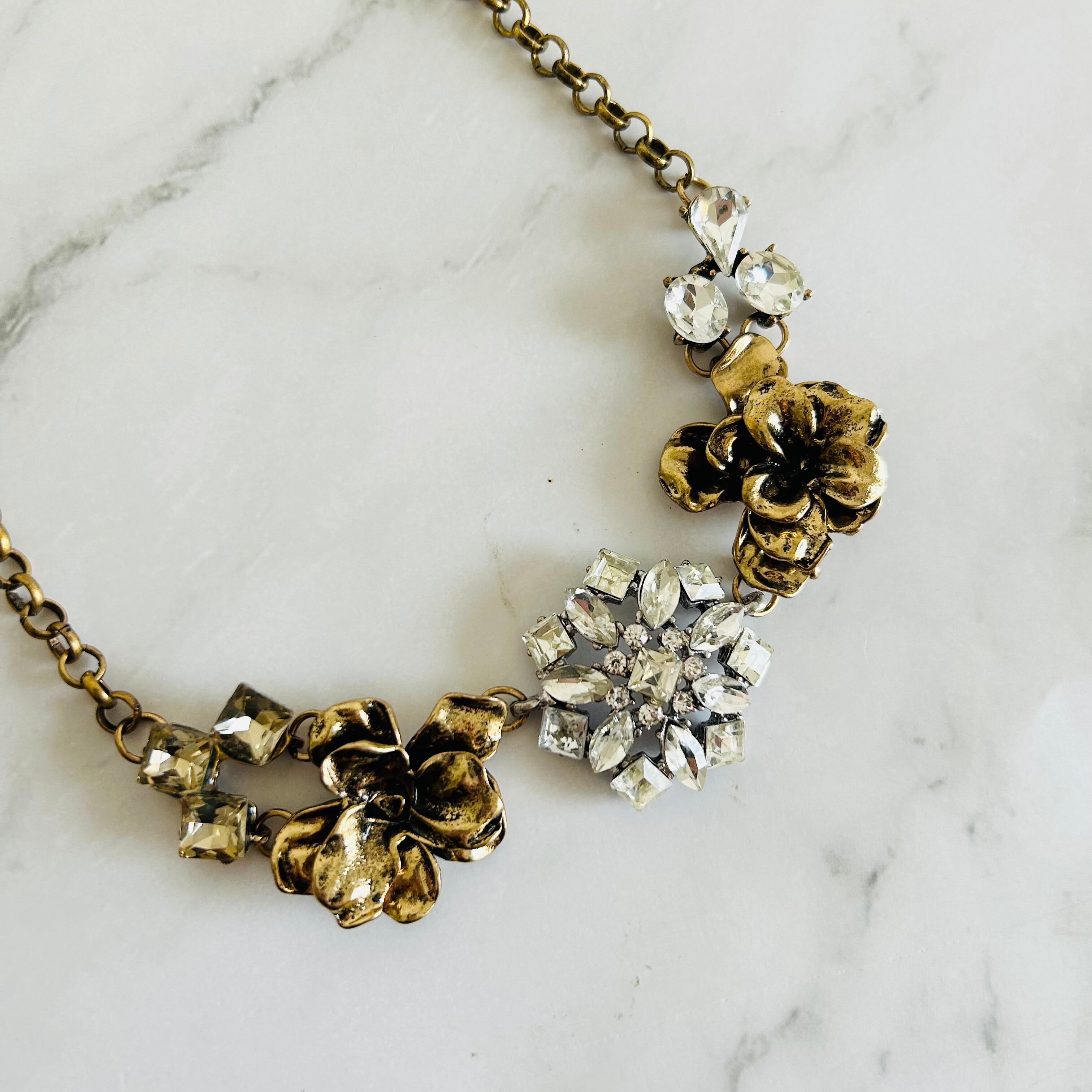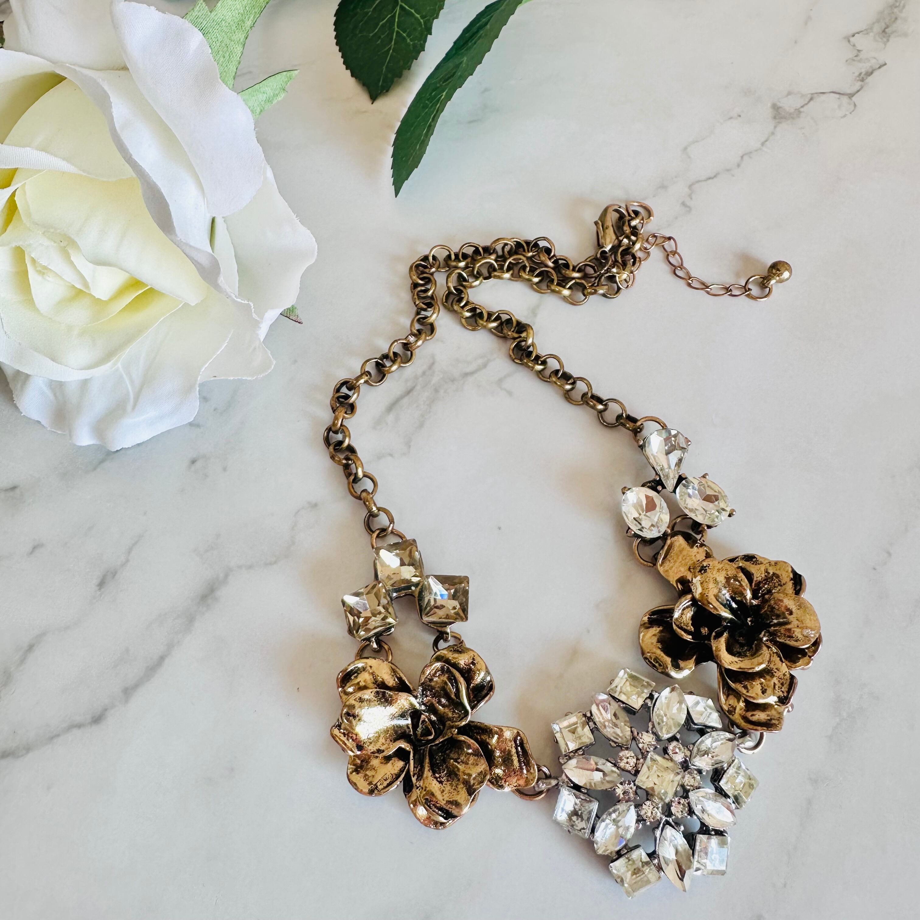 クリスタル✖️アンティークゴールドカラーのネックレスです。