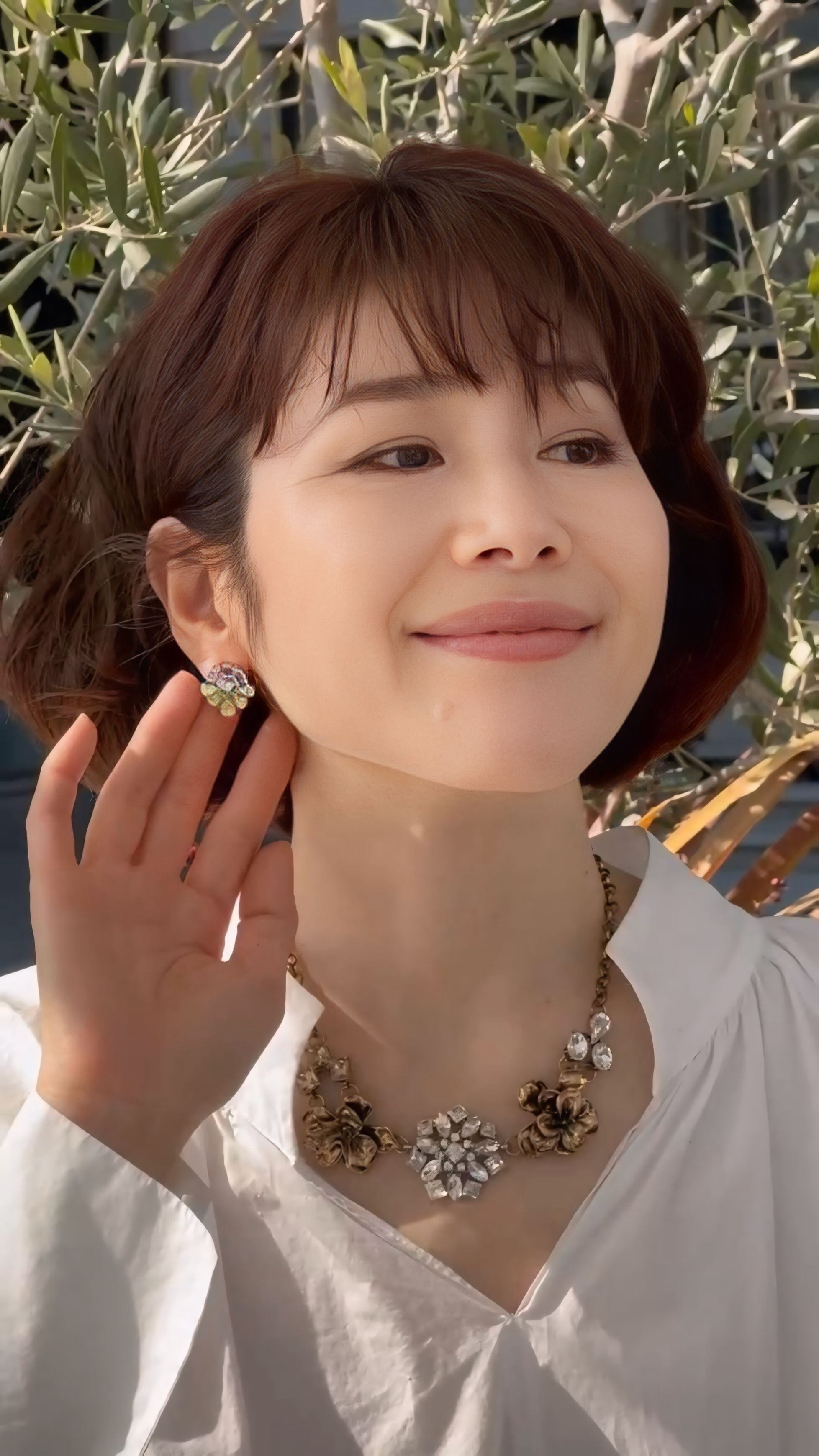 アンティークゴールド×クリスタルの高級感のある色使いは合わせるお洋服の色を選ばず、様々なコーディネートでマッチし、スタイリングに女性らしさと「華」をプラスします♡