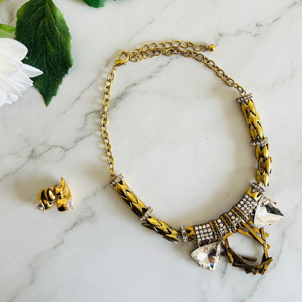 クリスタル✖️アンティークゴールドカラーのネックレスです。