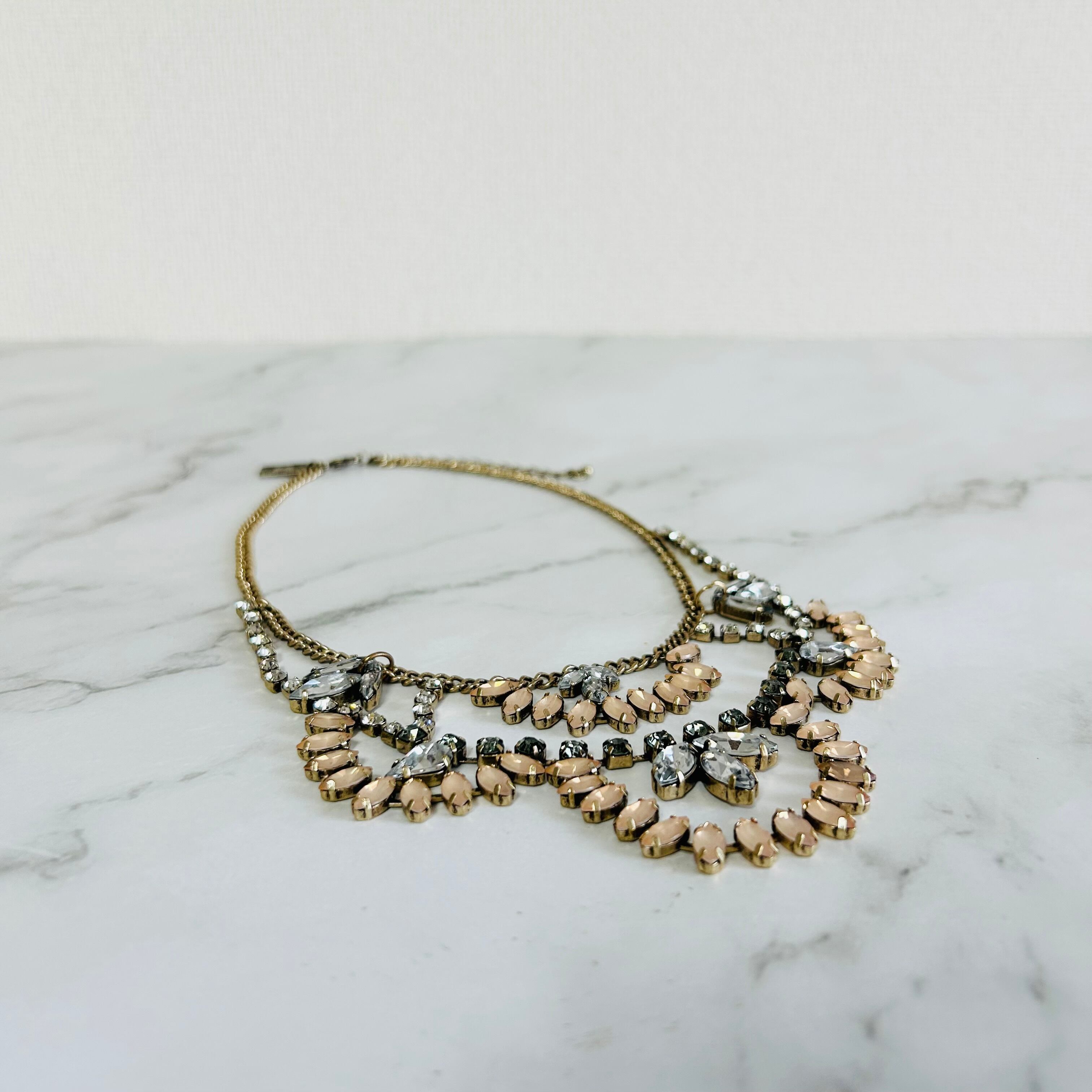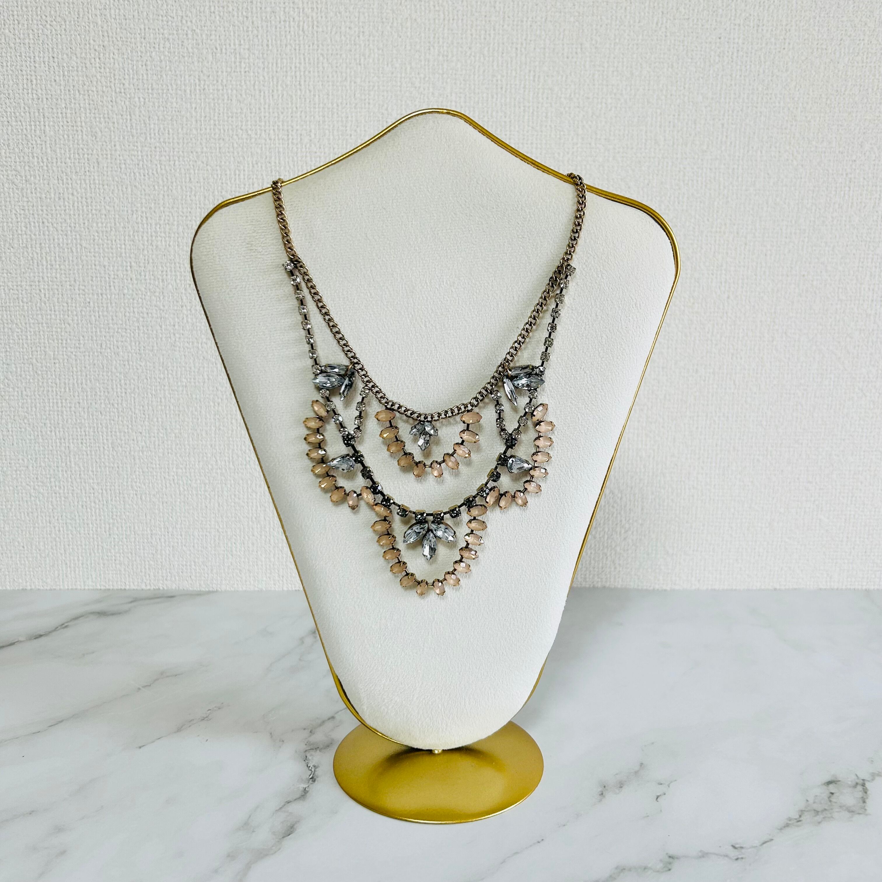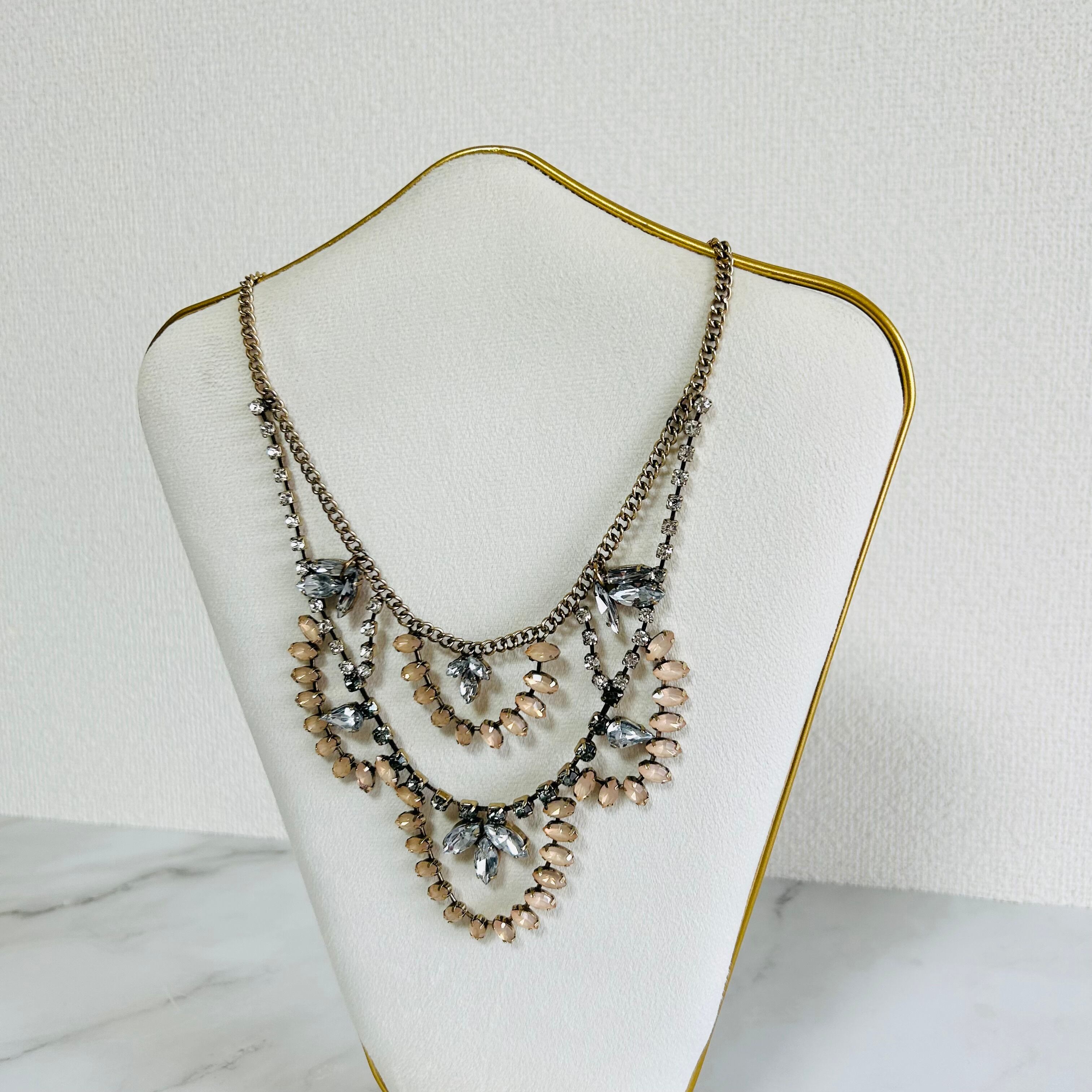 ピンク、グレー、クリスタル✖️アンティークゴールカラーのネックレスです。