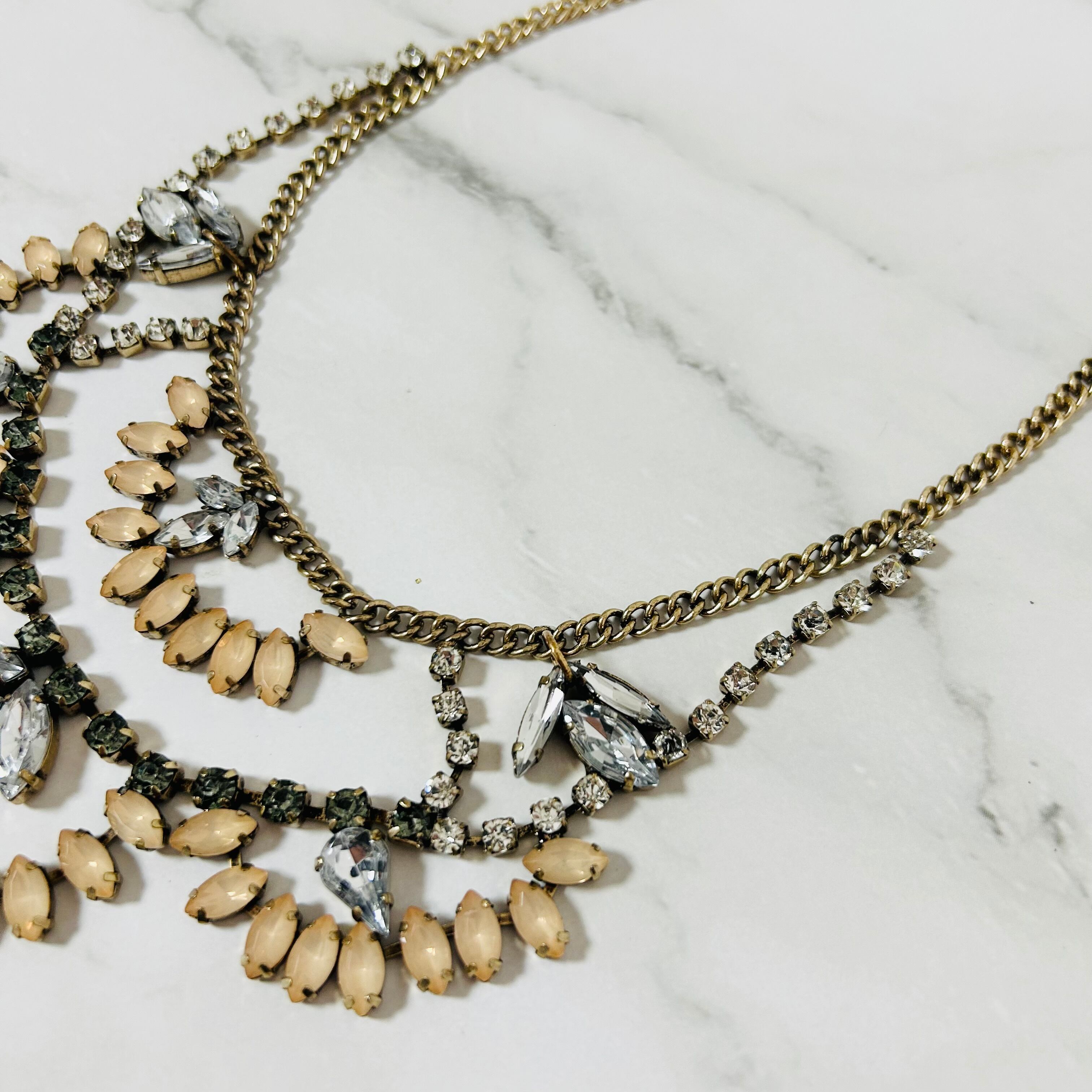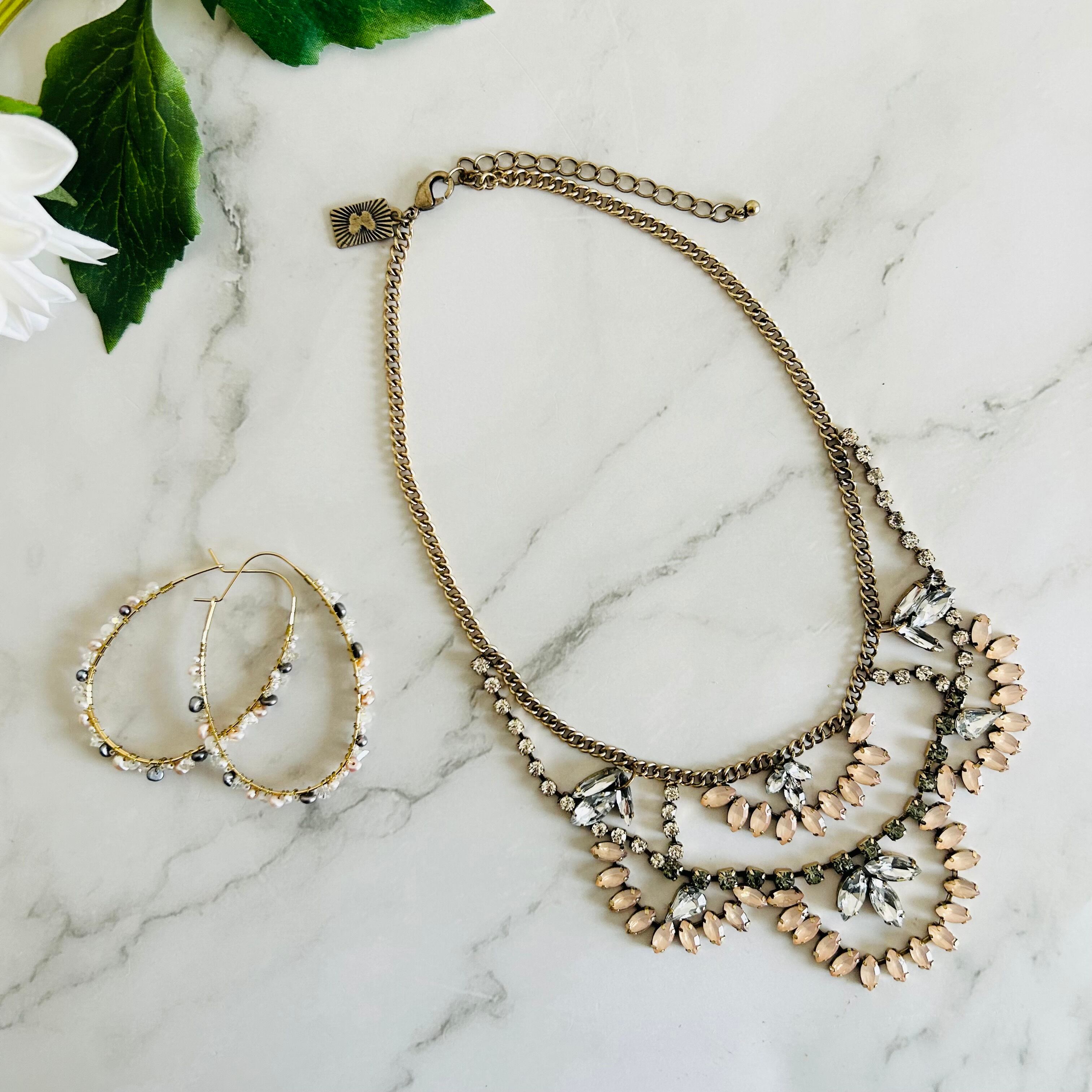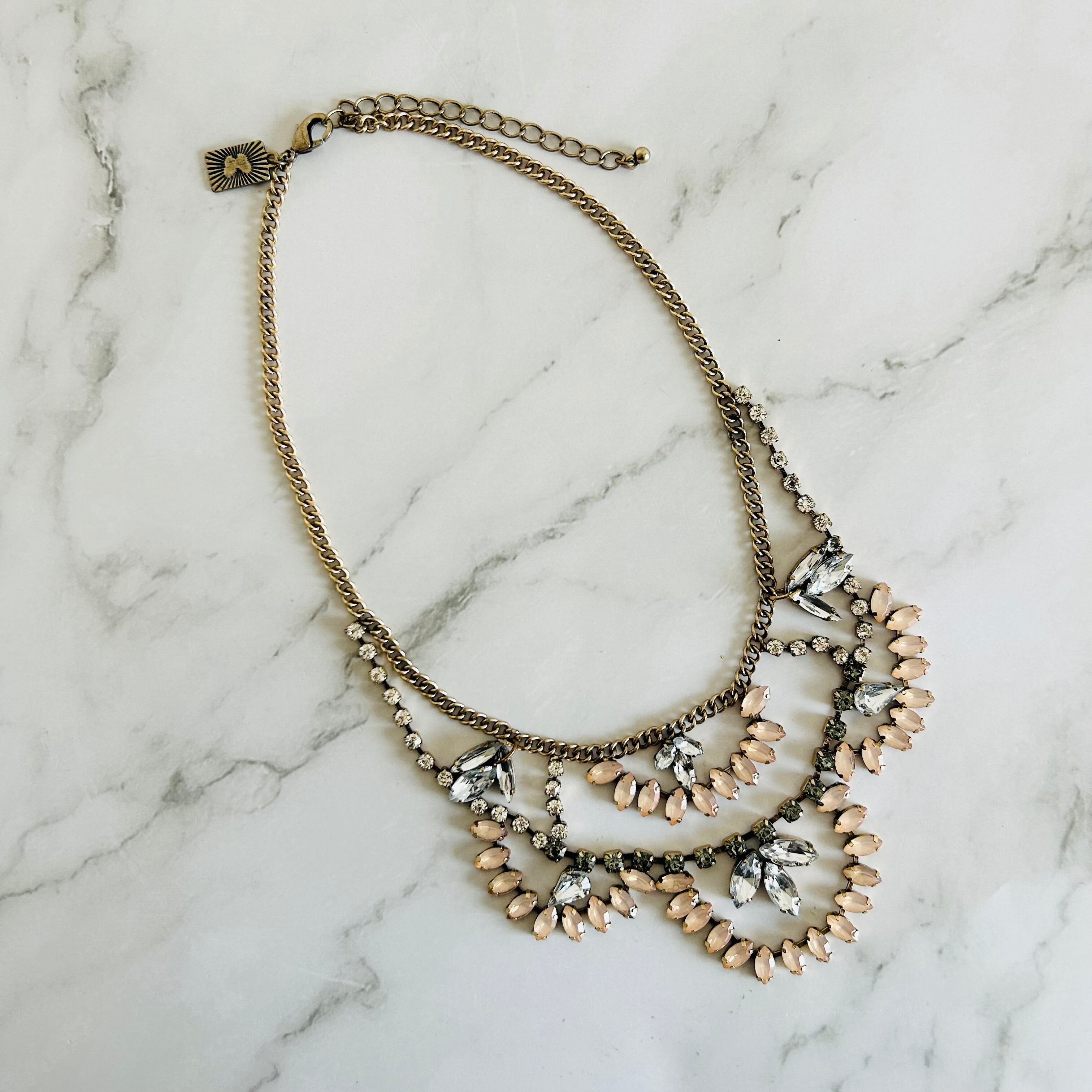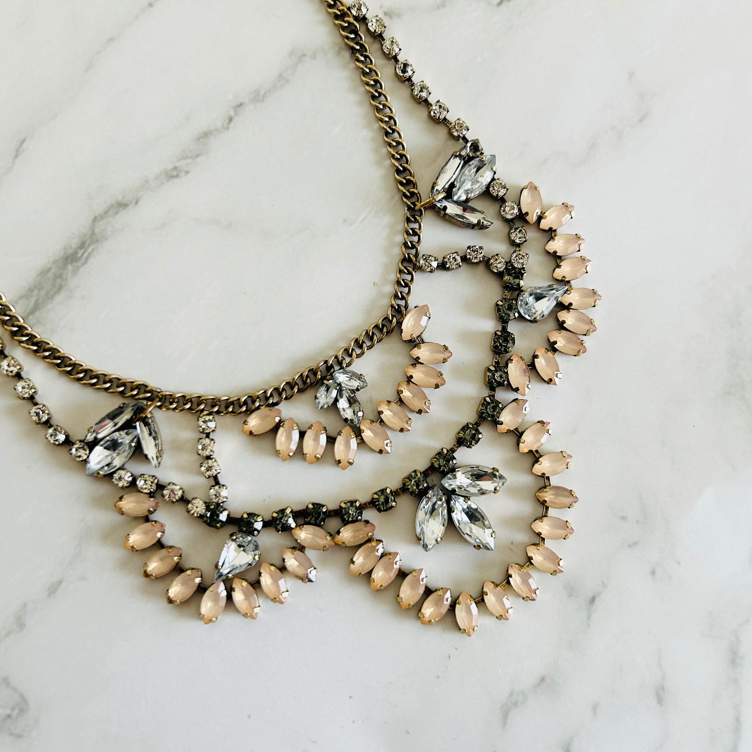 ピンク、グレー、クリスタル✖️アンティークゴールカラーのネックレスです。