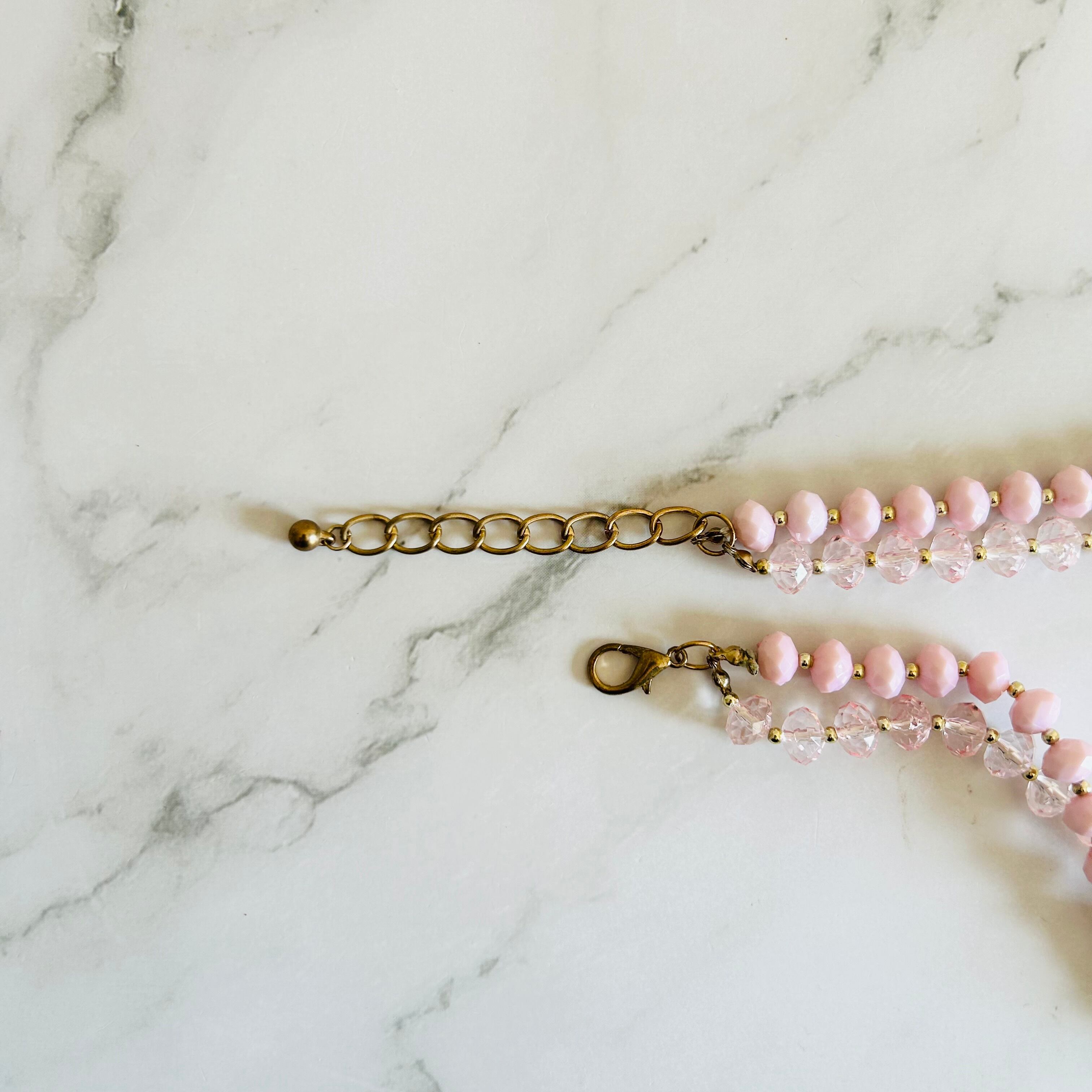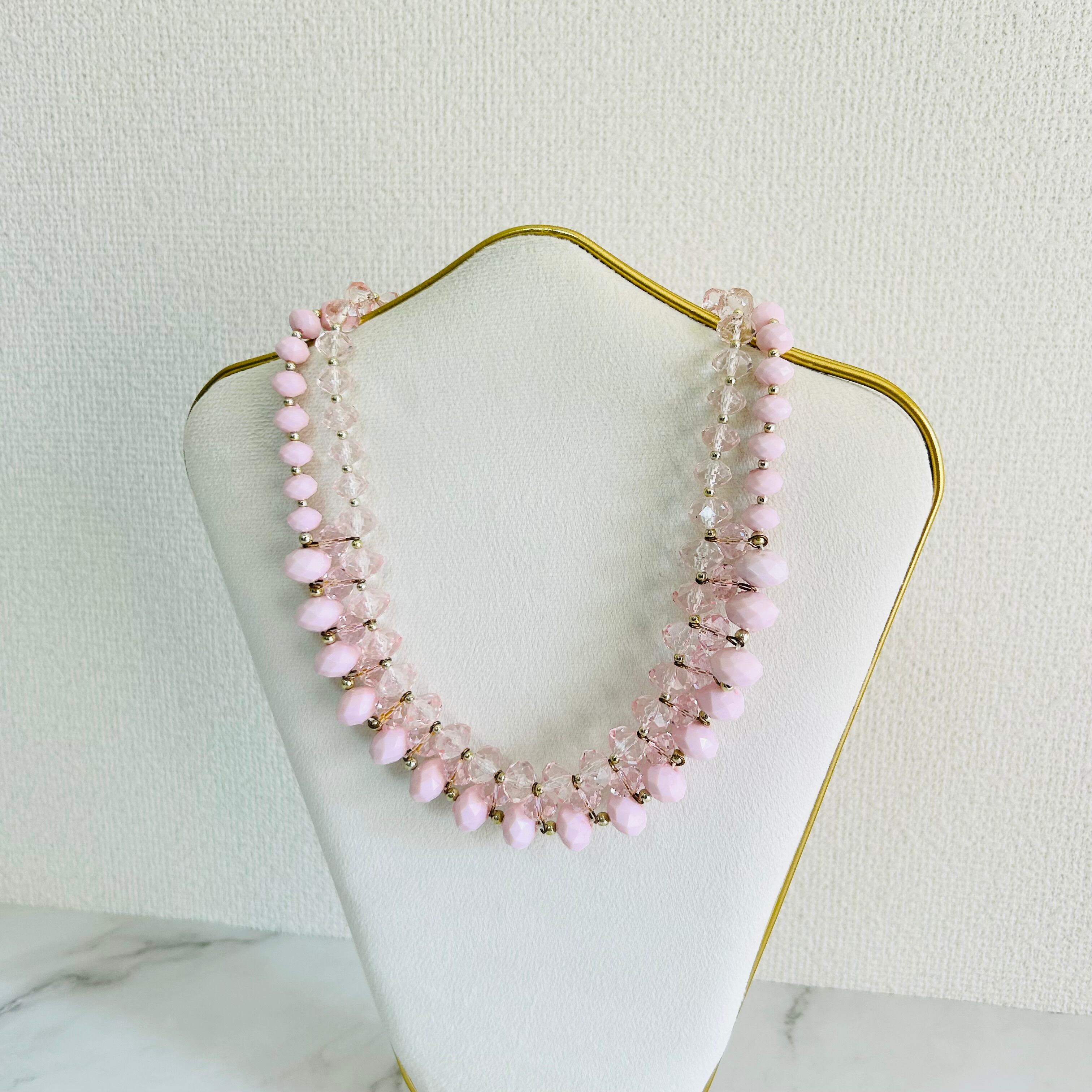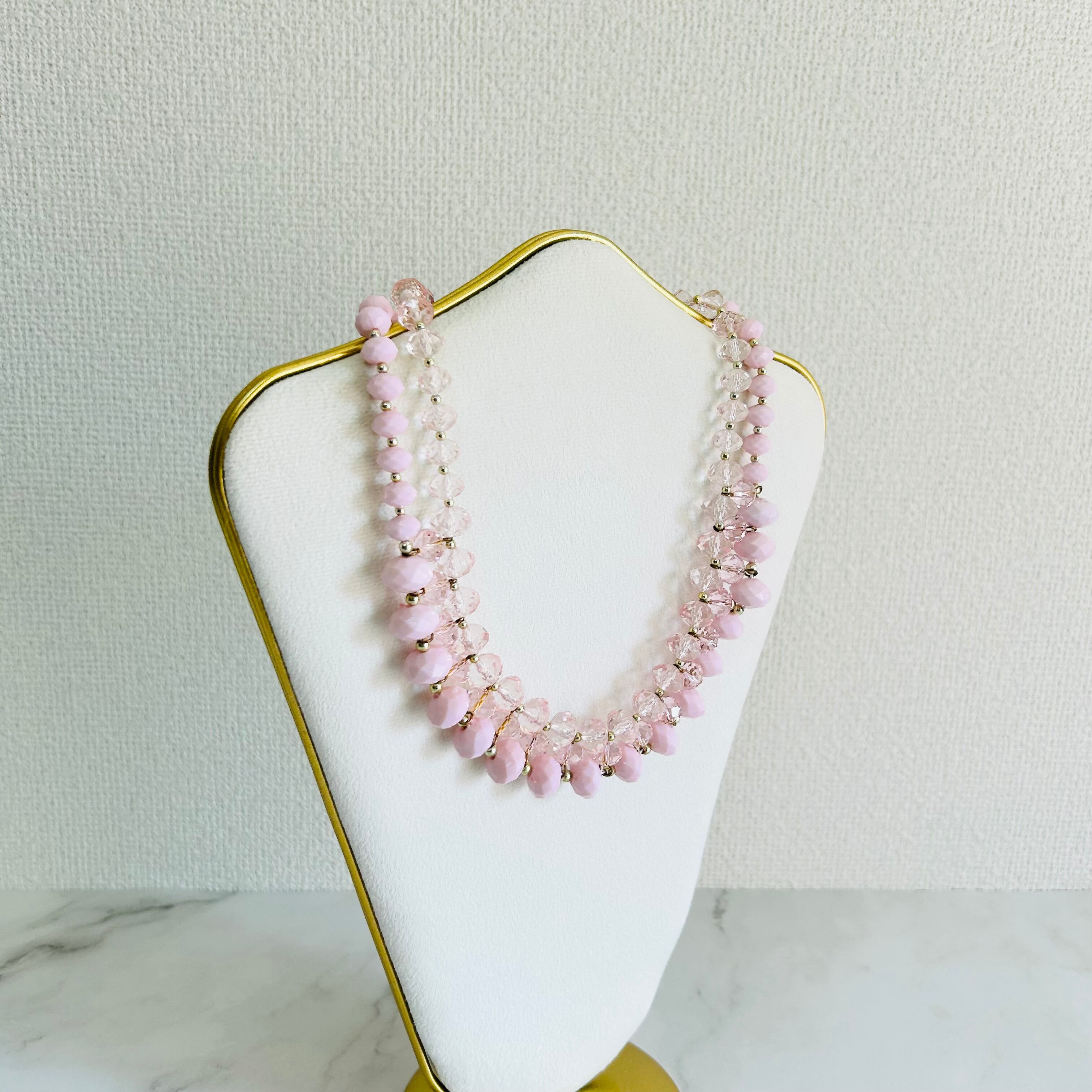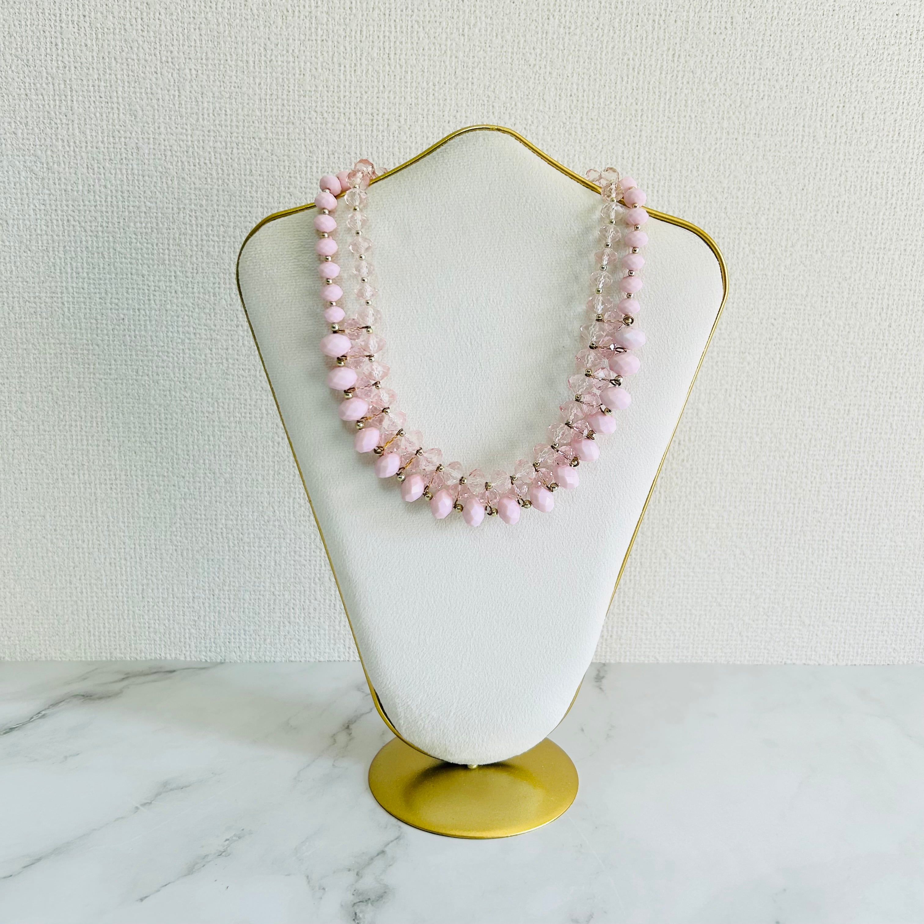 ピンク系×アンティークゴールドカラーのネックレスです。