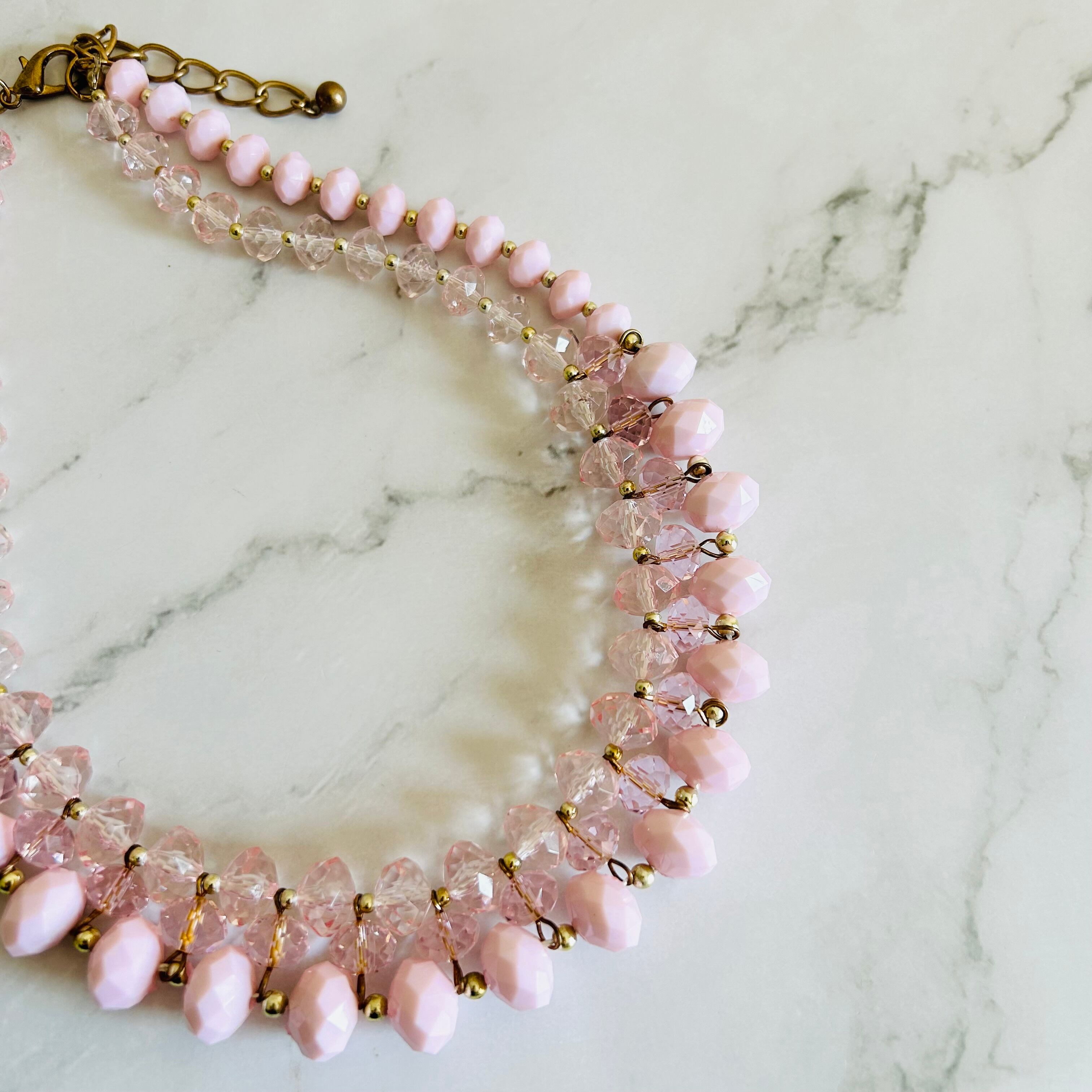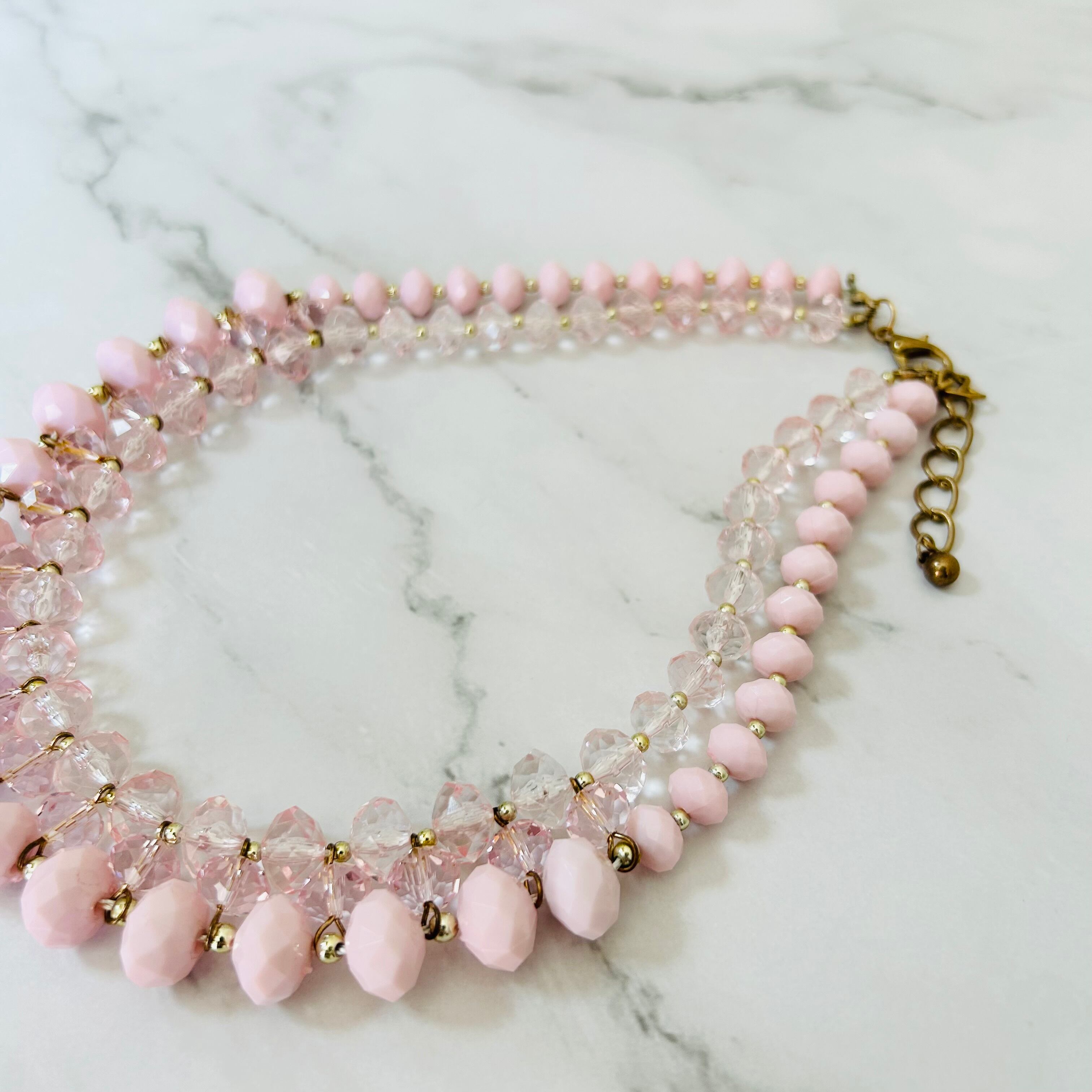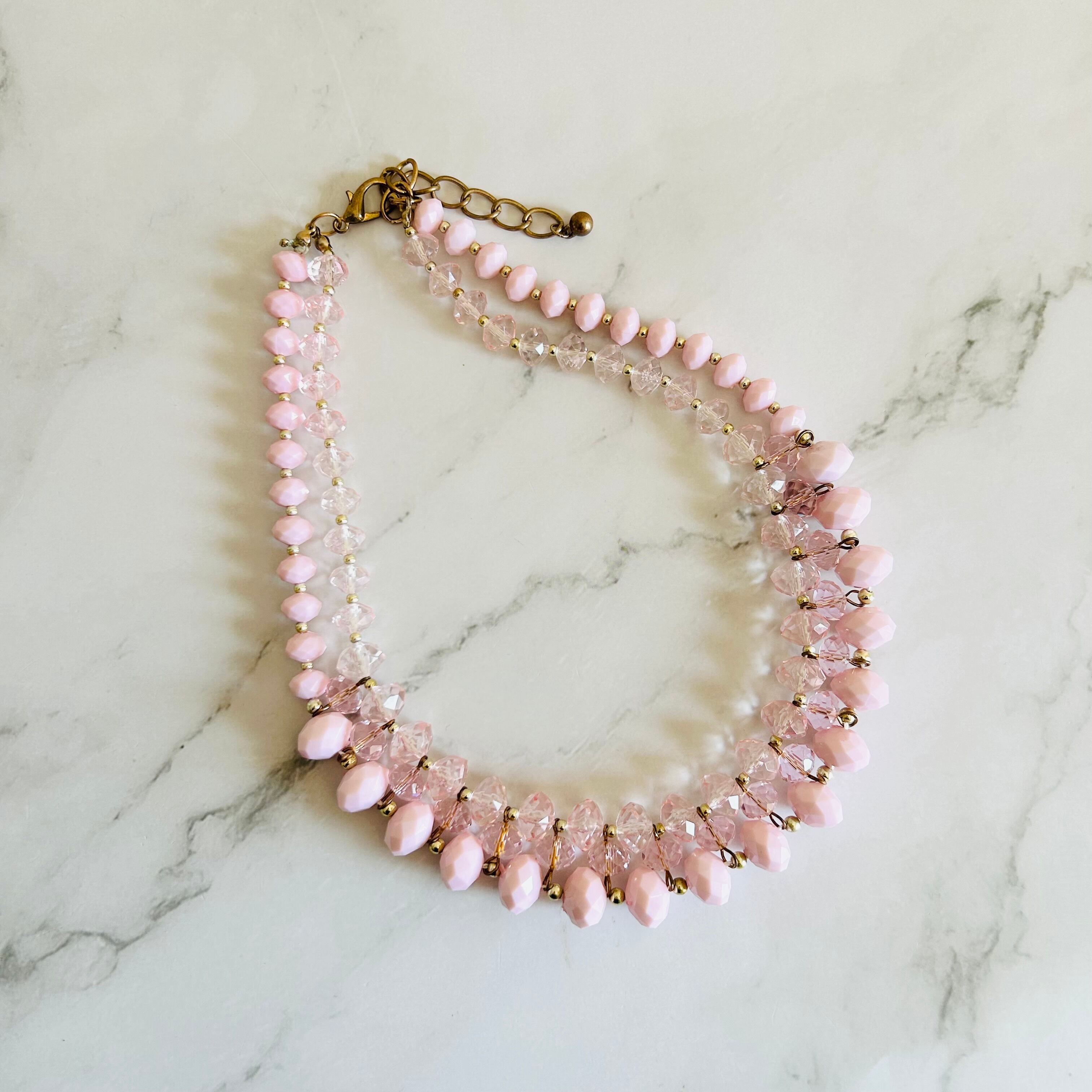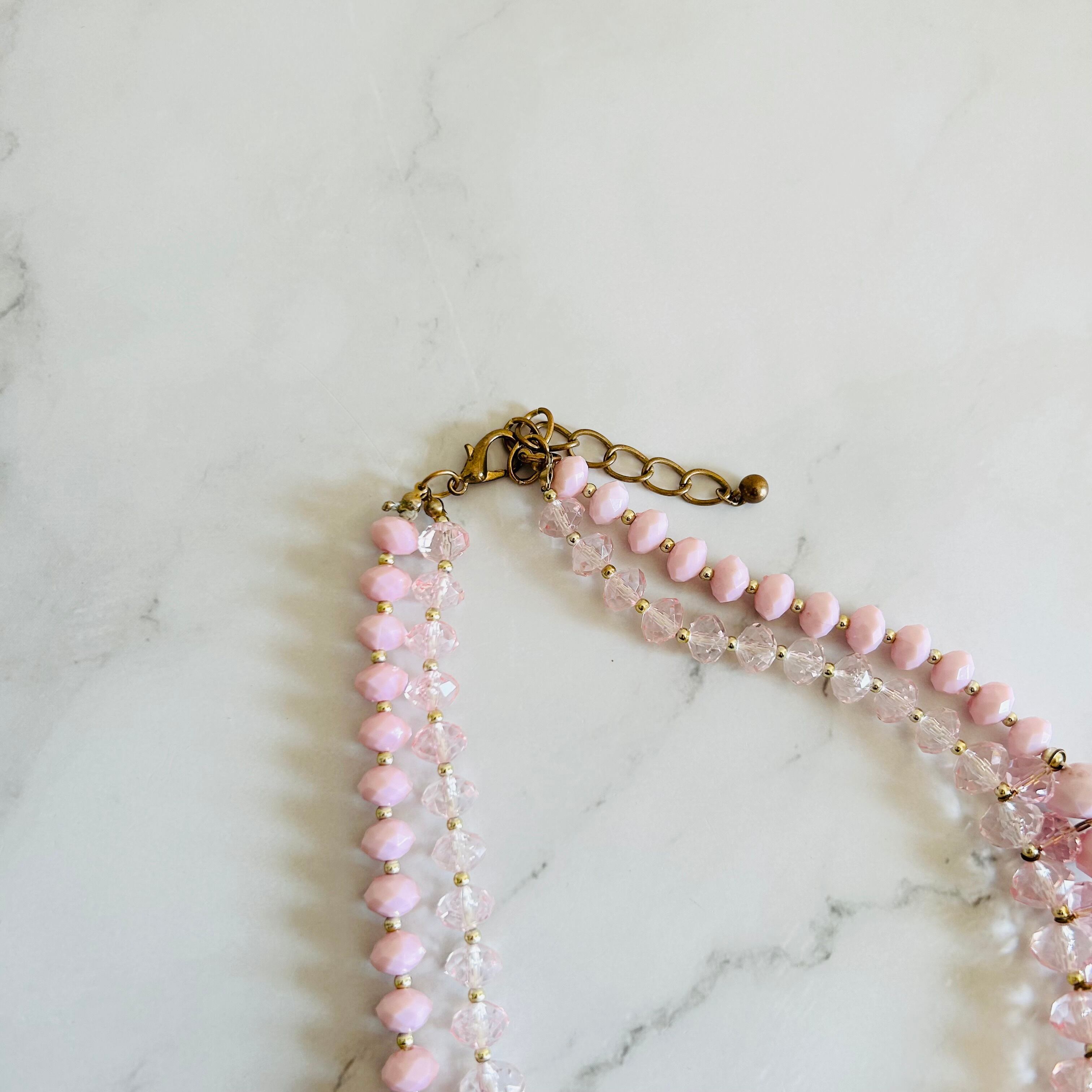 ピンク系×アンティークゴールドカラーのネックレスです。