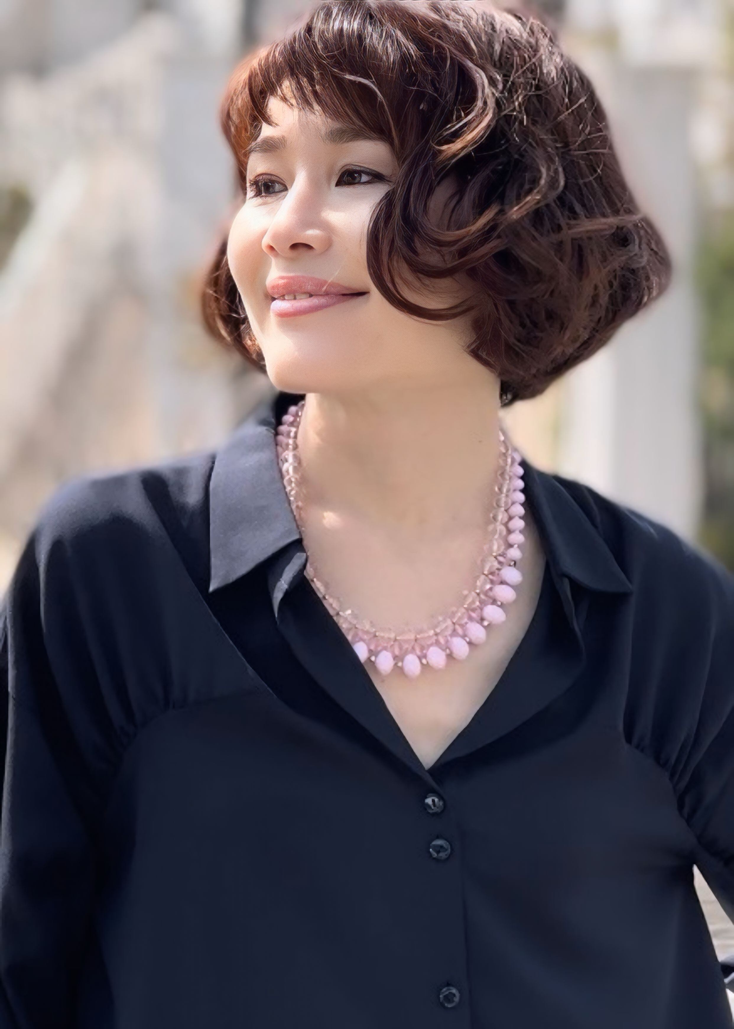優しいピンクカラーのアクリルビーズをグラデーションで並べたフェミニンなデザインです。