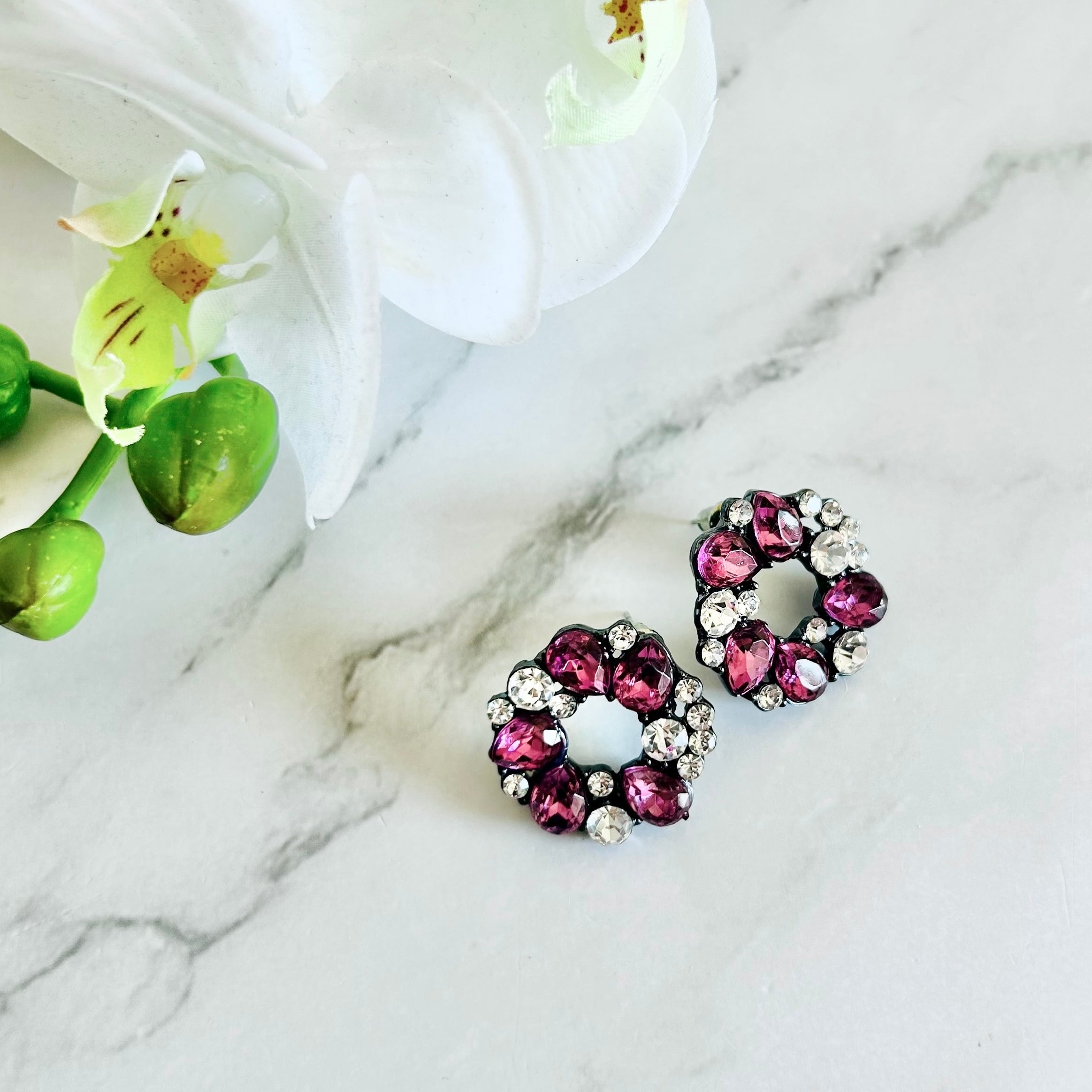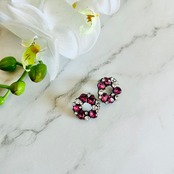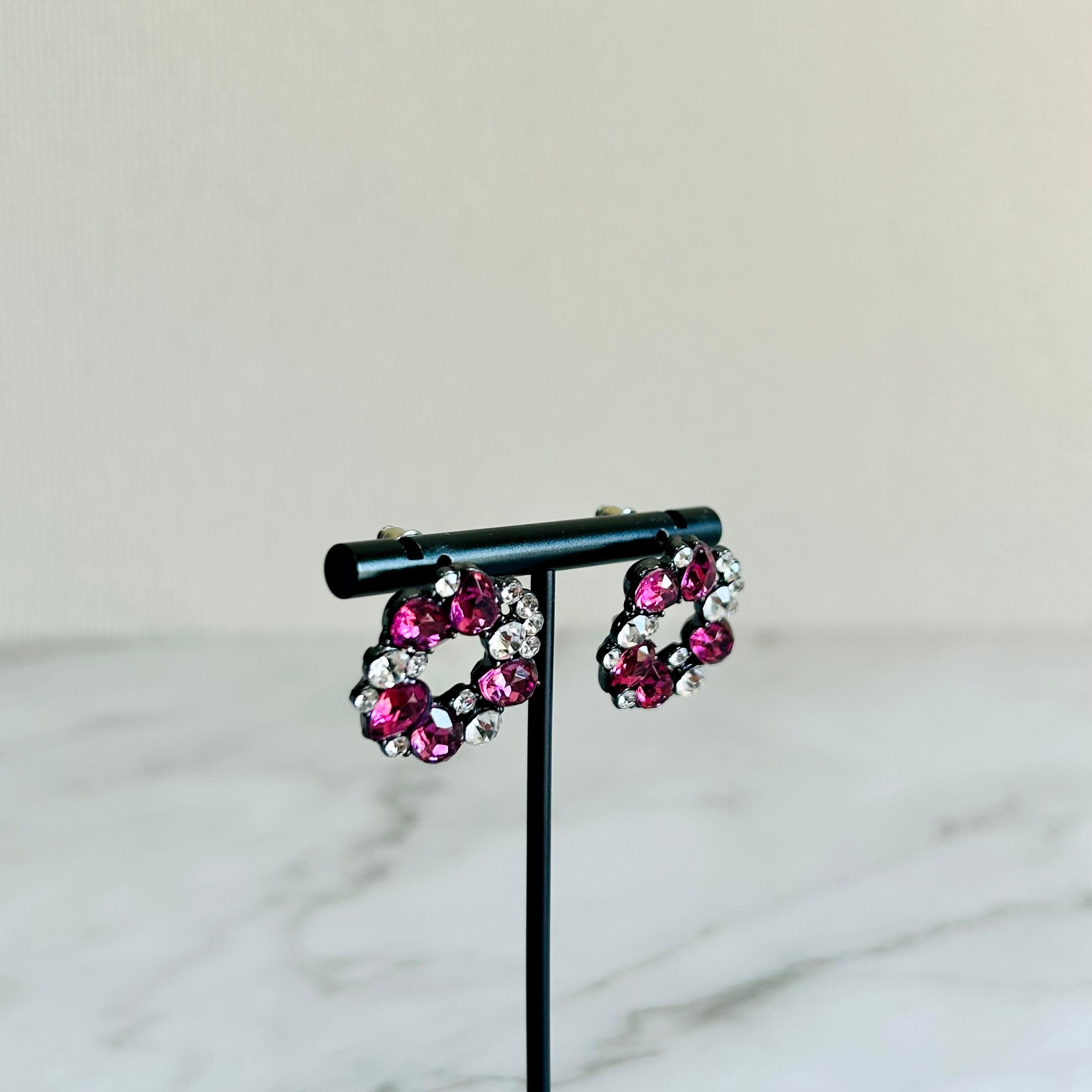 丸いフラワー型に輝くピンク色のストーンが女性らしさを引き立て、クリアなストーンがその輝きを一層引き立てています☆