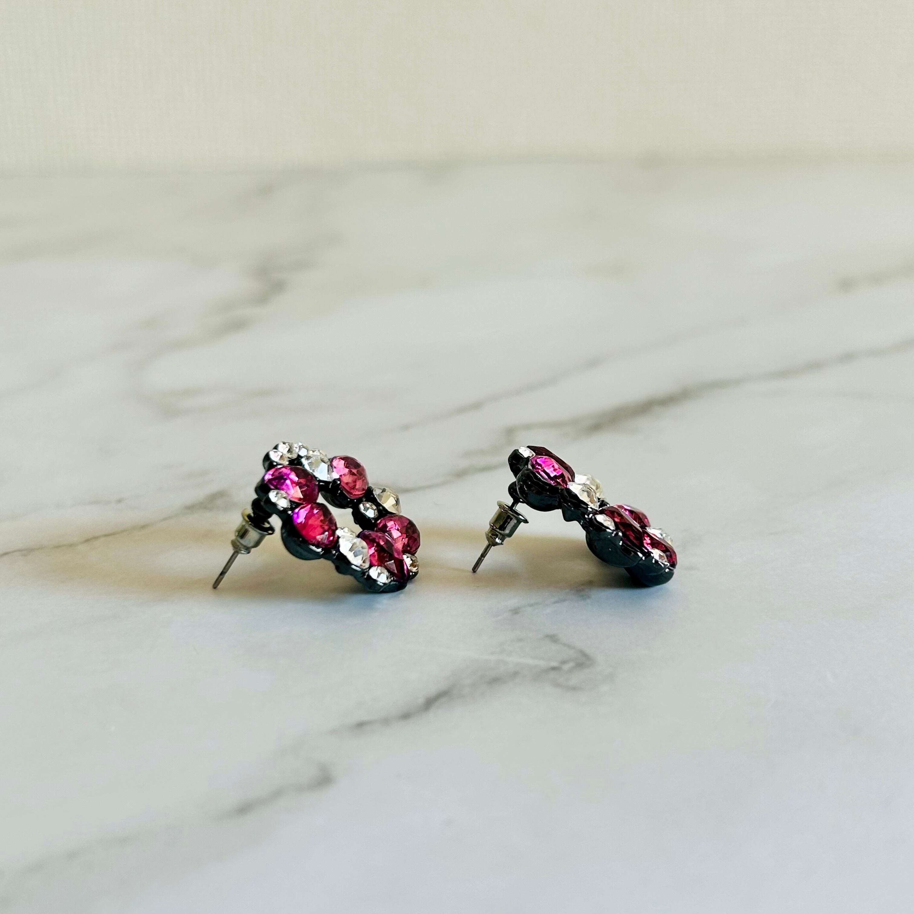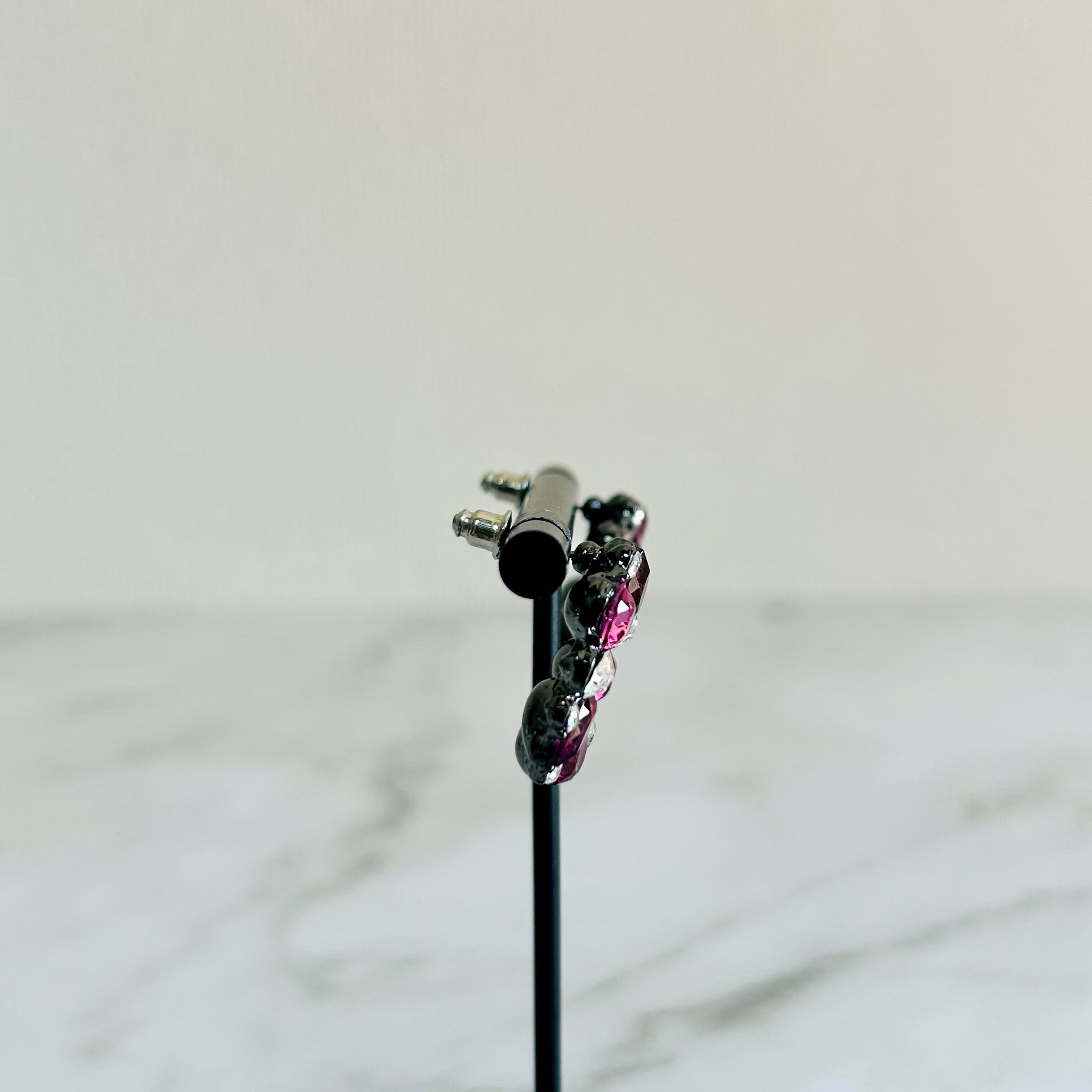 アクリル素材の深みのあるピンクとクリアなラインストーンが織りなす、コントラストが美しい華やかなデザインです。