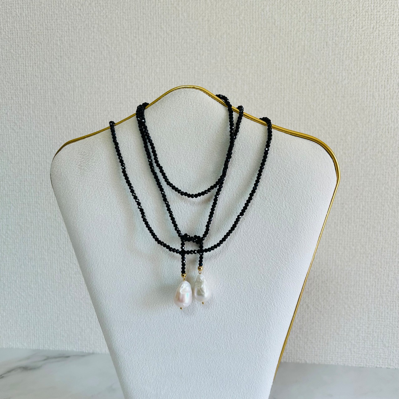 天然淡水パール✖️ブラックのロングネックレスです。