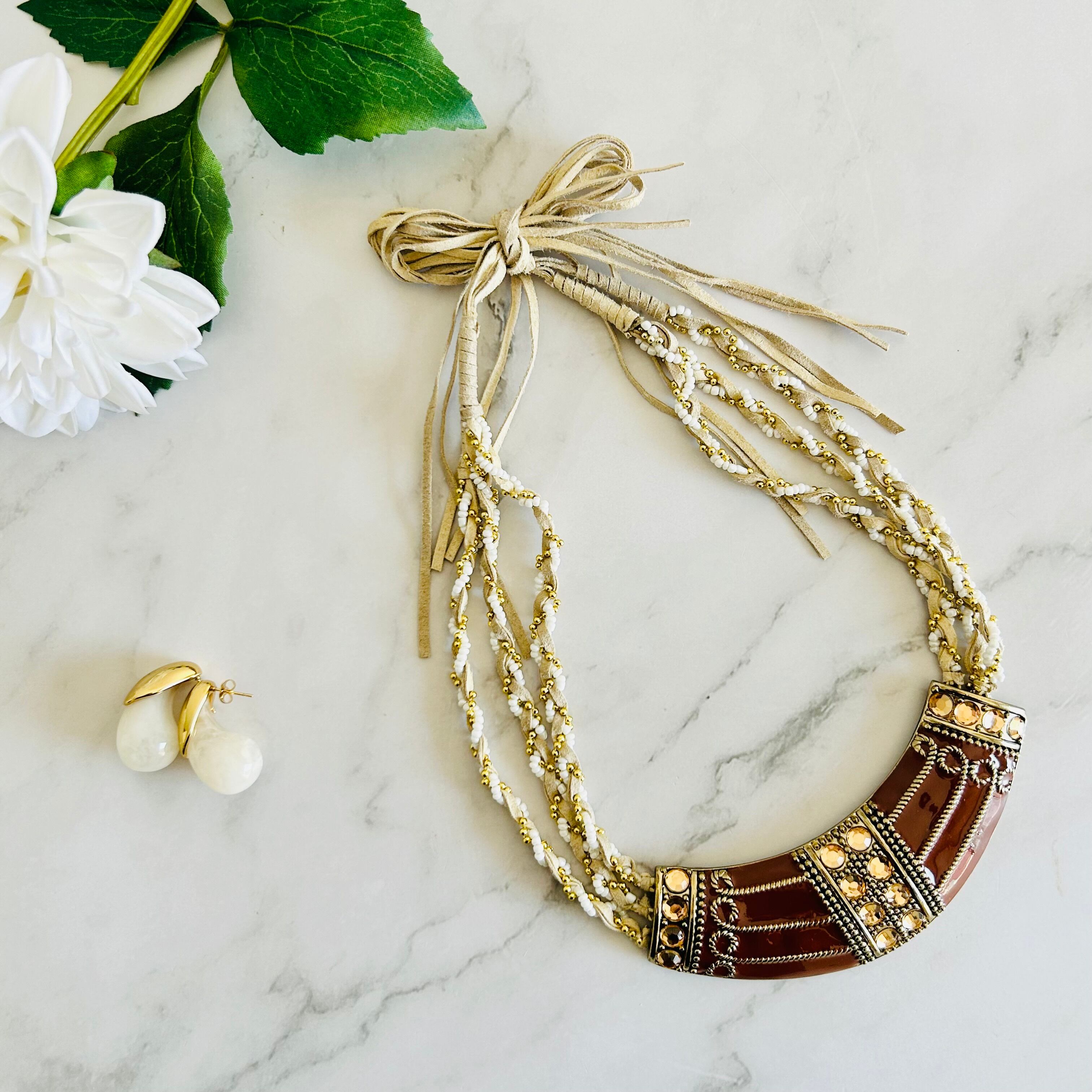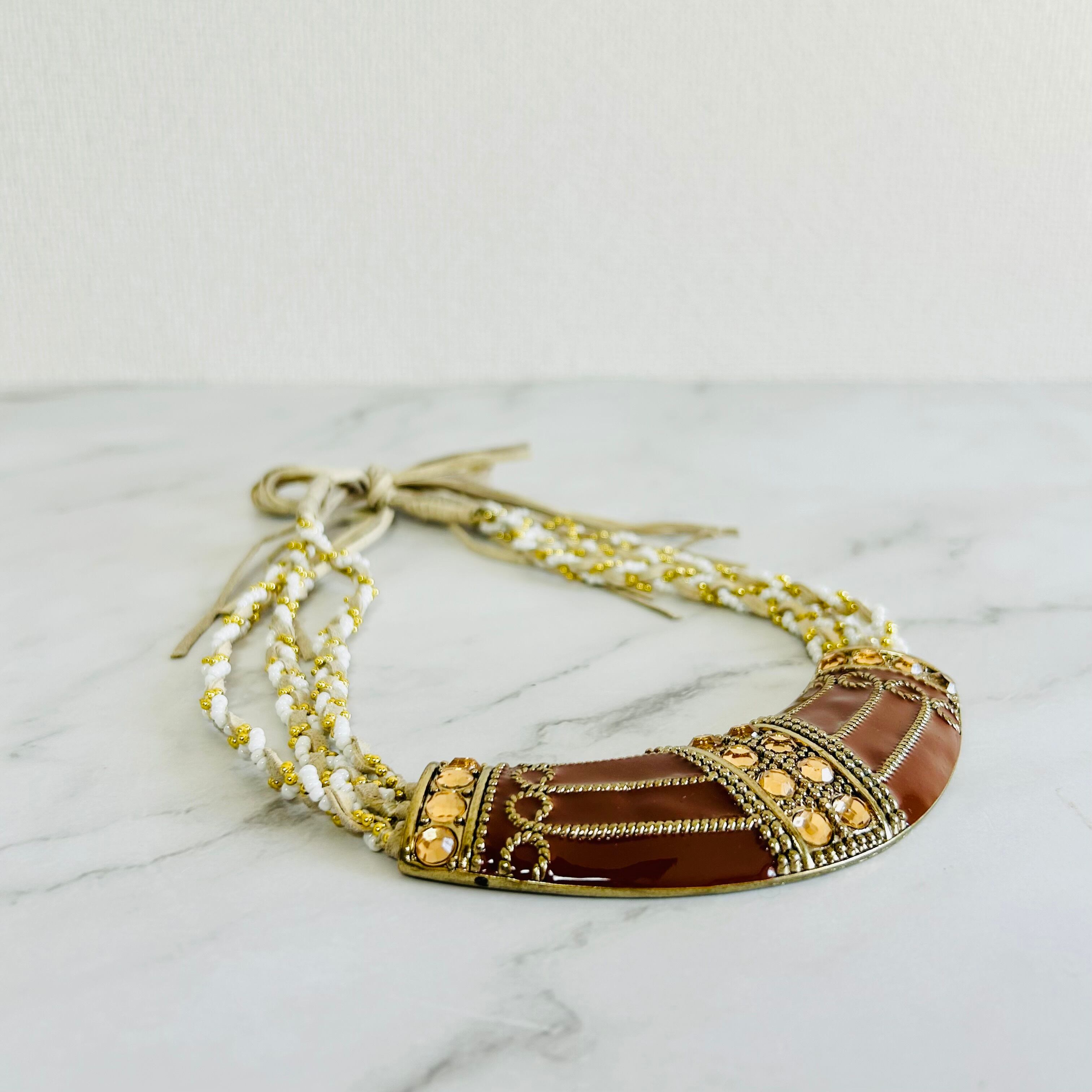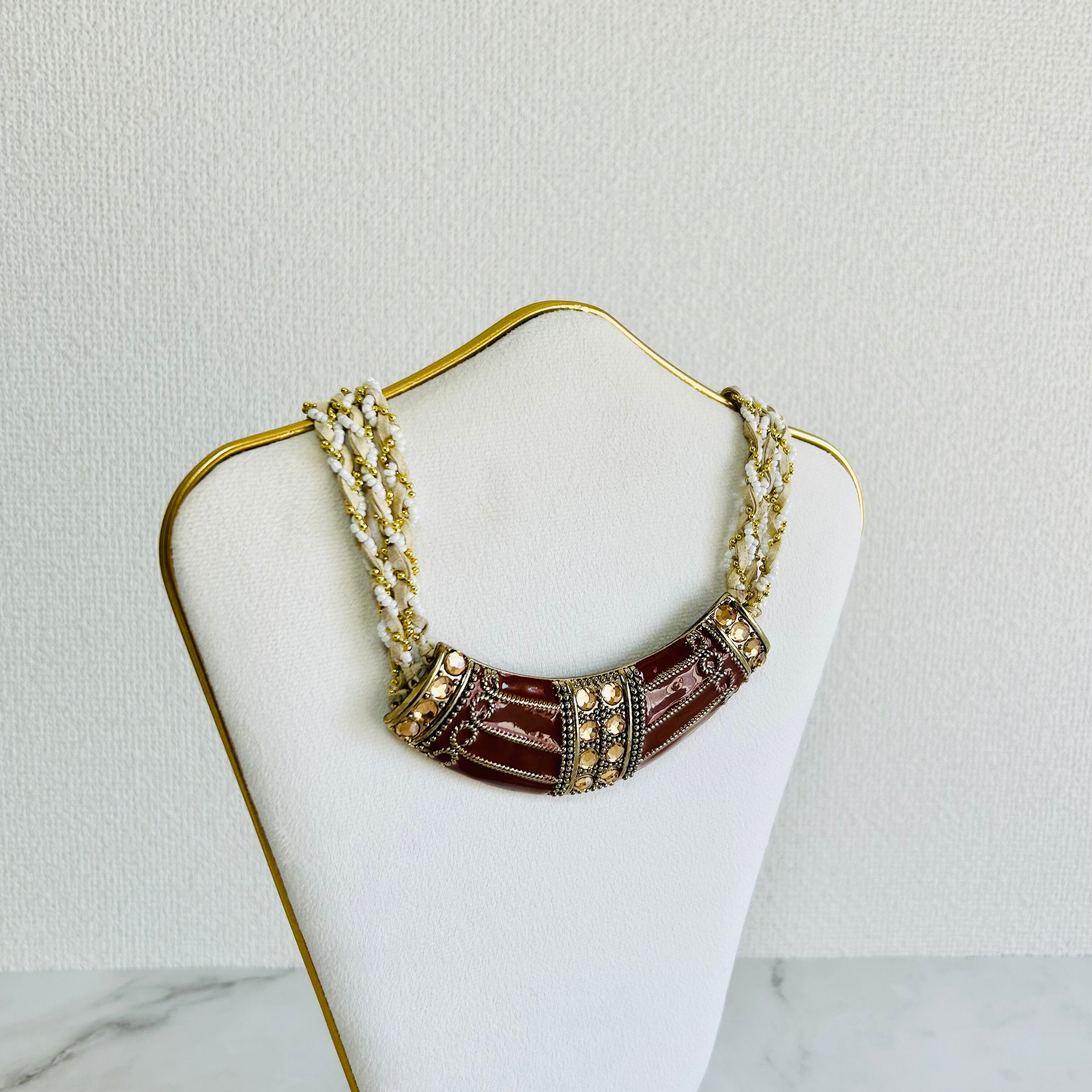 ブラウン、アイボリー✖️アンティークゴールドカラーのネックレスです。