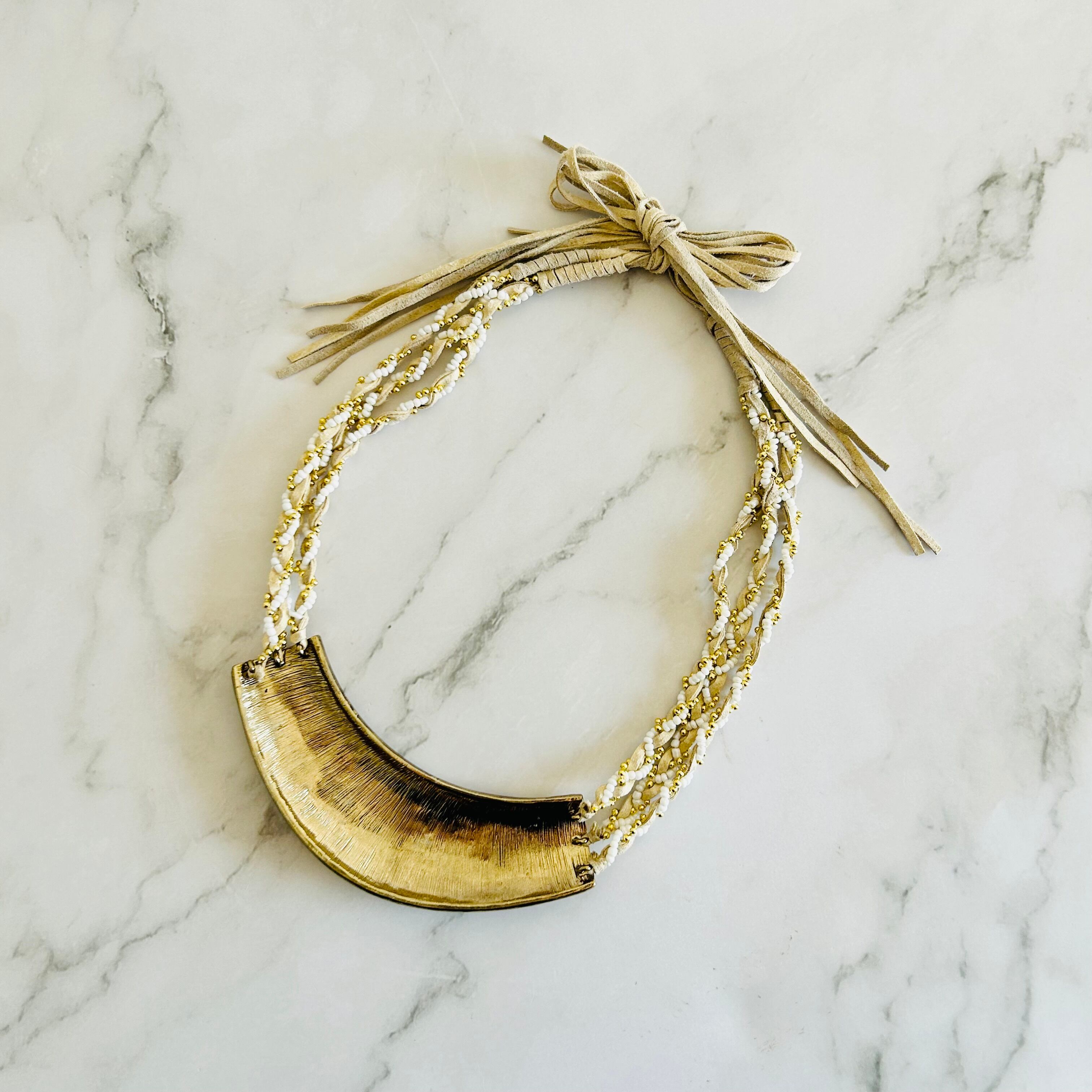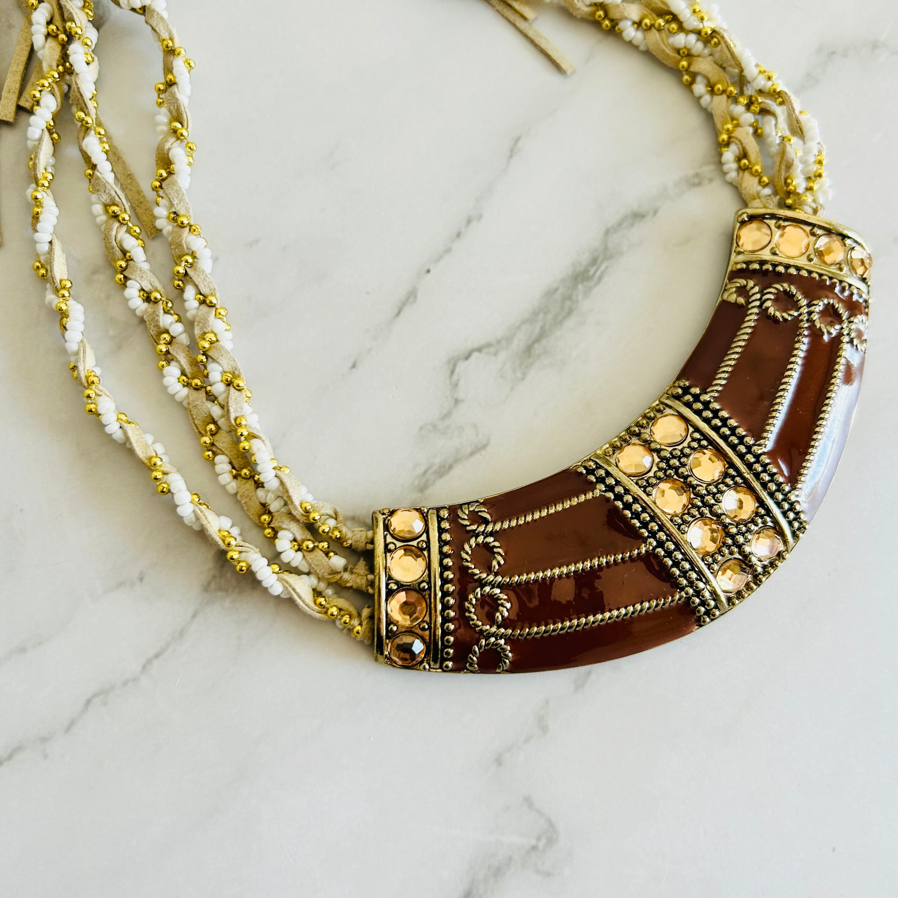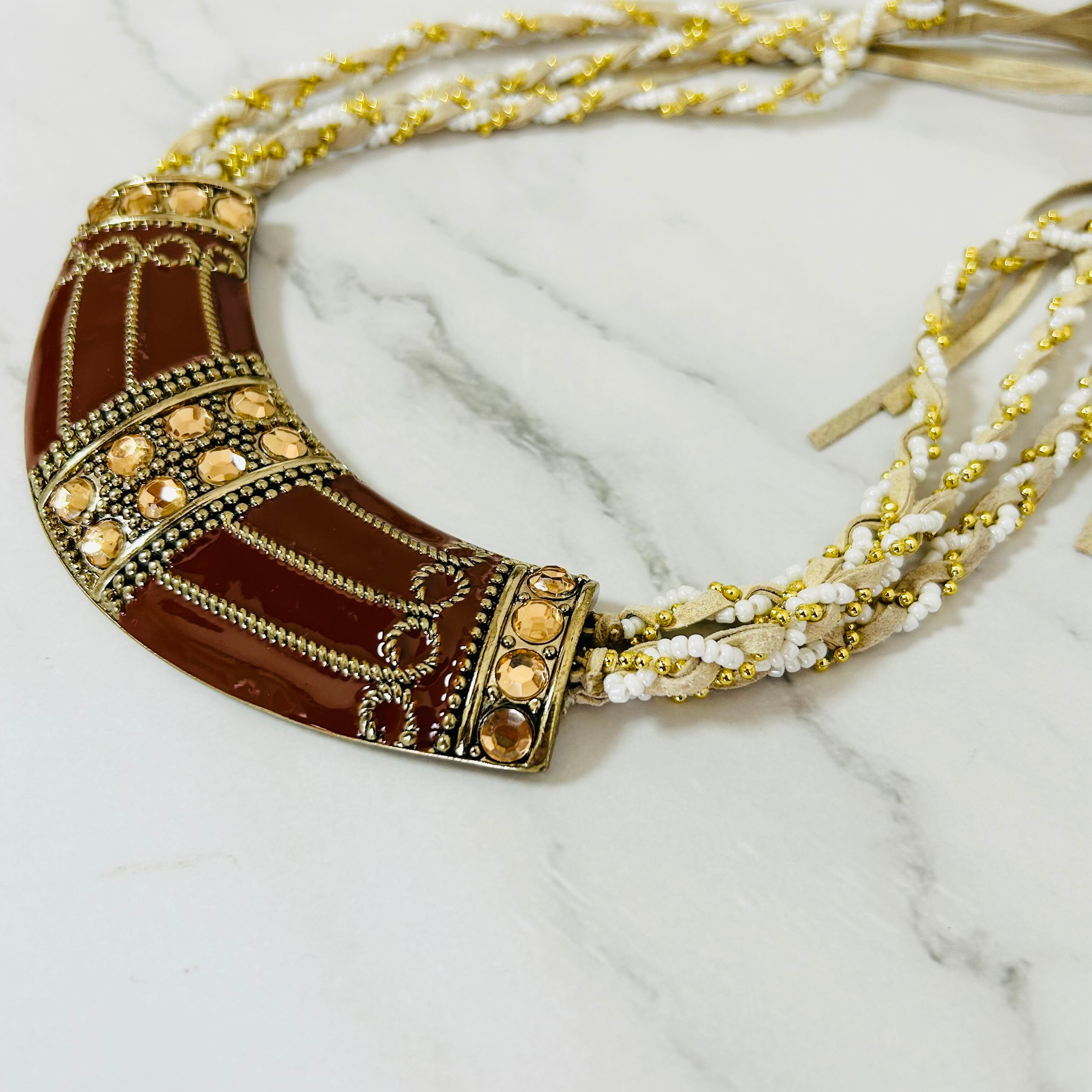 ブラウン、アイボリー✖️アンティークゴールドカラーのネックレスです。
