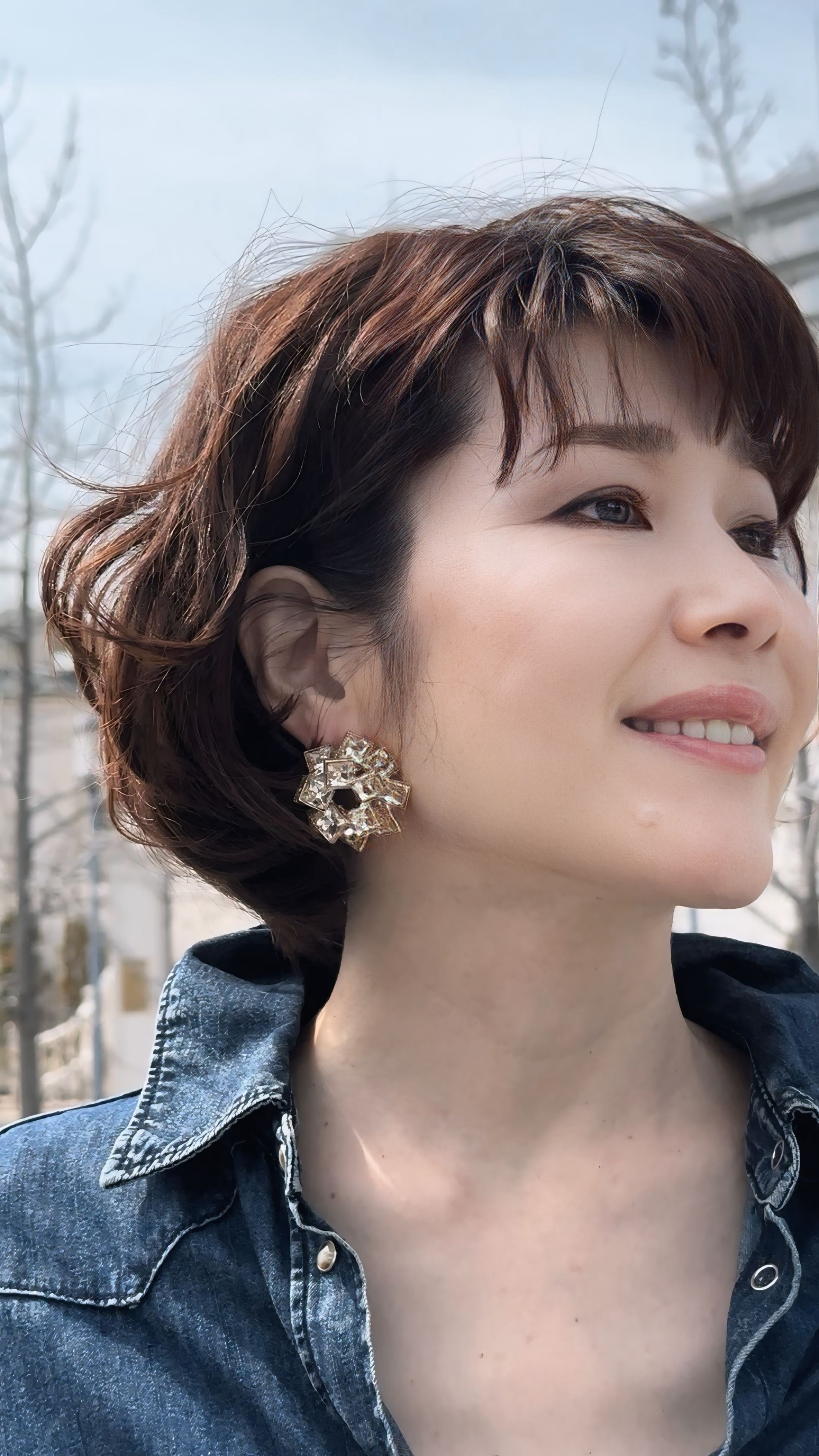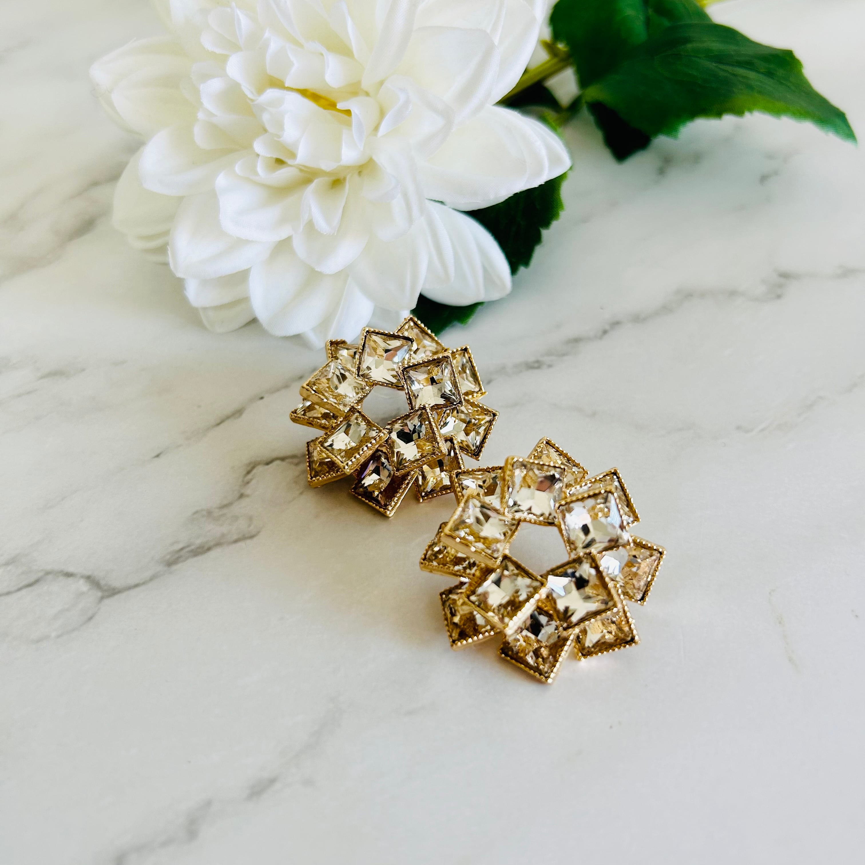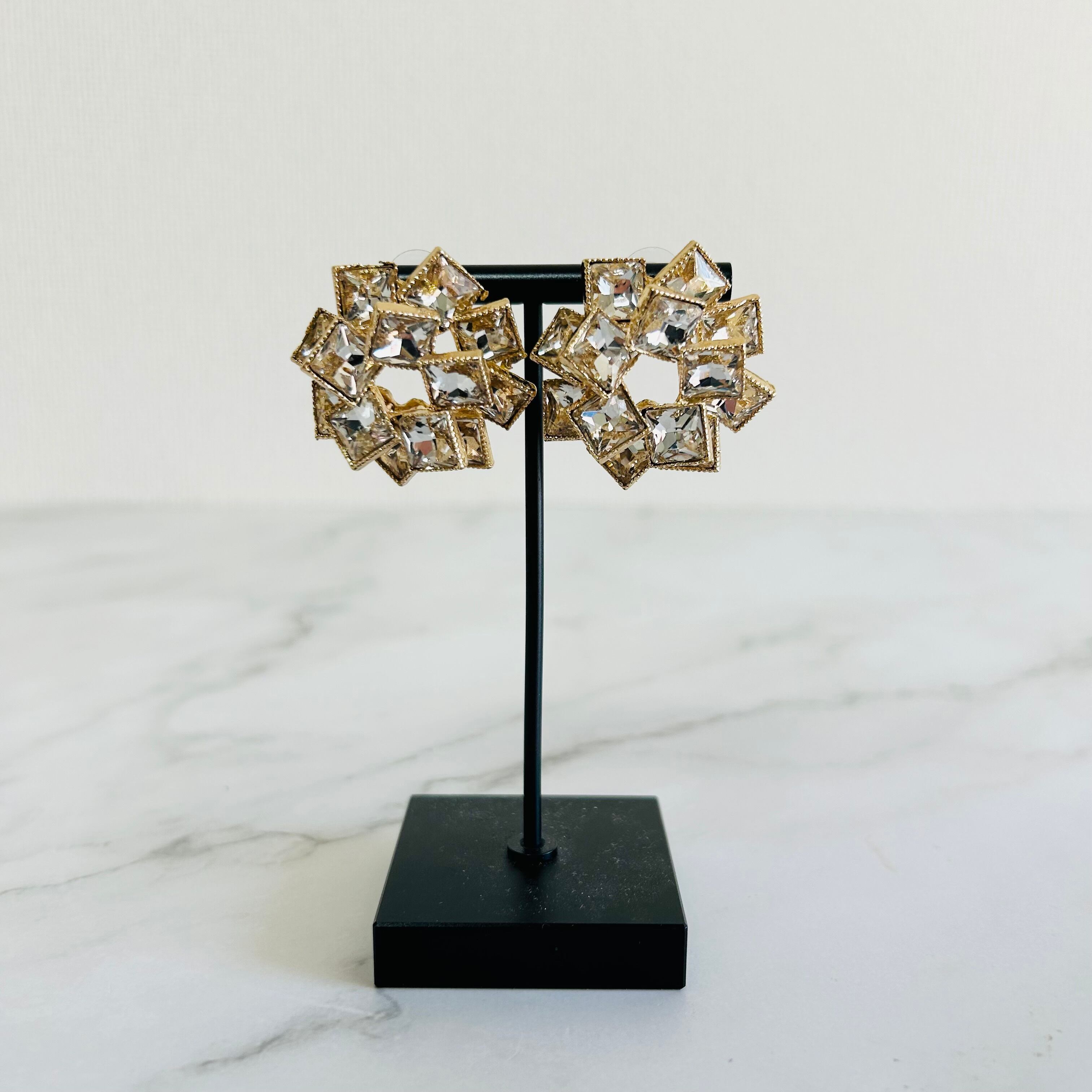 角度によって表情を変えるスクエアカットの輝きが、顔まわりに華やぎをもたらし、どんな装いもワンランク上の印象に仕上げてくれます。
