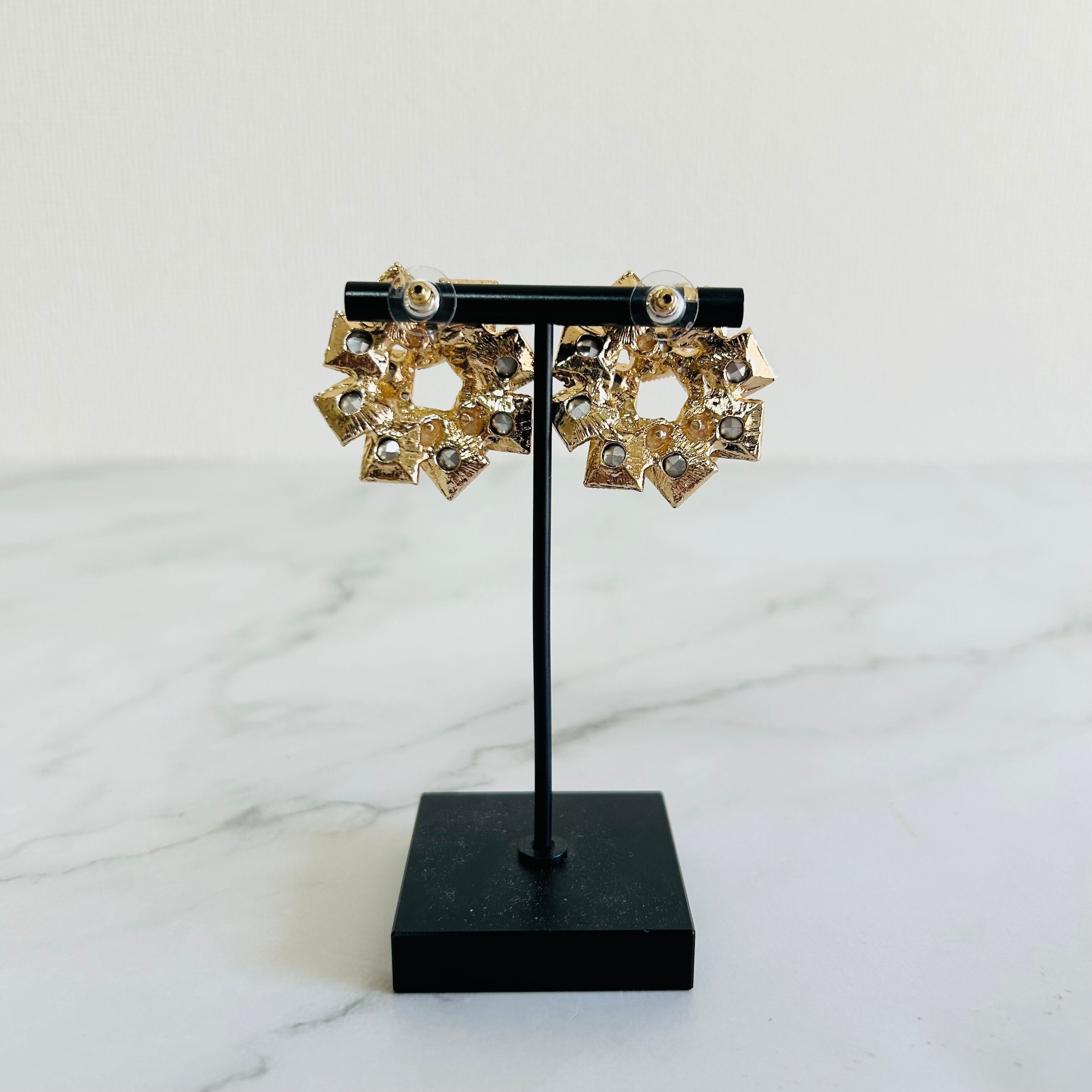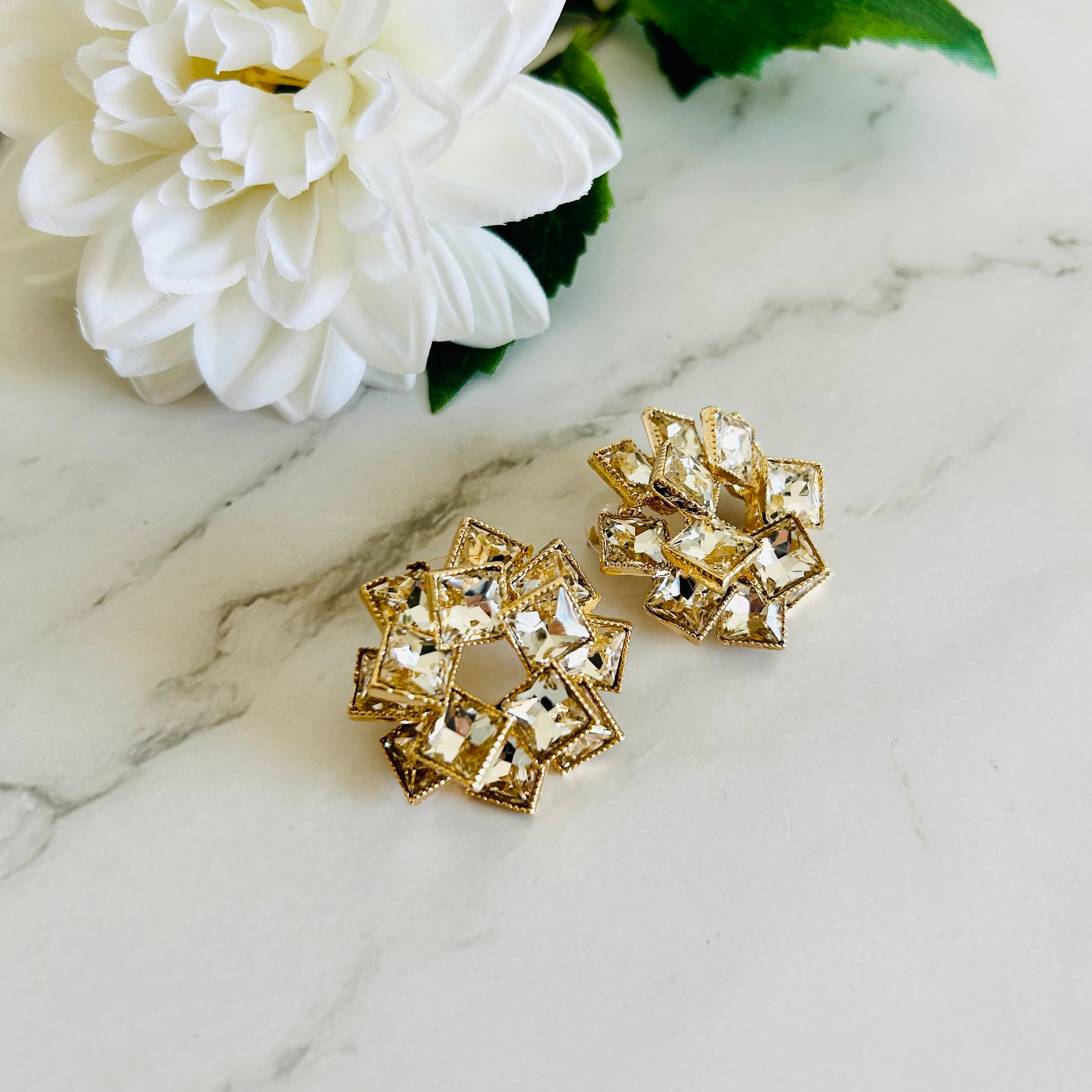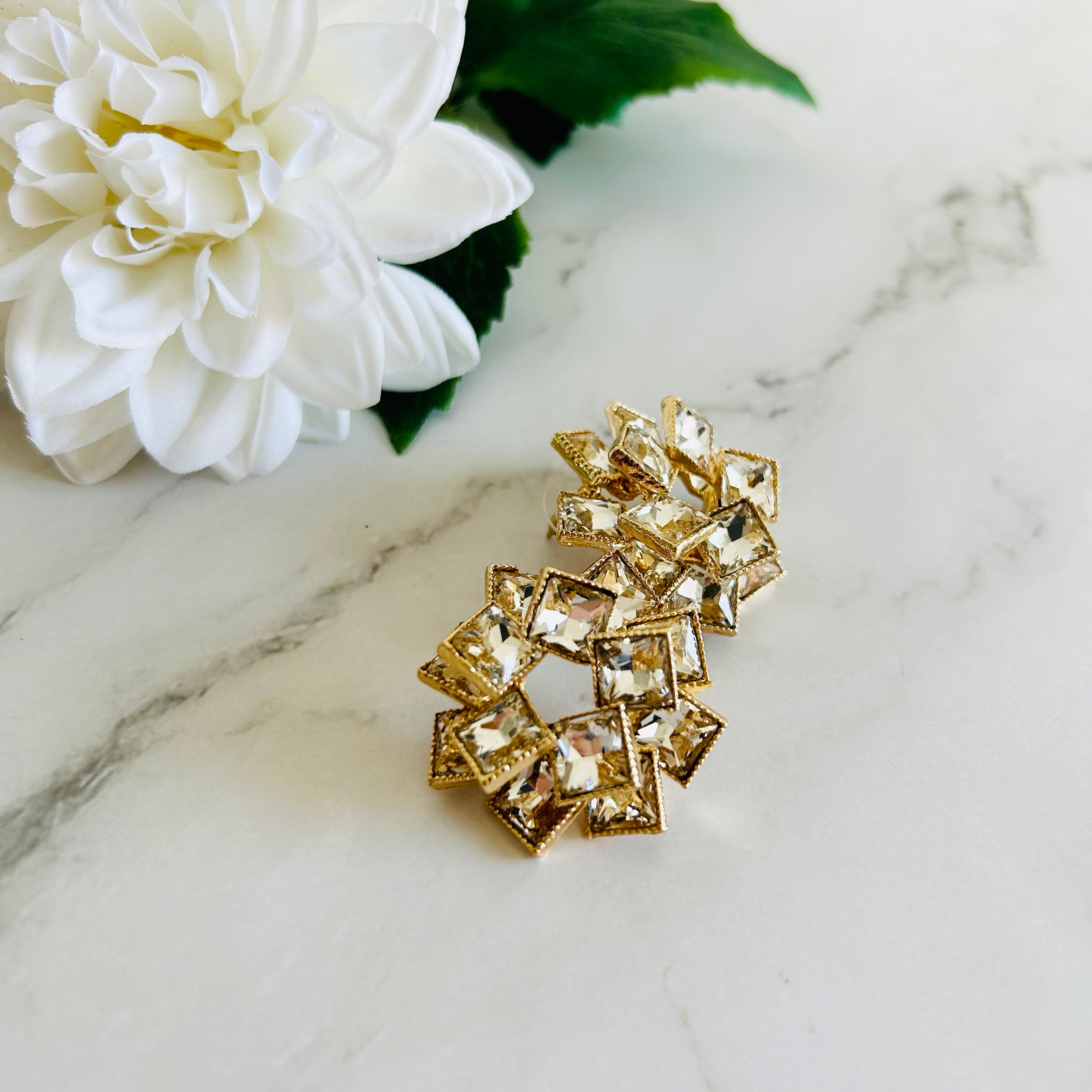 まるで光を集めて咲く花のように、繊細なクリスタルが立体的に重なり合った、存在感のあるデザインが魅力です☆