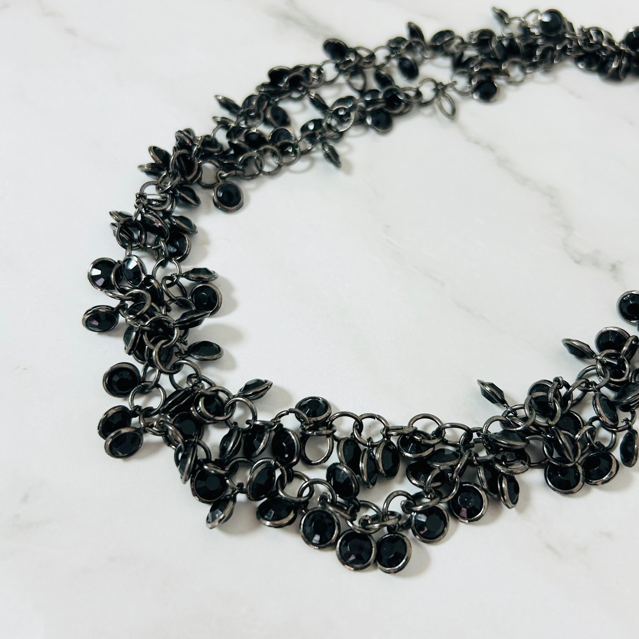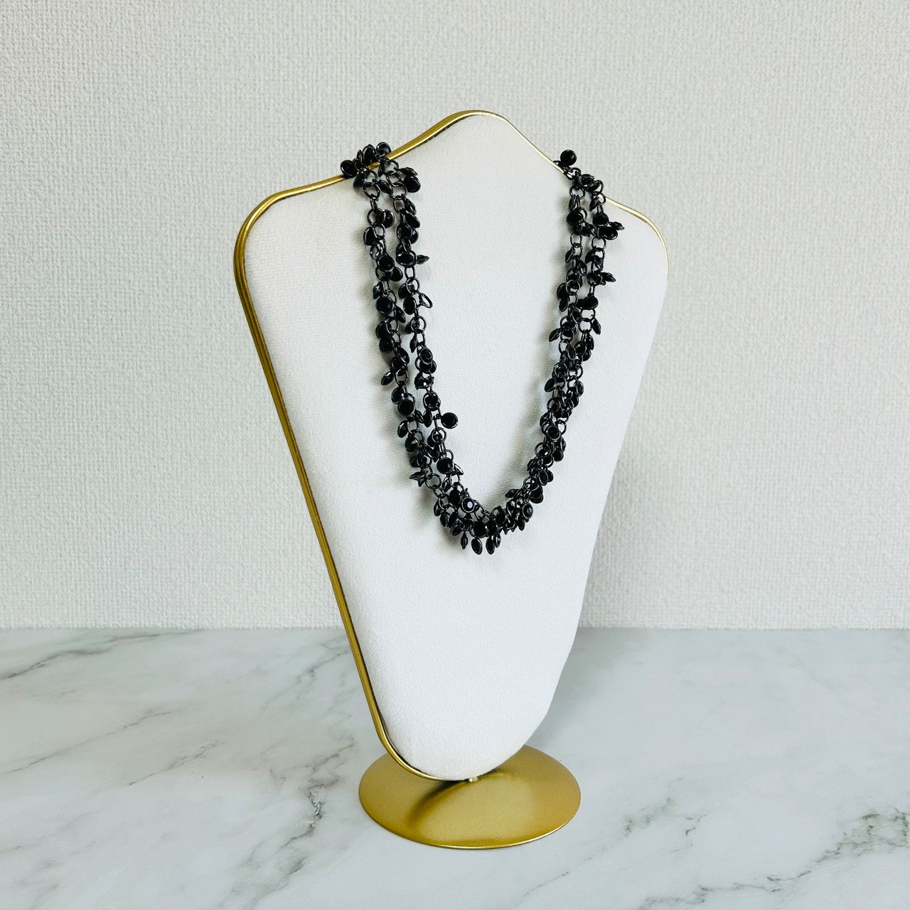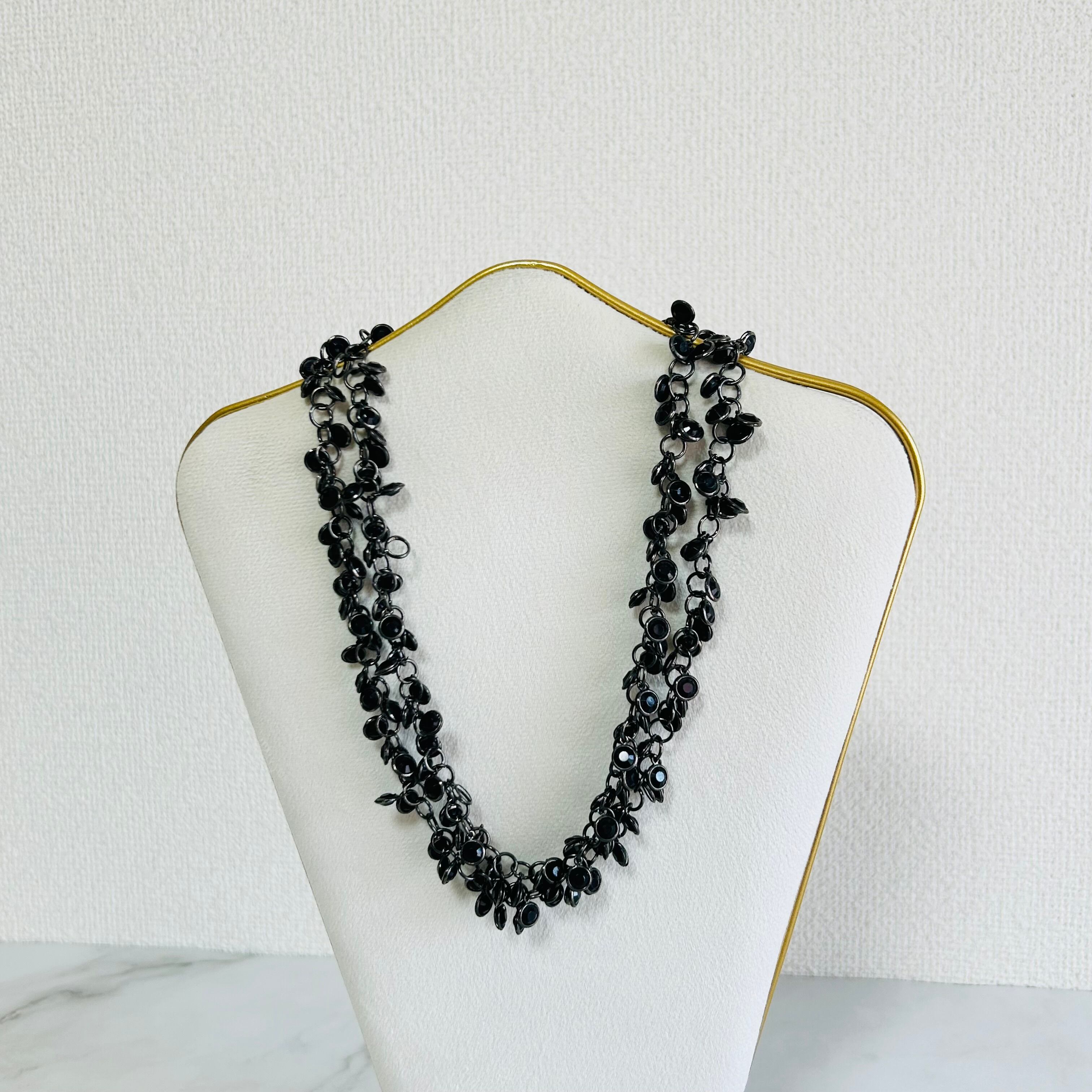 艶感のあるアクリルパーツを一つ一つ丁寧にチェーンに組み合わせ、2連に仕上げた繊細なデザインです。
