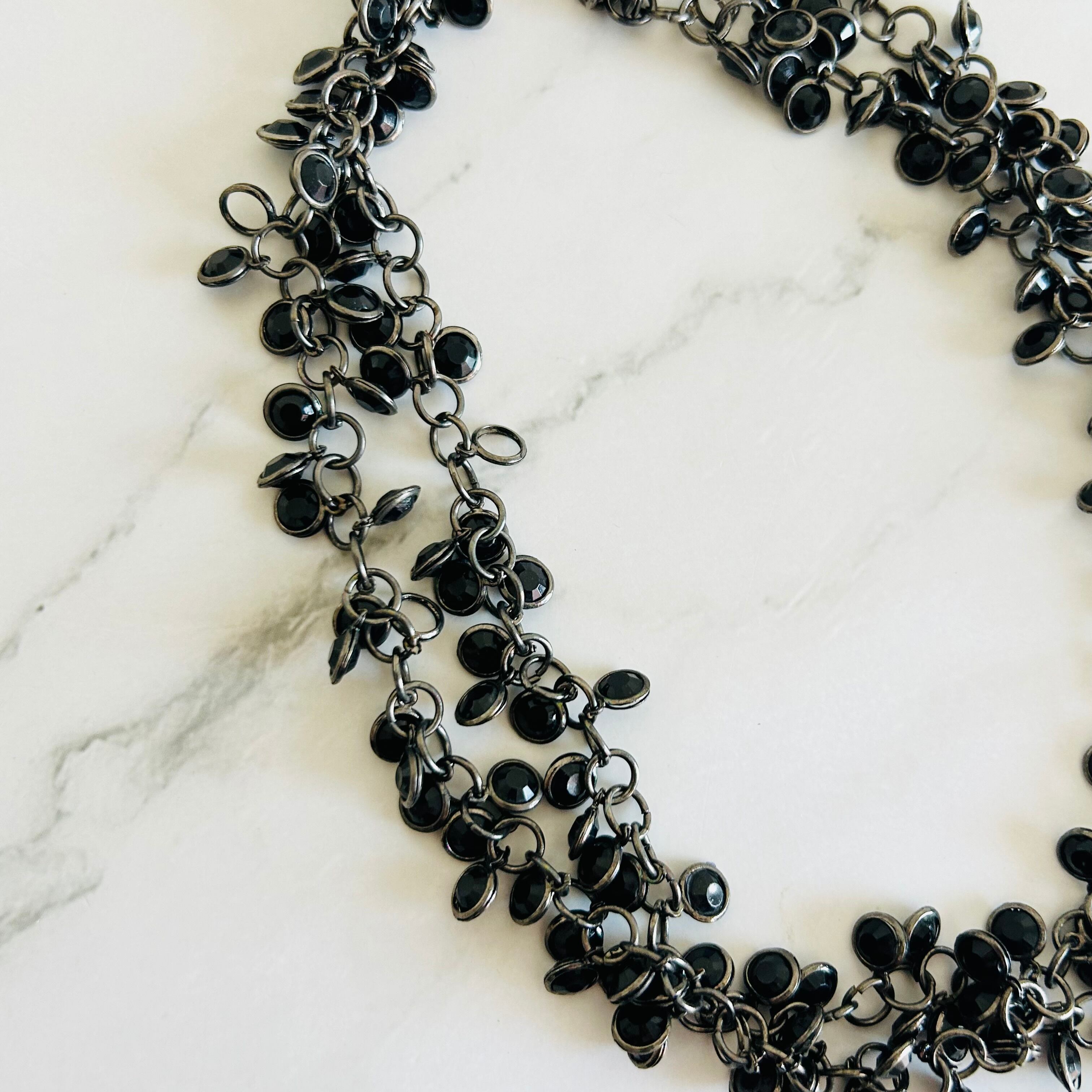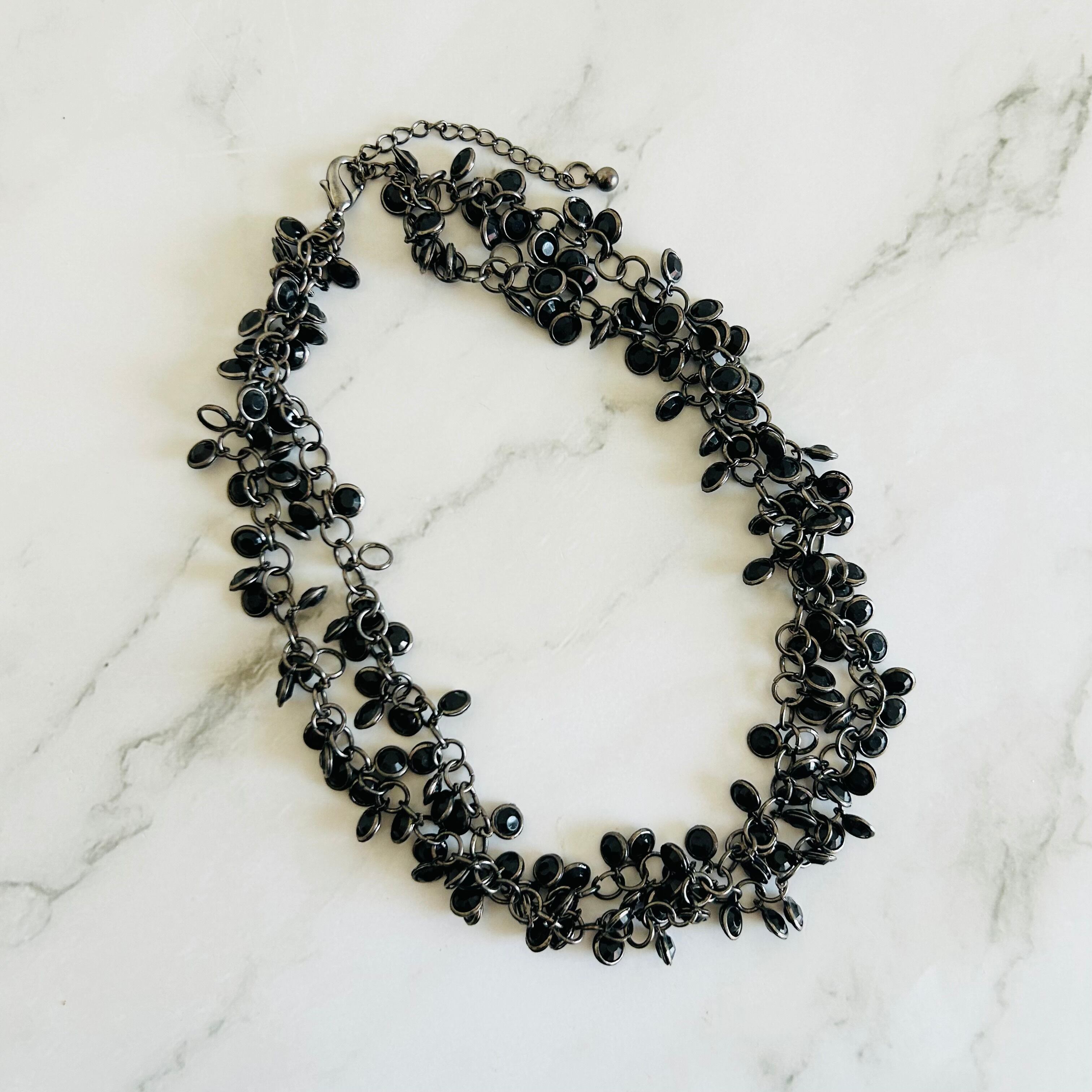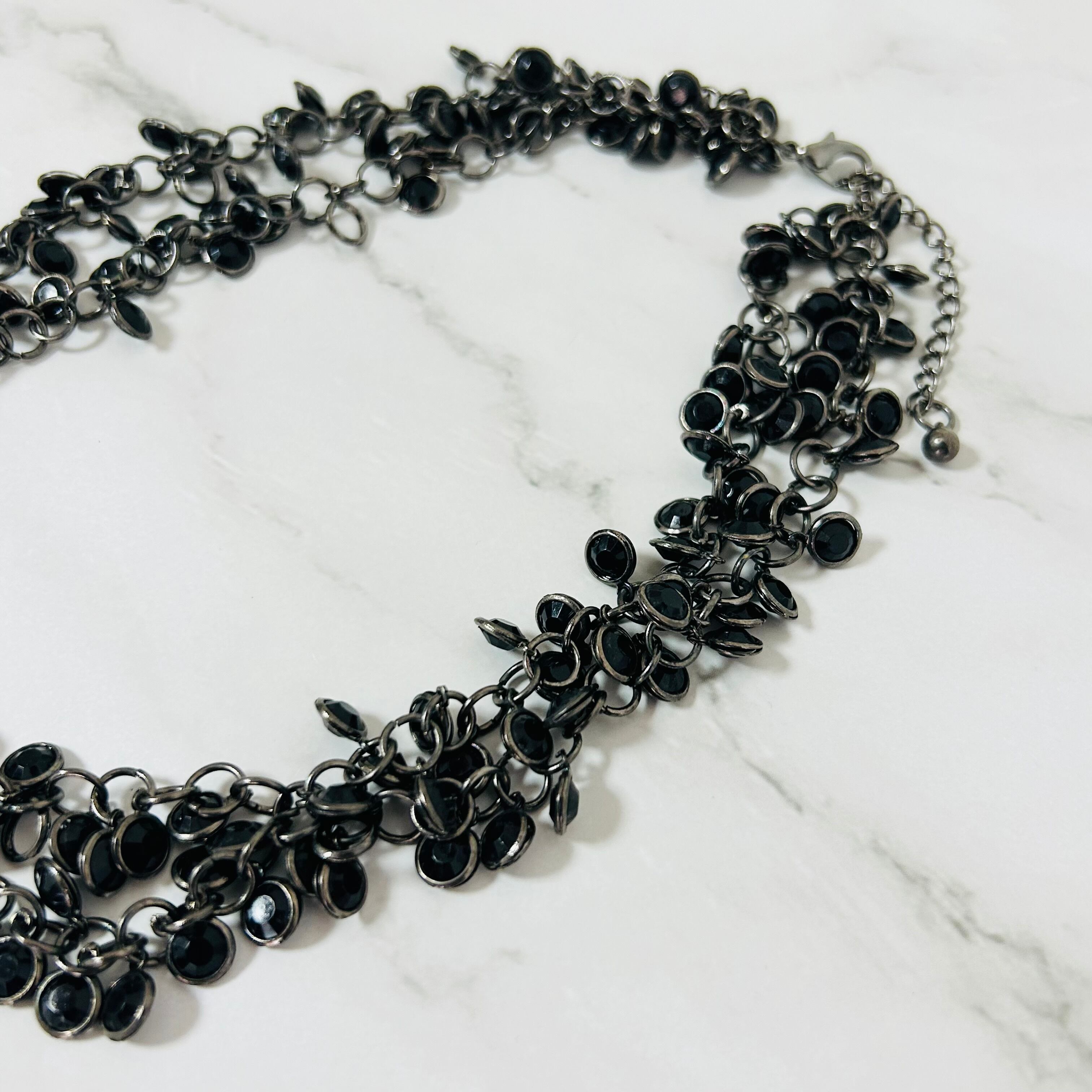 艶感のあるアクリルパーツを一つ一つ丁寧にチェーンに組み合わせ、2連に仕上げた繊細なデザインです。