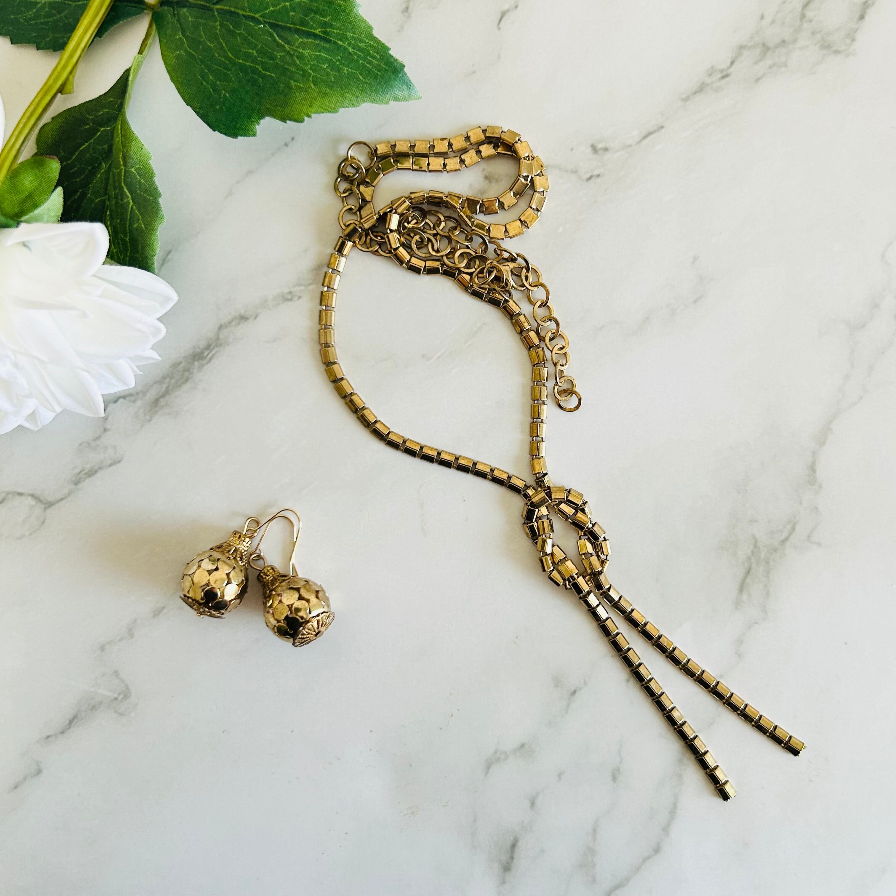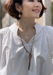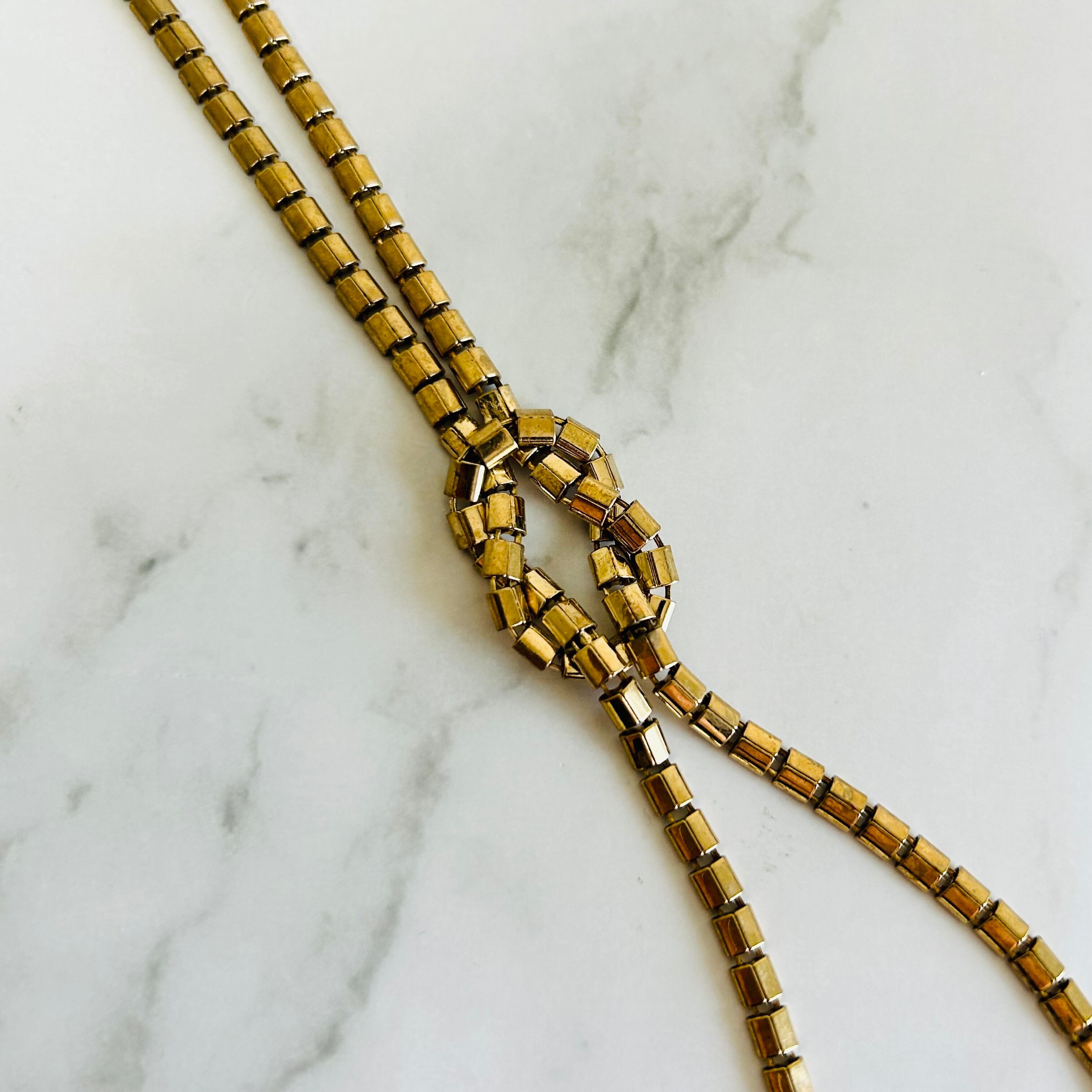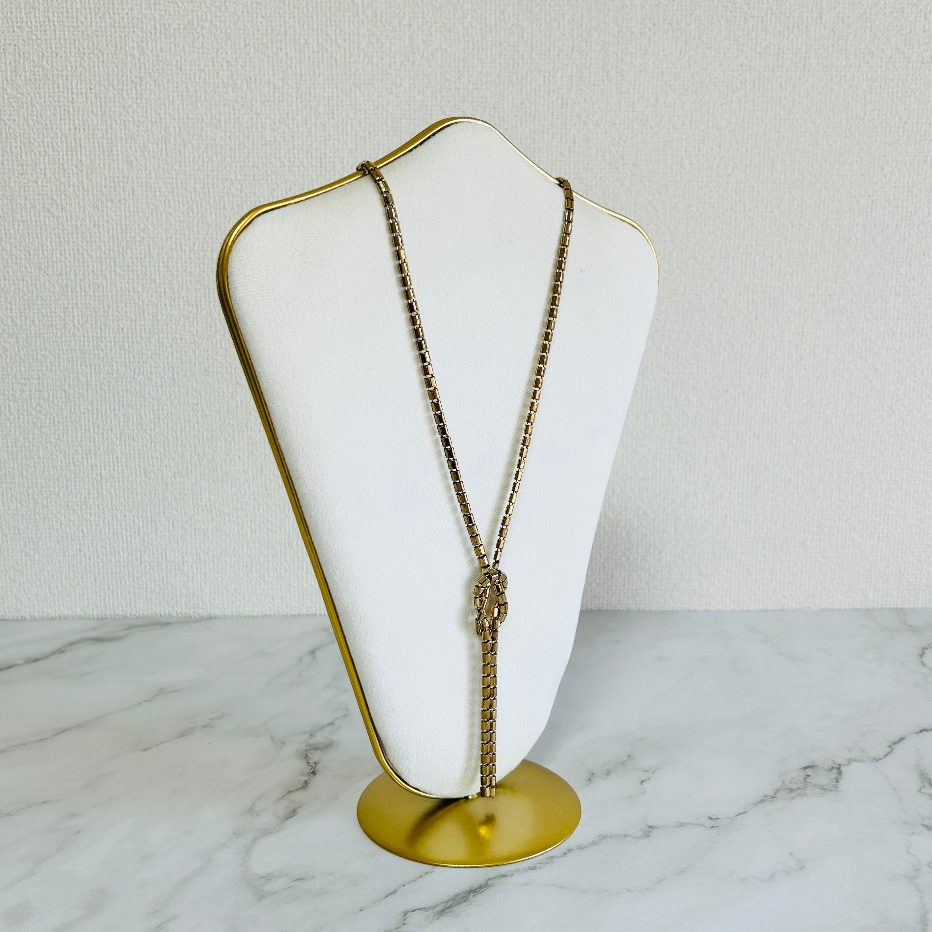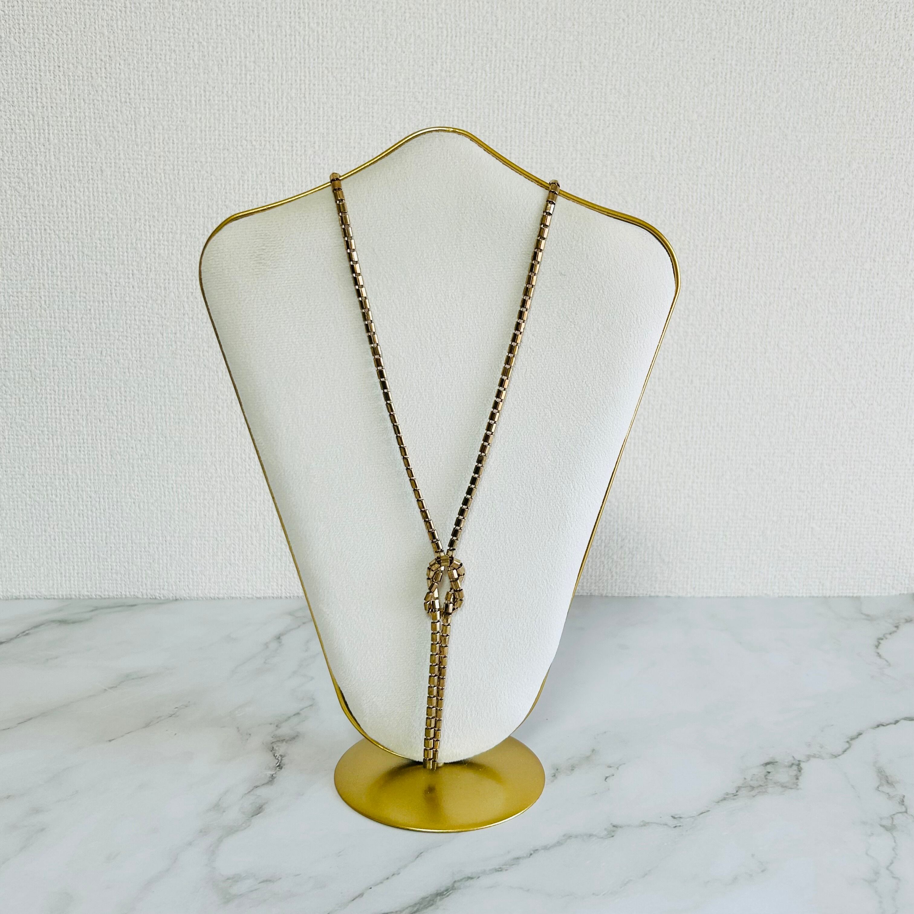 アンティークゴールドの上品なツヤ感が印象的なノットデザインのラリエットネックレスです。