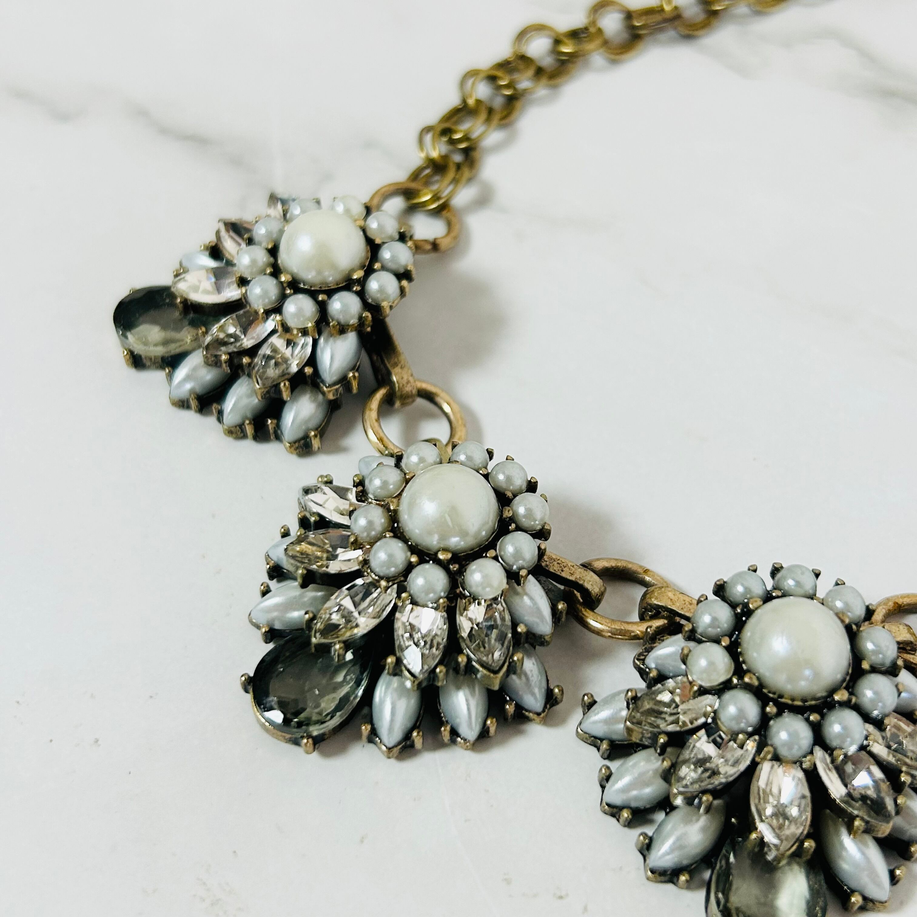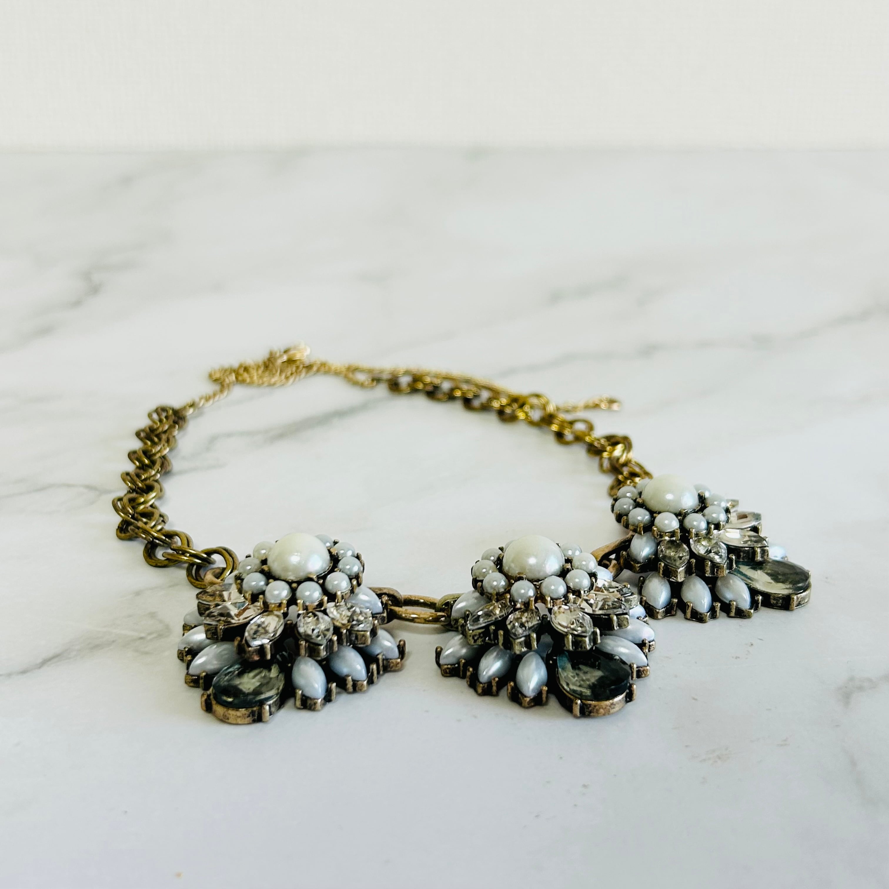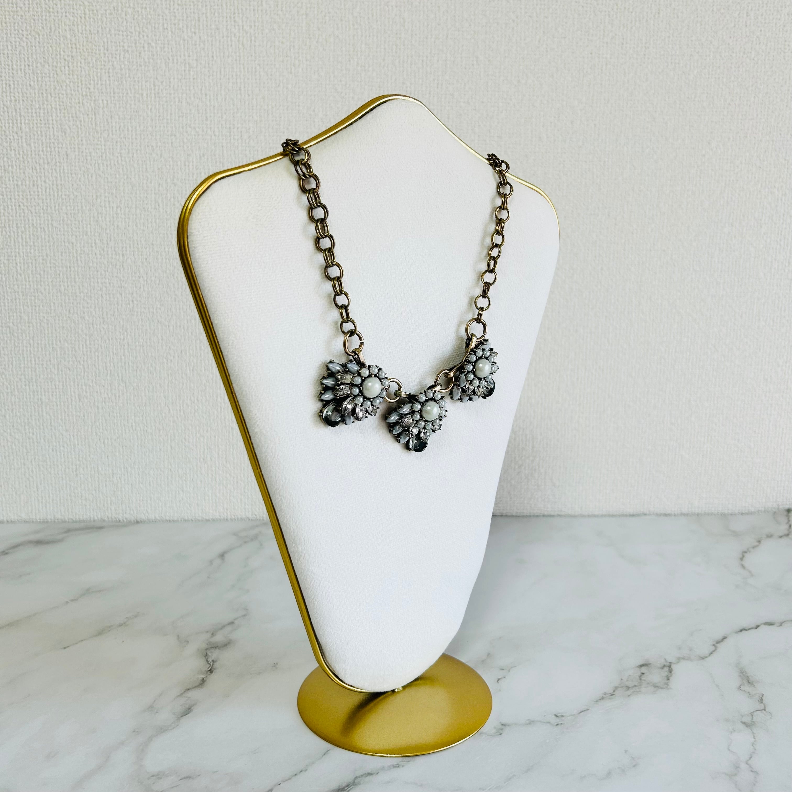 上品なパールと煌びやかなストーンが美しく調和した、ヴィンテージライクなフラワーモチーフが魅力的です。