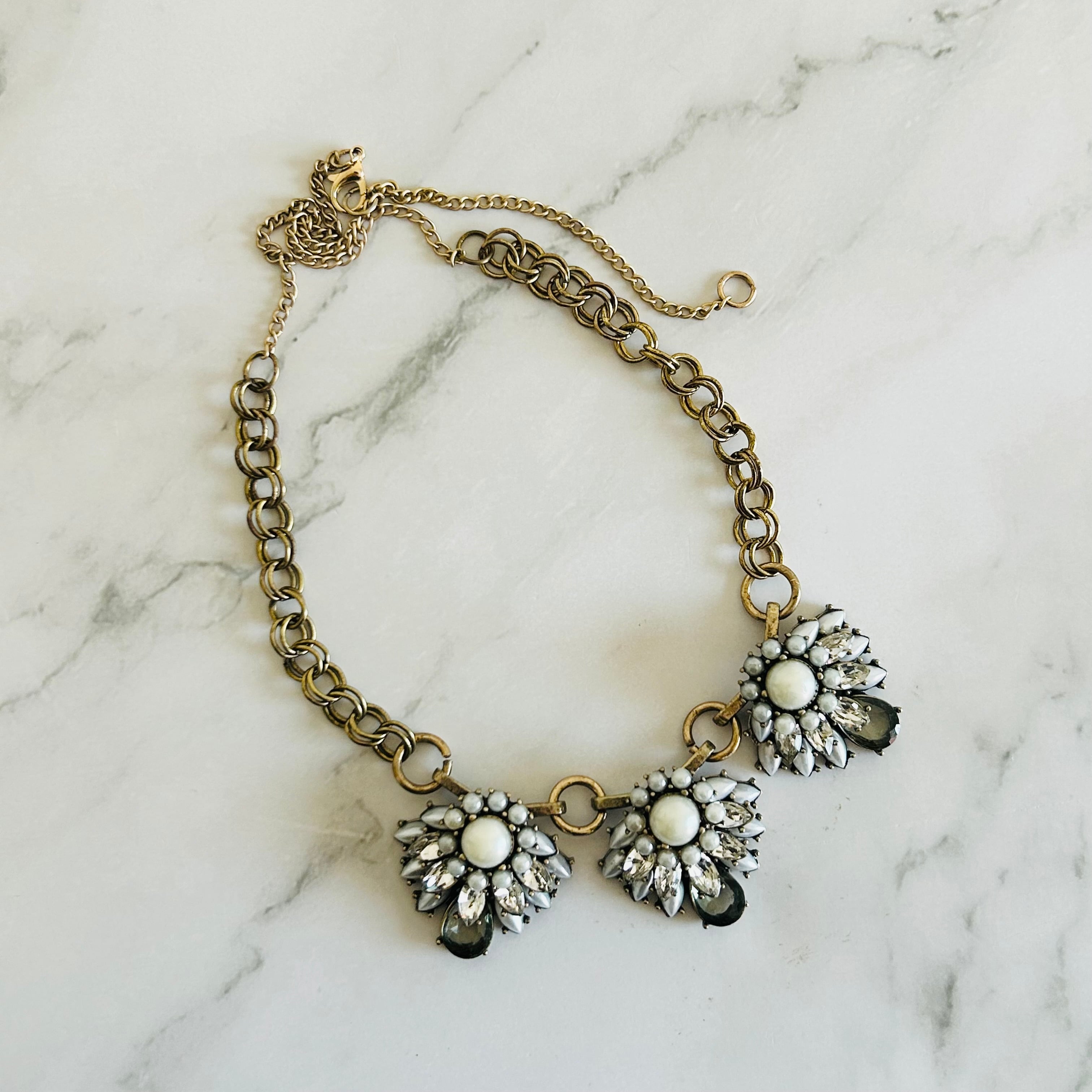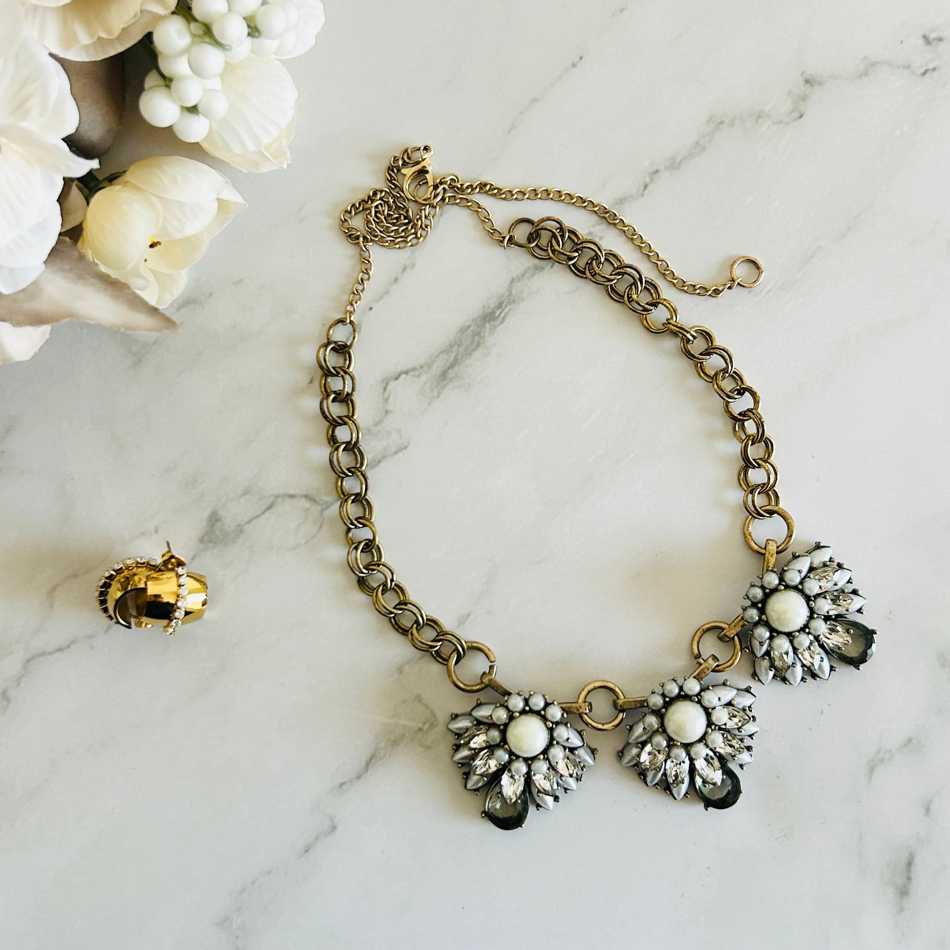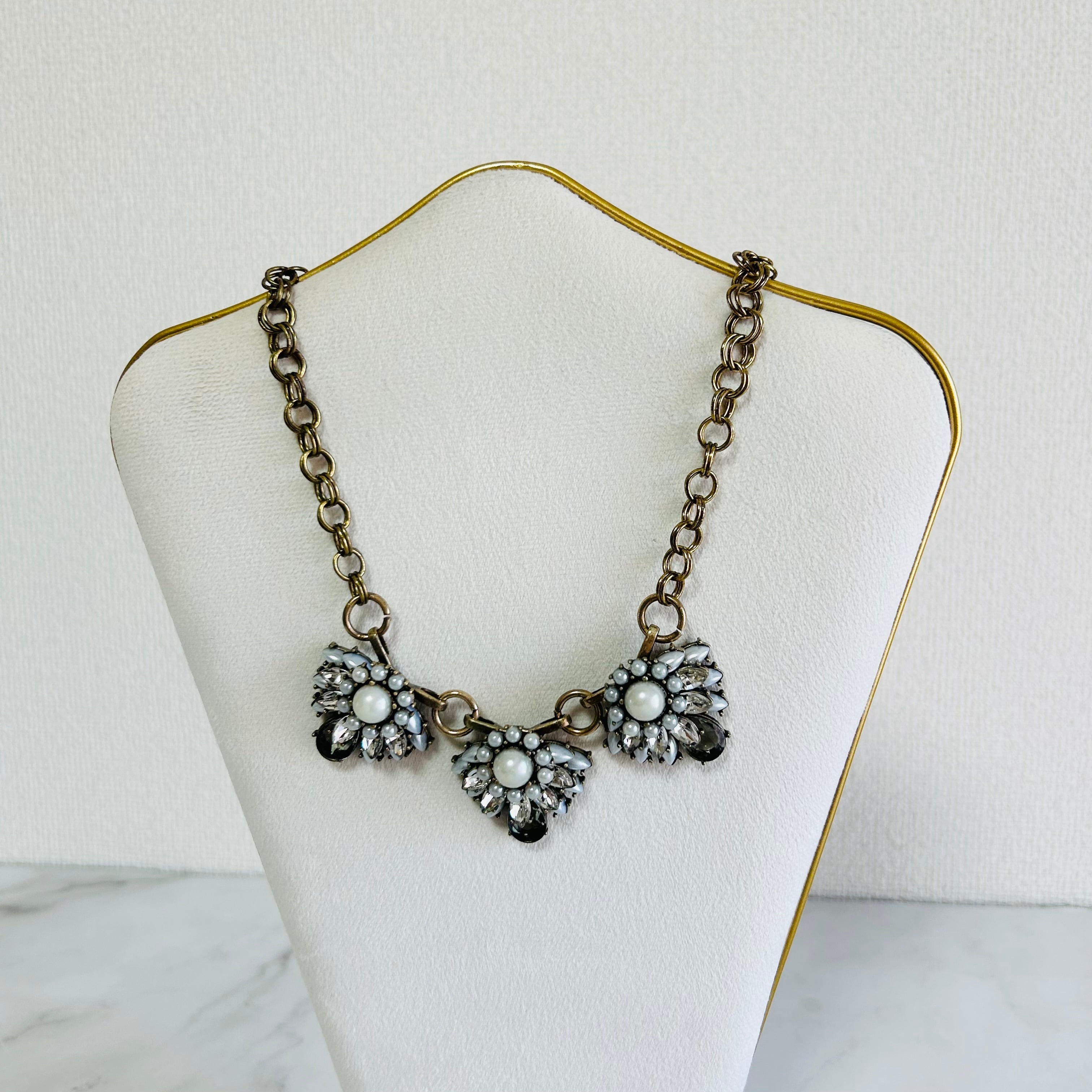 上品なパールと煌びやかなストーンが美しく調和した、ヴィンテージライクなフラワーモチーフが魅力的です。