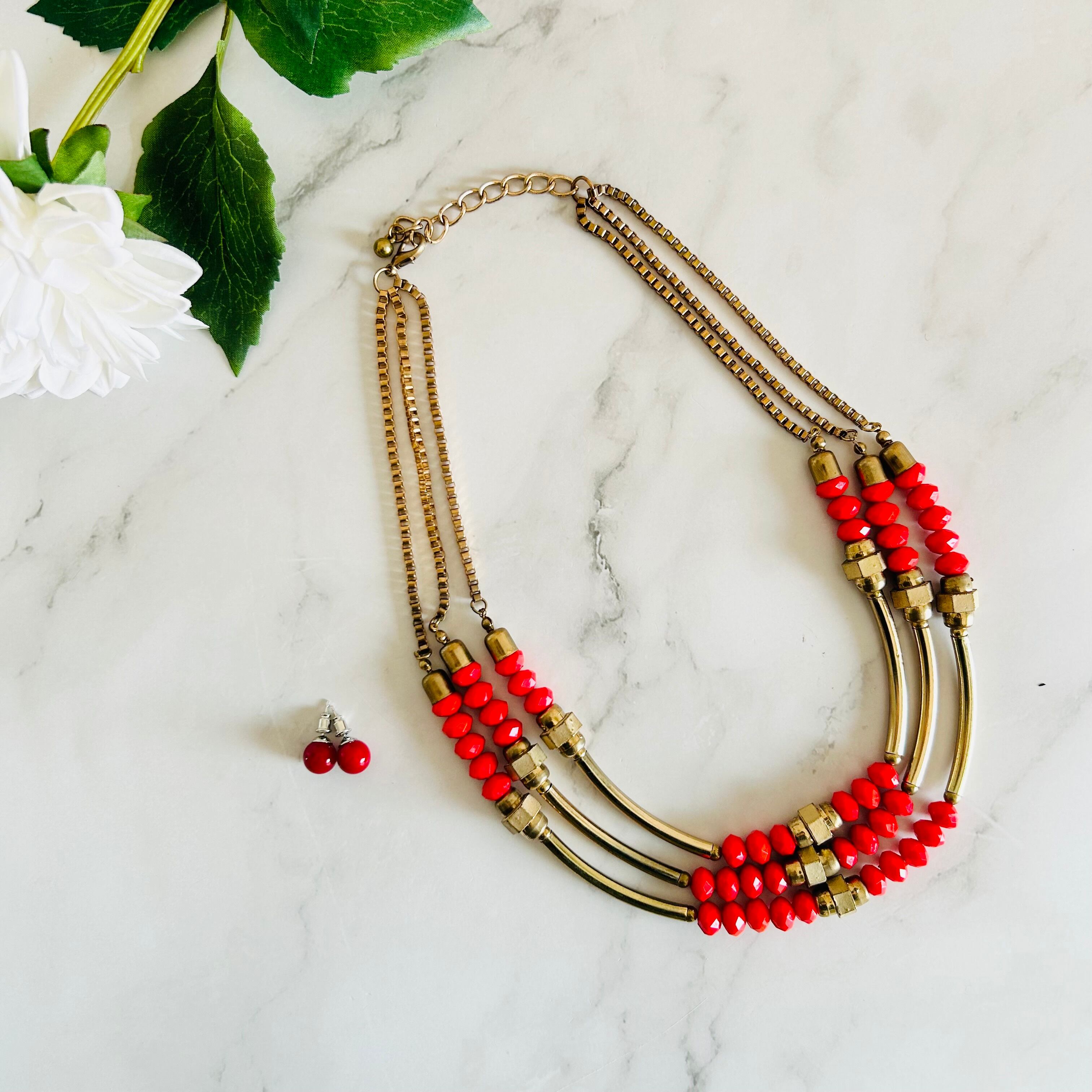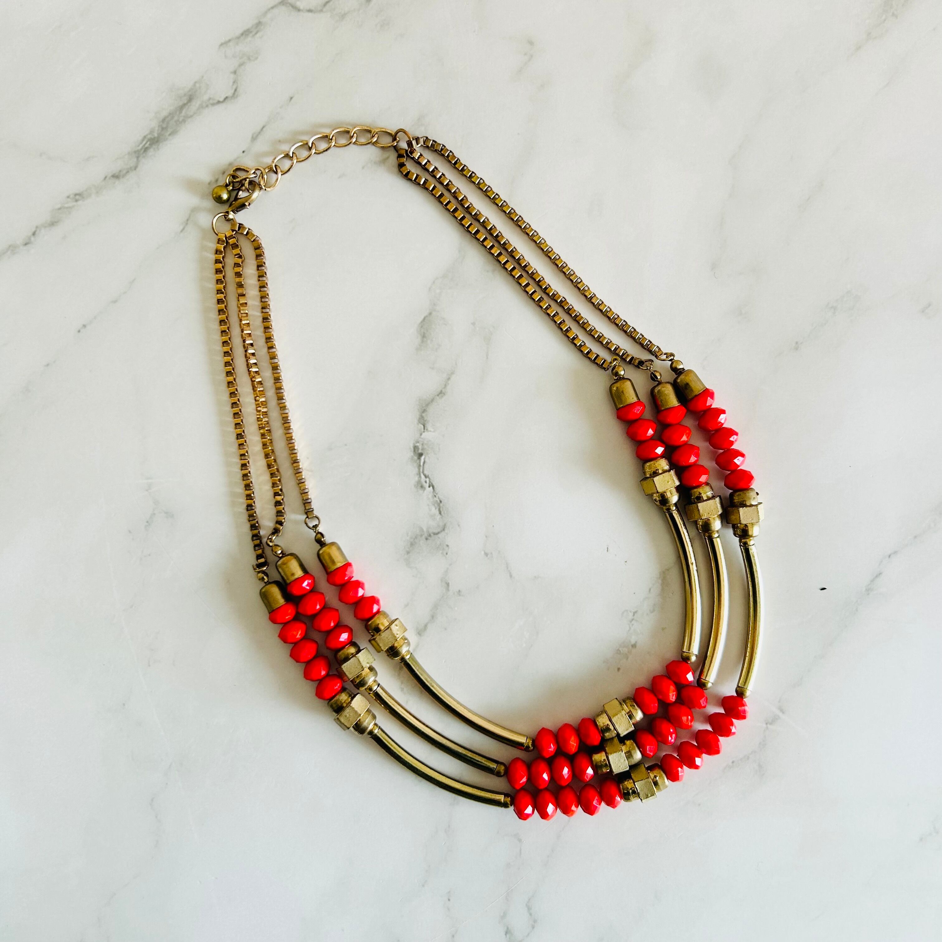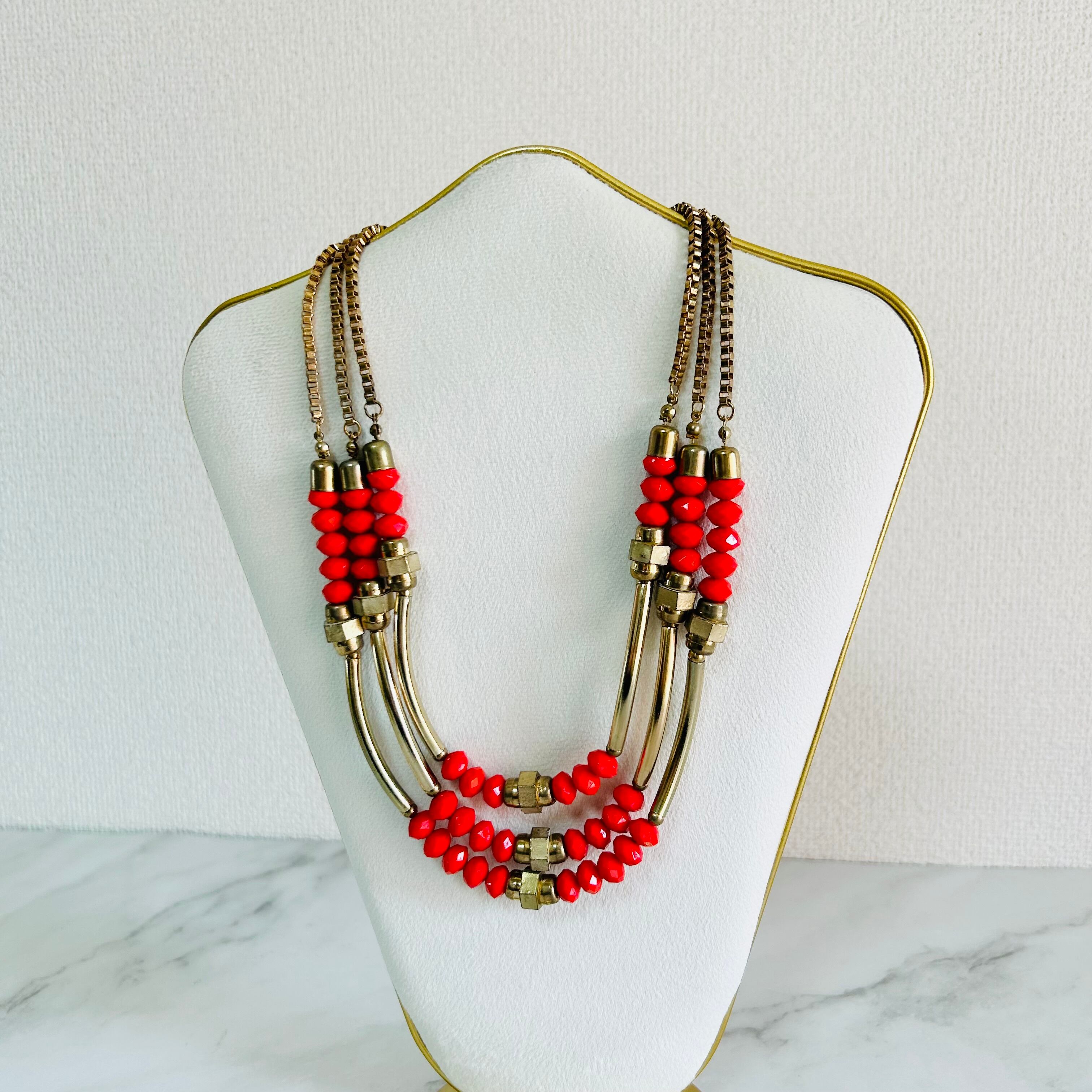 鮮やかなオレンジビーズとアンティークゴールドの組み合わせがとても印象的で、エネルギーを感じさせつつも上品にまとまったデザインが魅力のネックレスです。