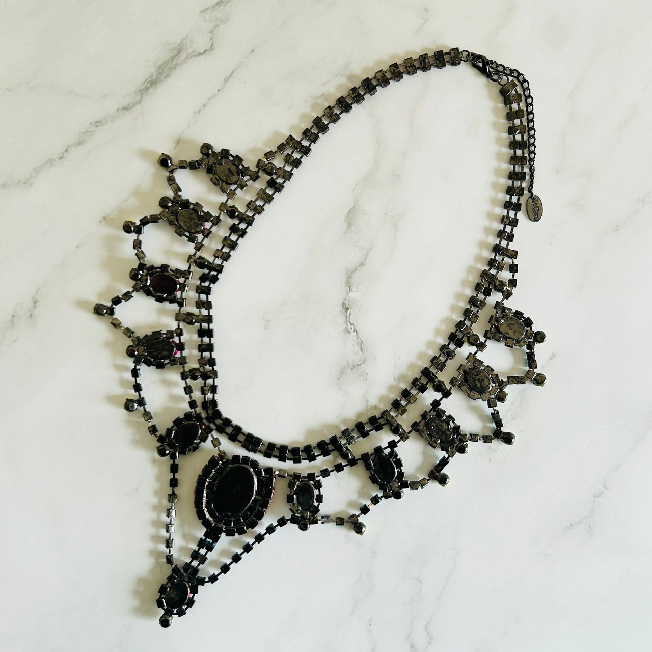 まるで宝石をちりばめたヴィンテージレースのように、繊細に編み上げられたクラシカルなデザインのネックレス。