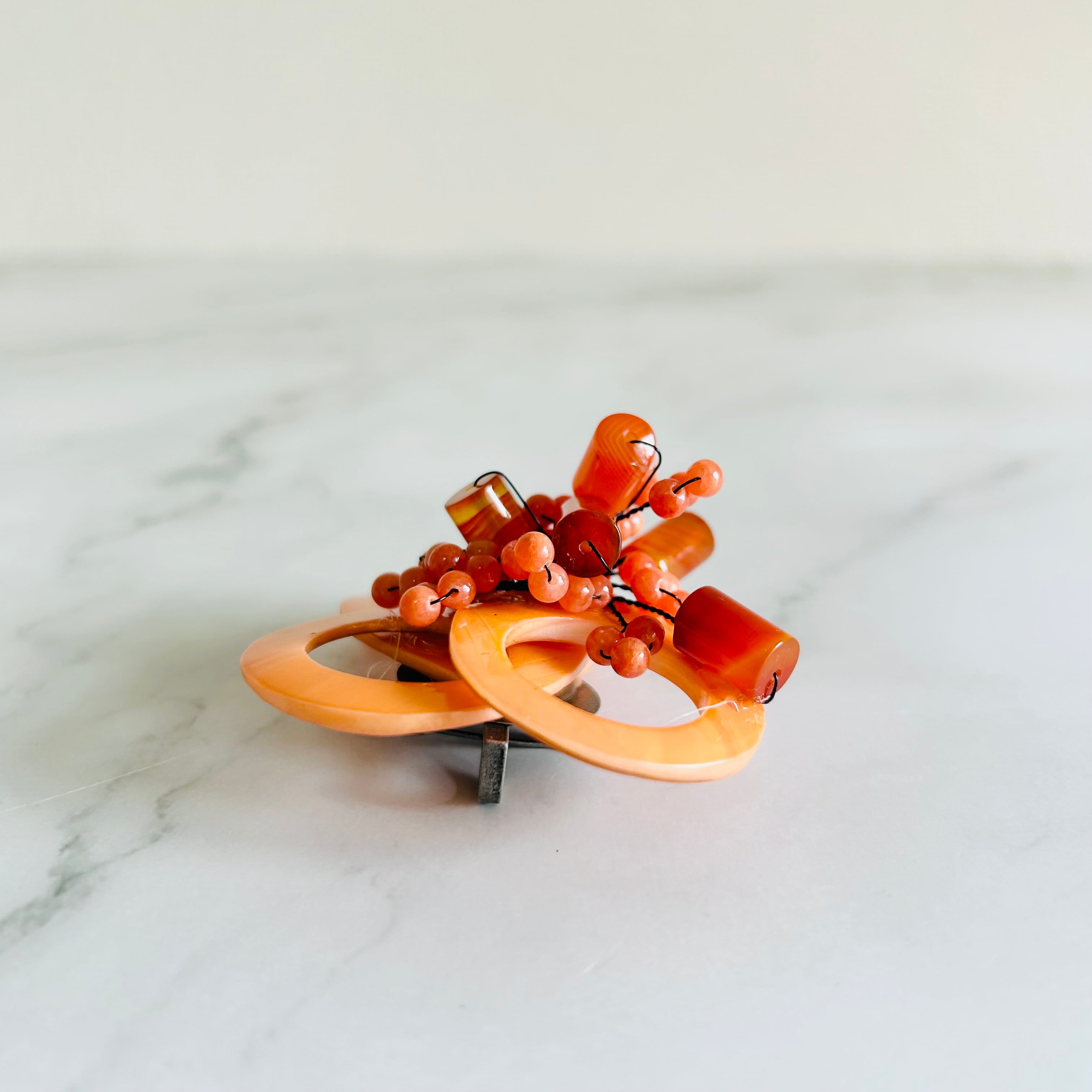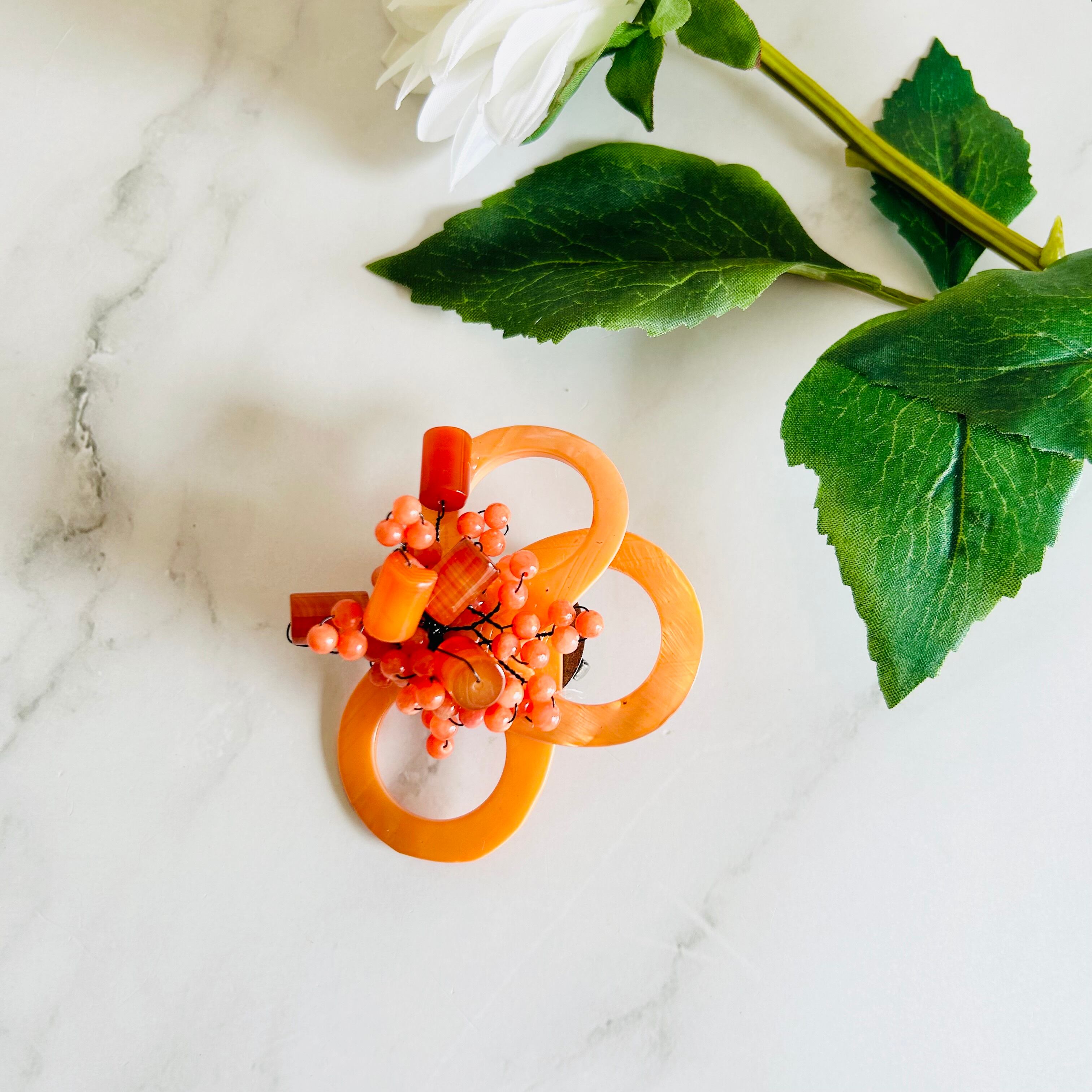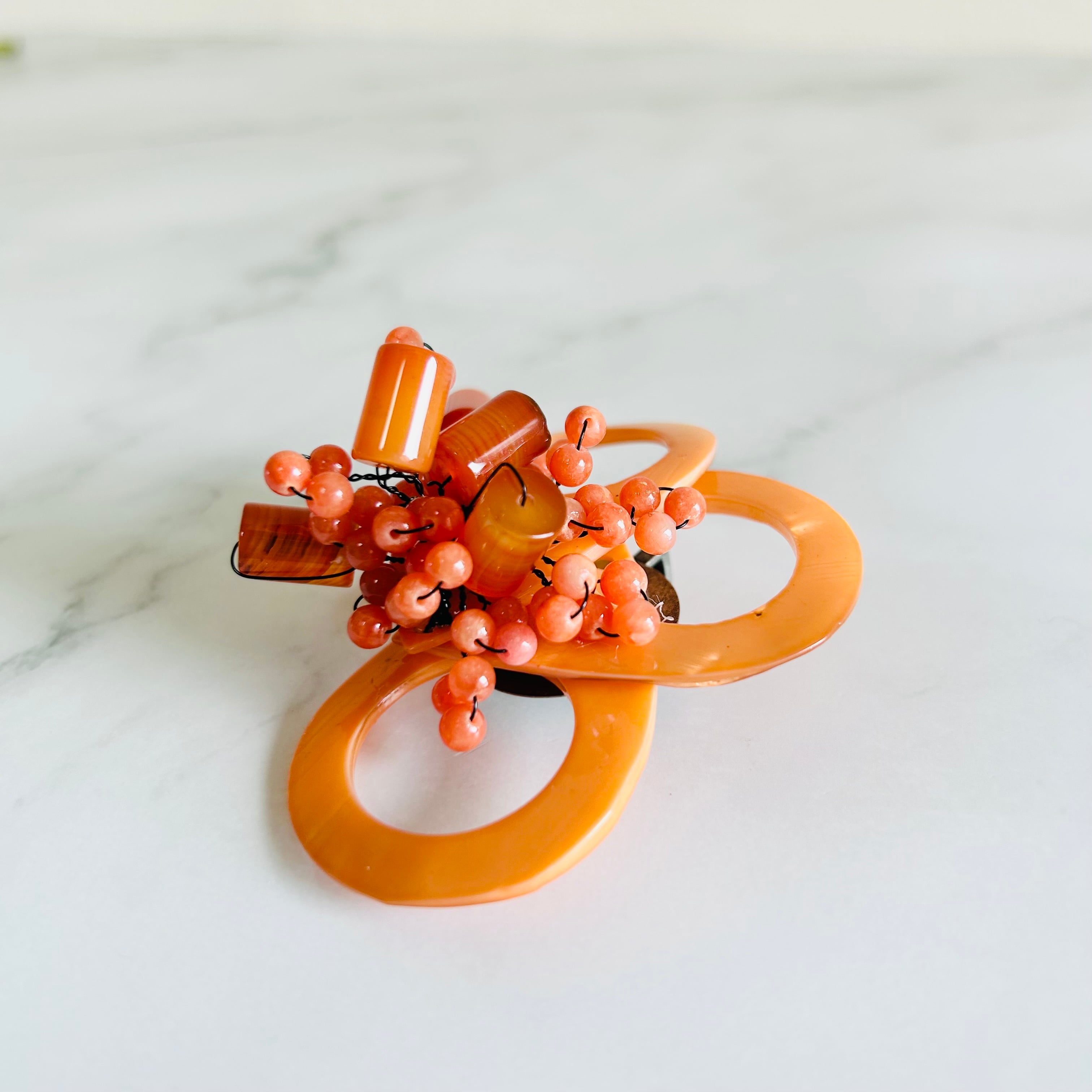 鮮やかなカラーのシェルと天然石の立体感のある組み合わせがとても印象的で、目を惹くデザインです。2way仕様なのも嬉しいポイントです。