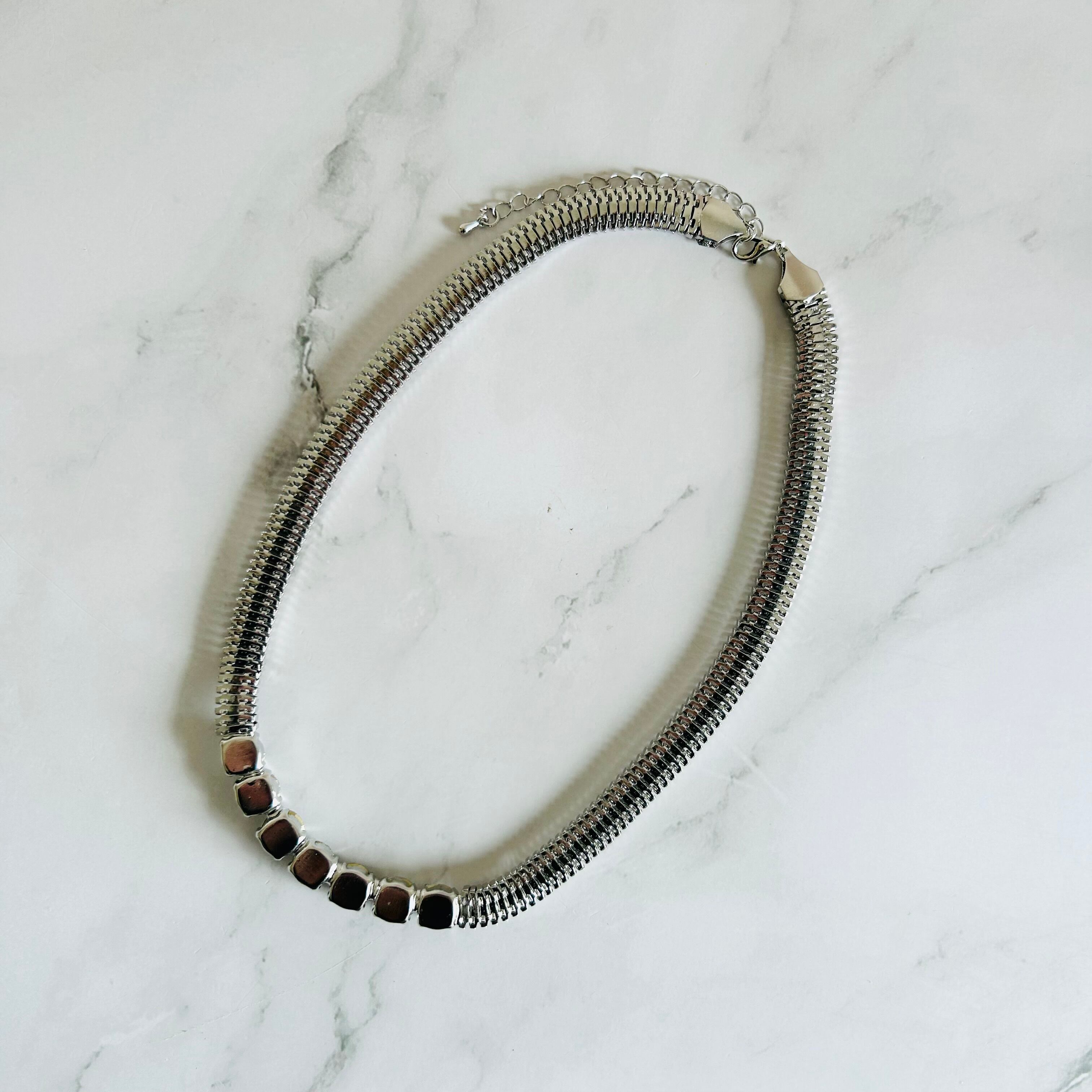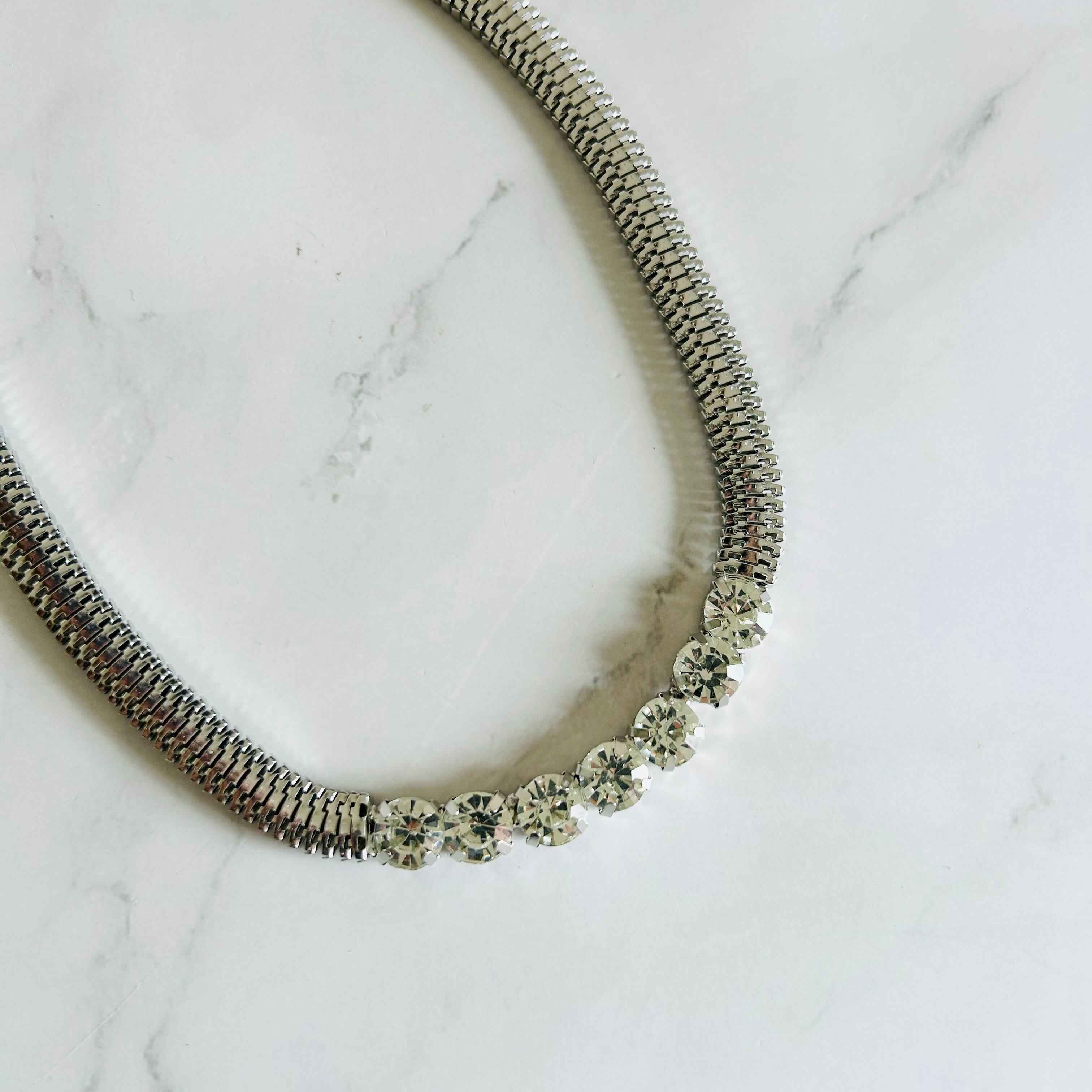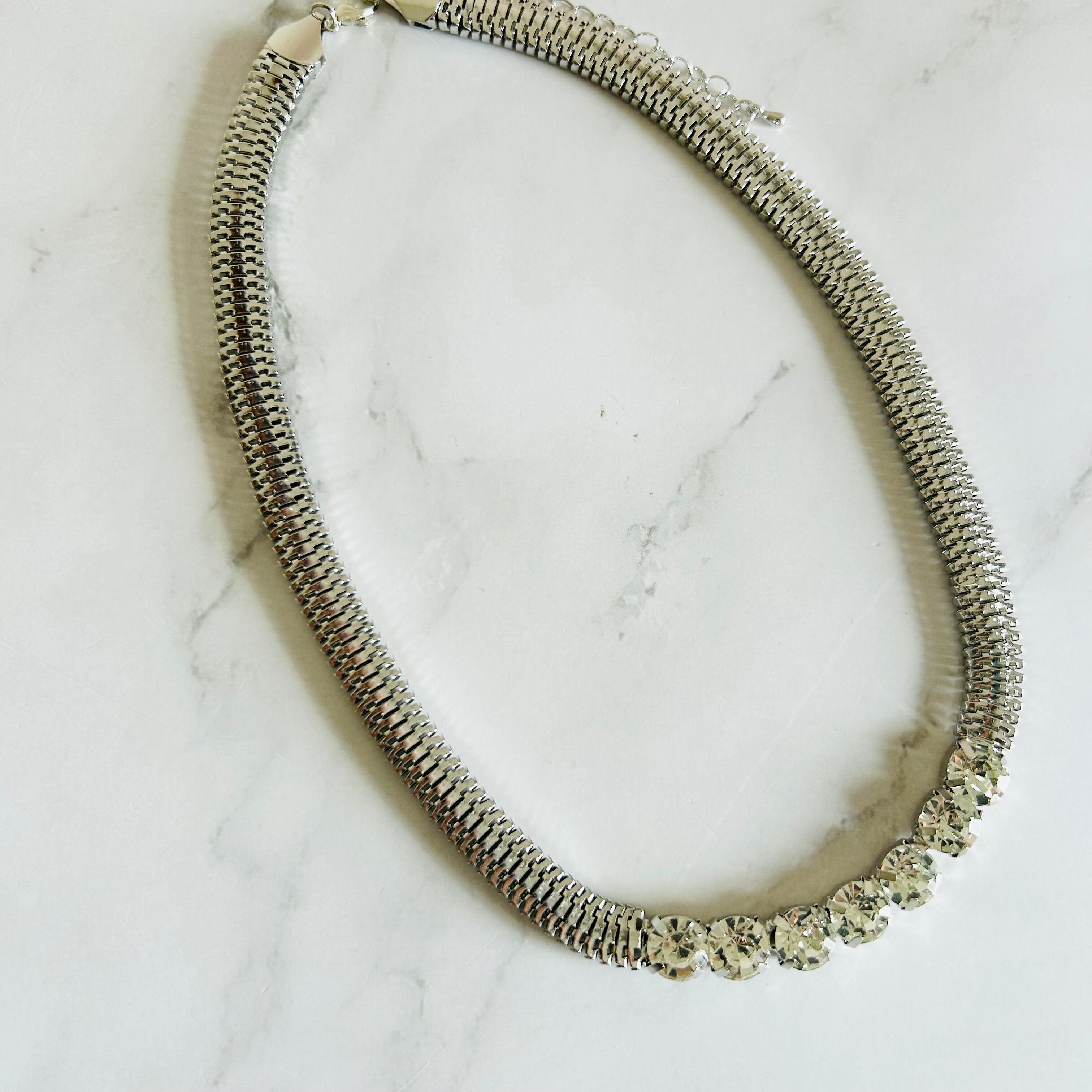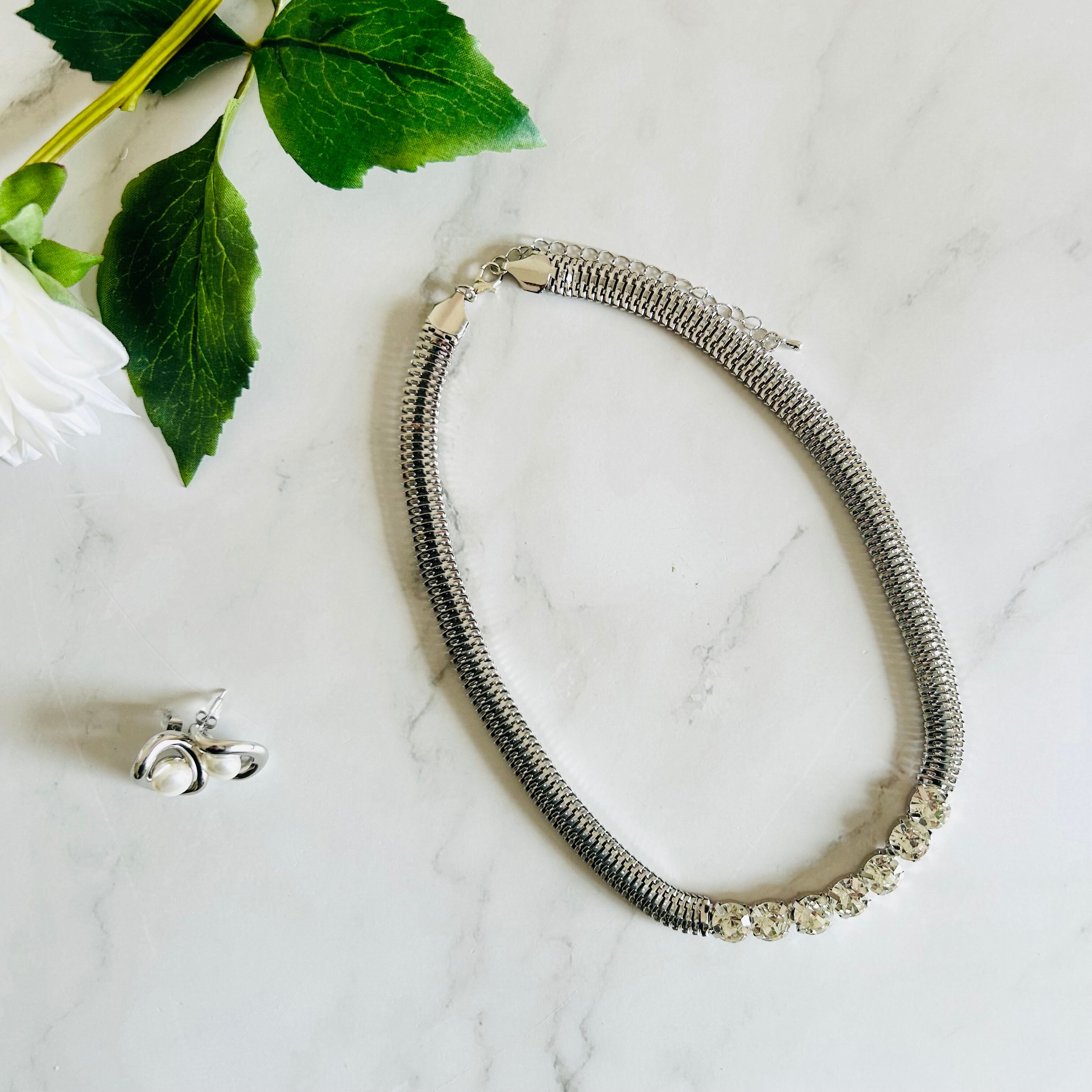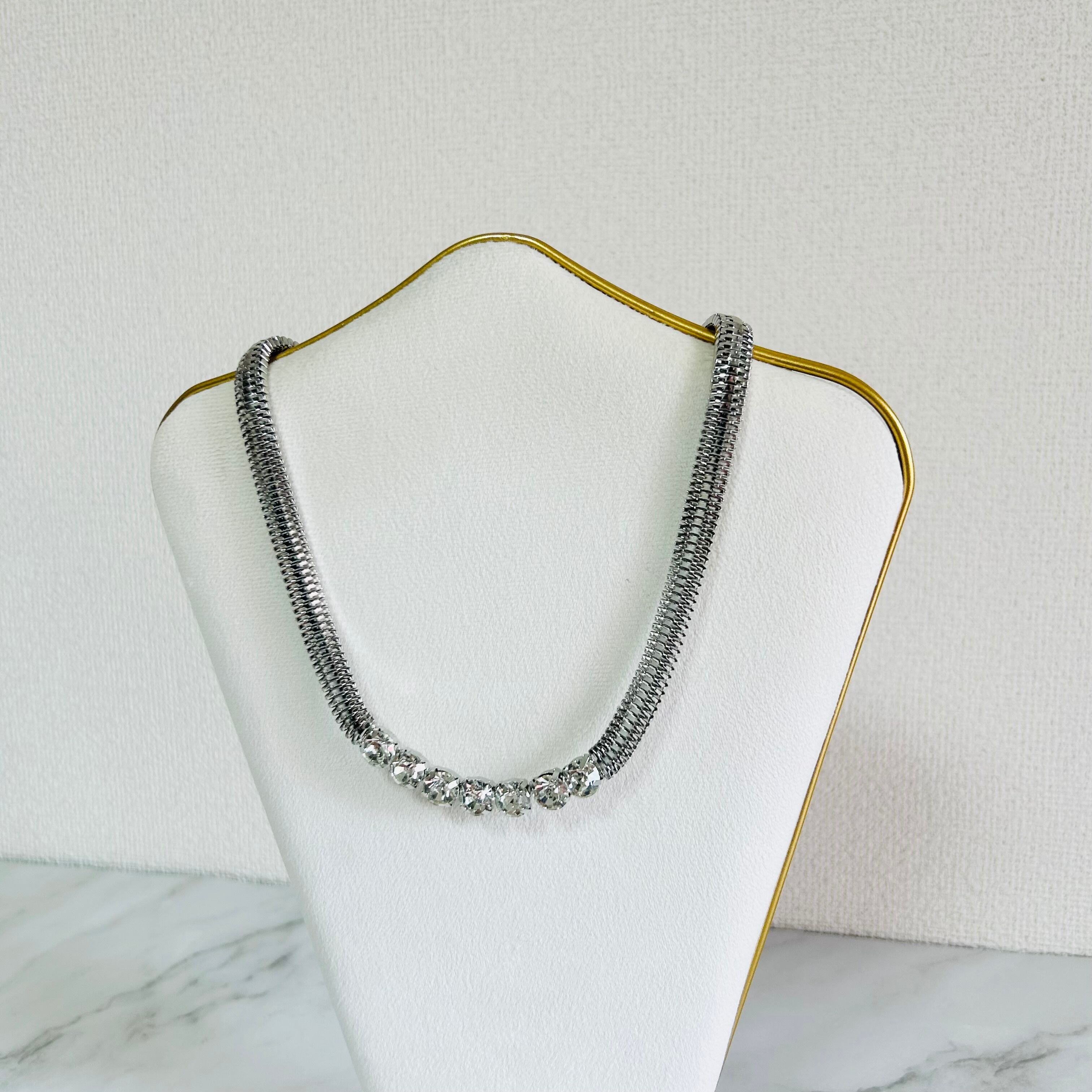 シャープなシルバーにクリアな輝きが映える、大人のための洗練ネックレスです☆