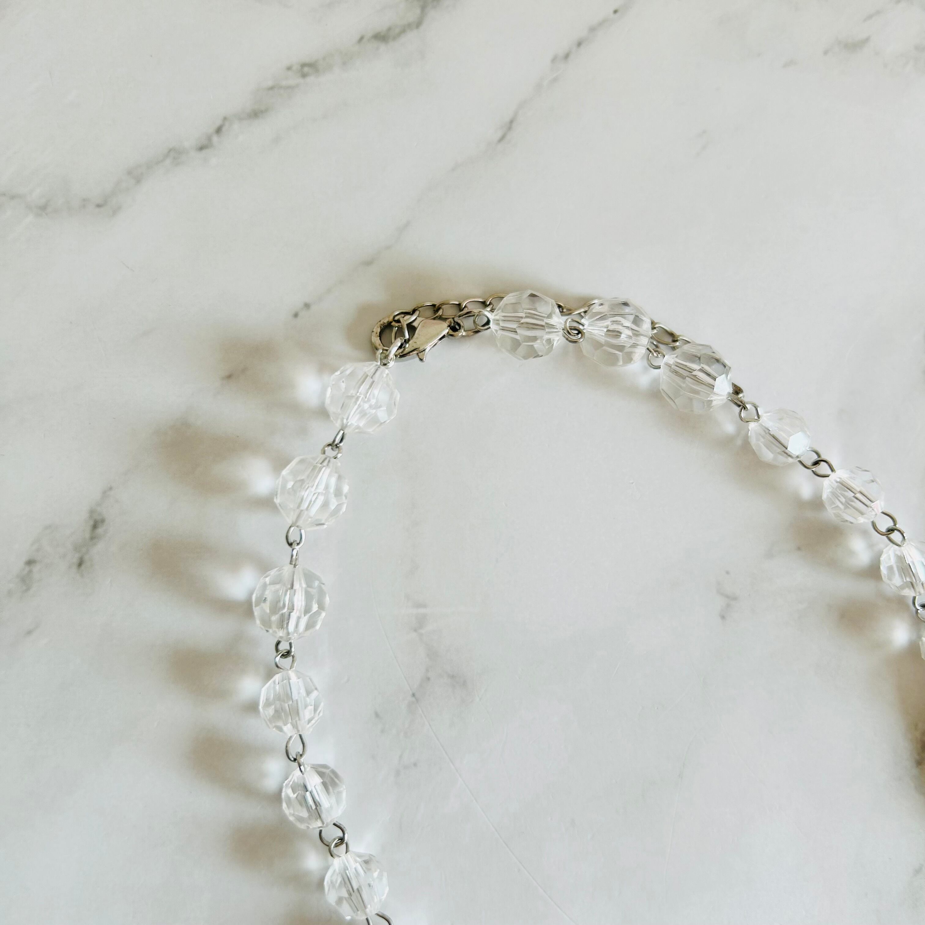 透明感のあるビーズが、ネックレス全体に軽やかさと輝きを与え、目を惹く存在感を放ちます☆