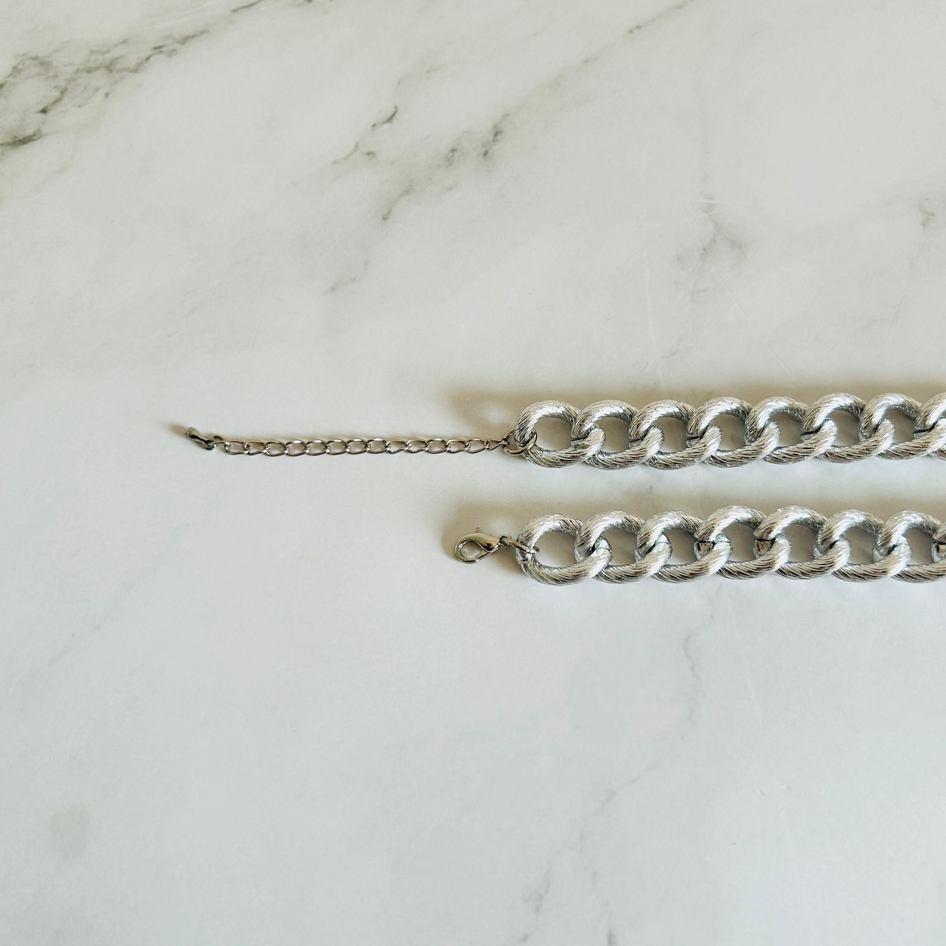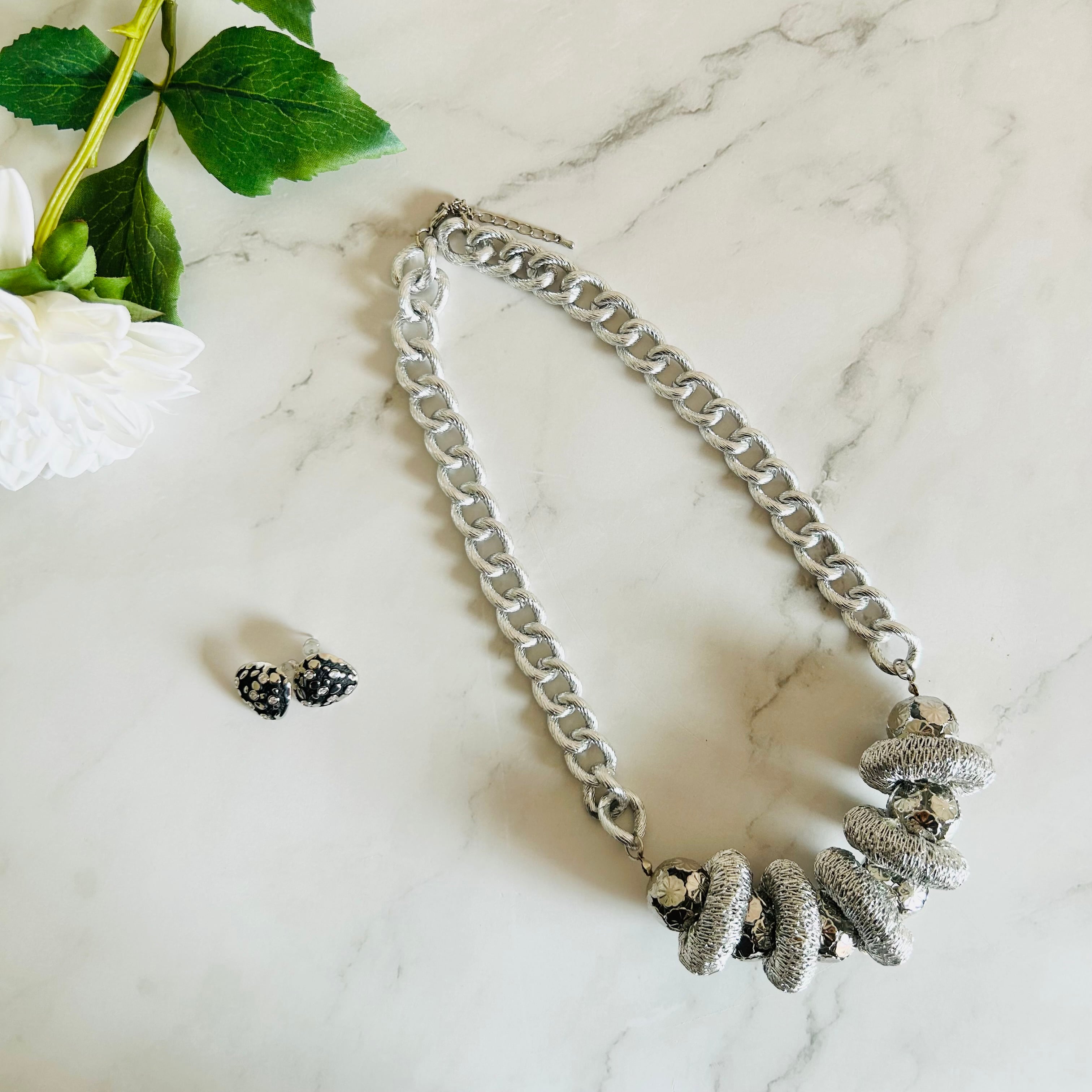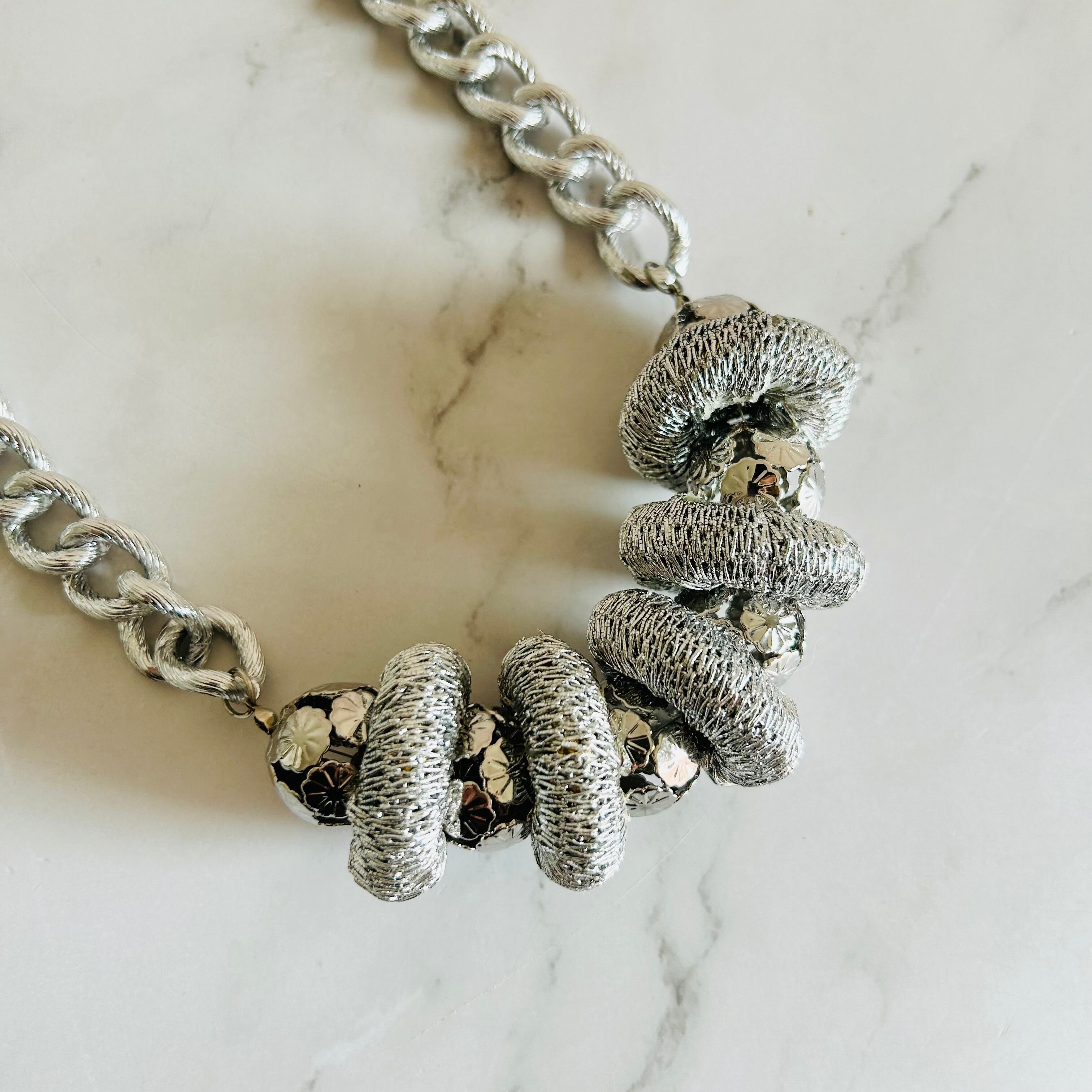 シルバーのチャンキーチェーンとユニークなパーツが組み合わさったユニークで他にはないデザインが魅力のネックレスです。