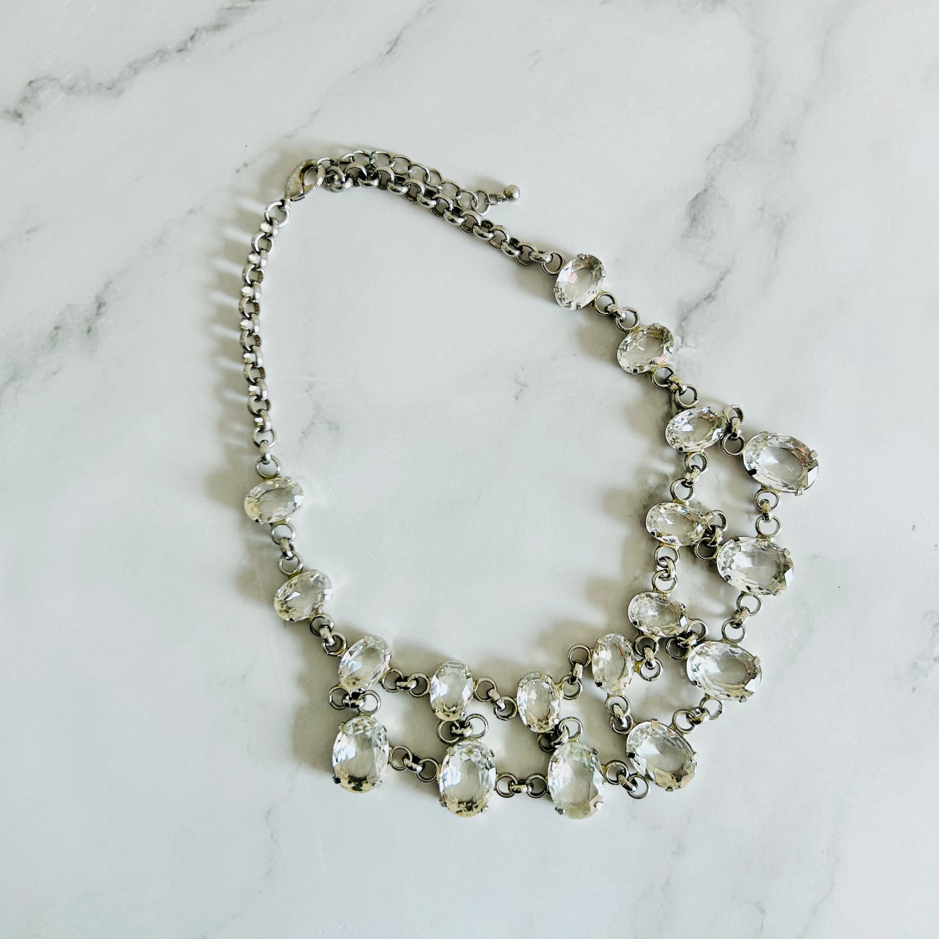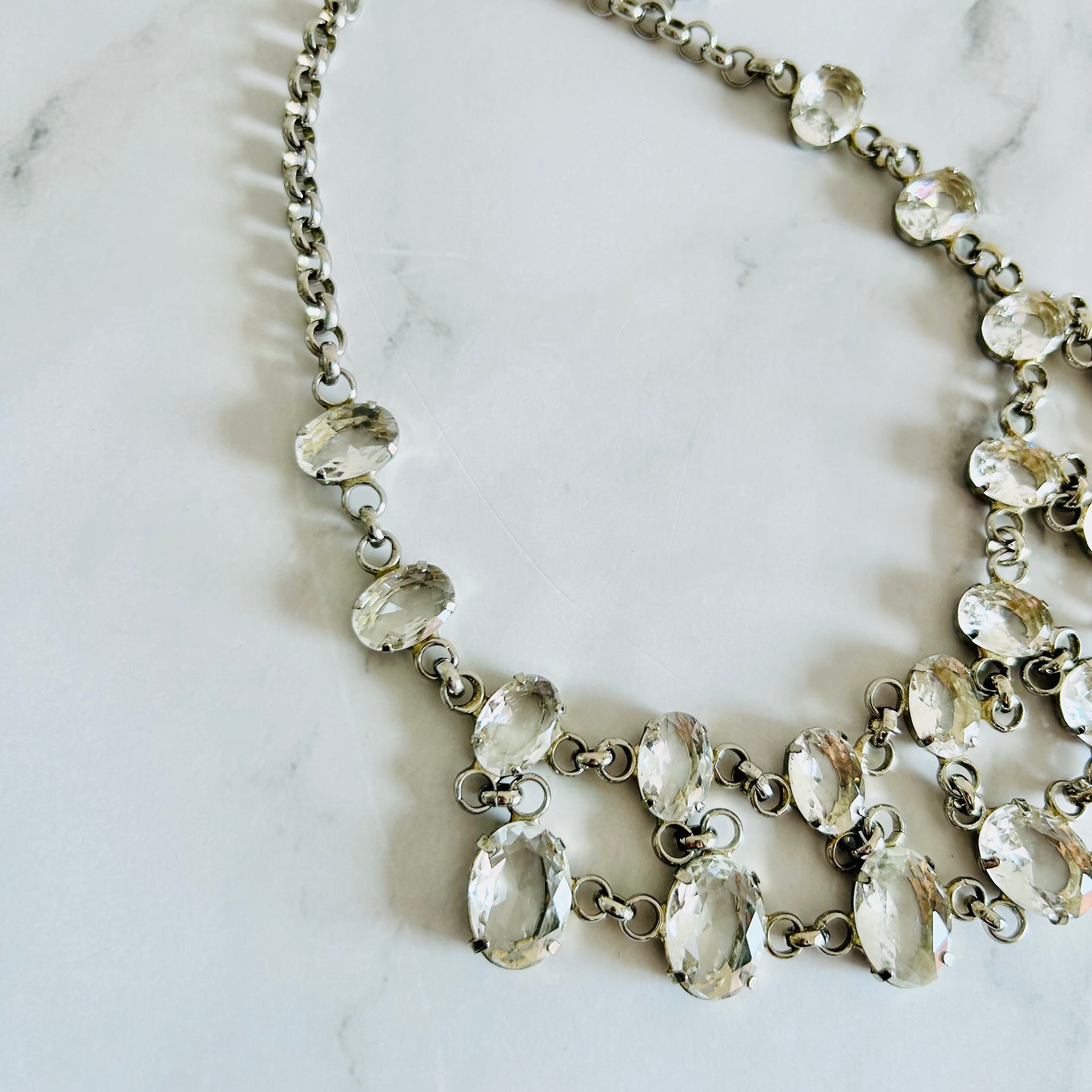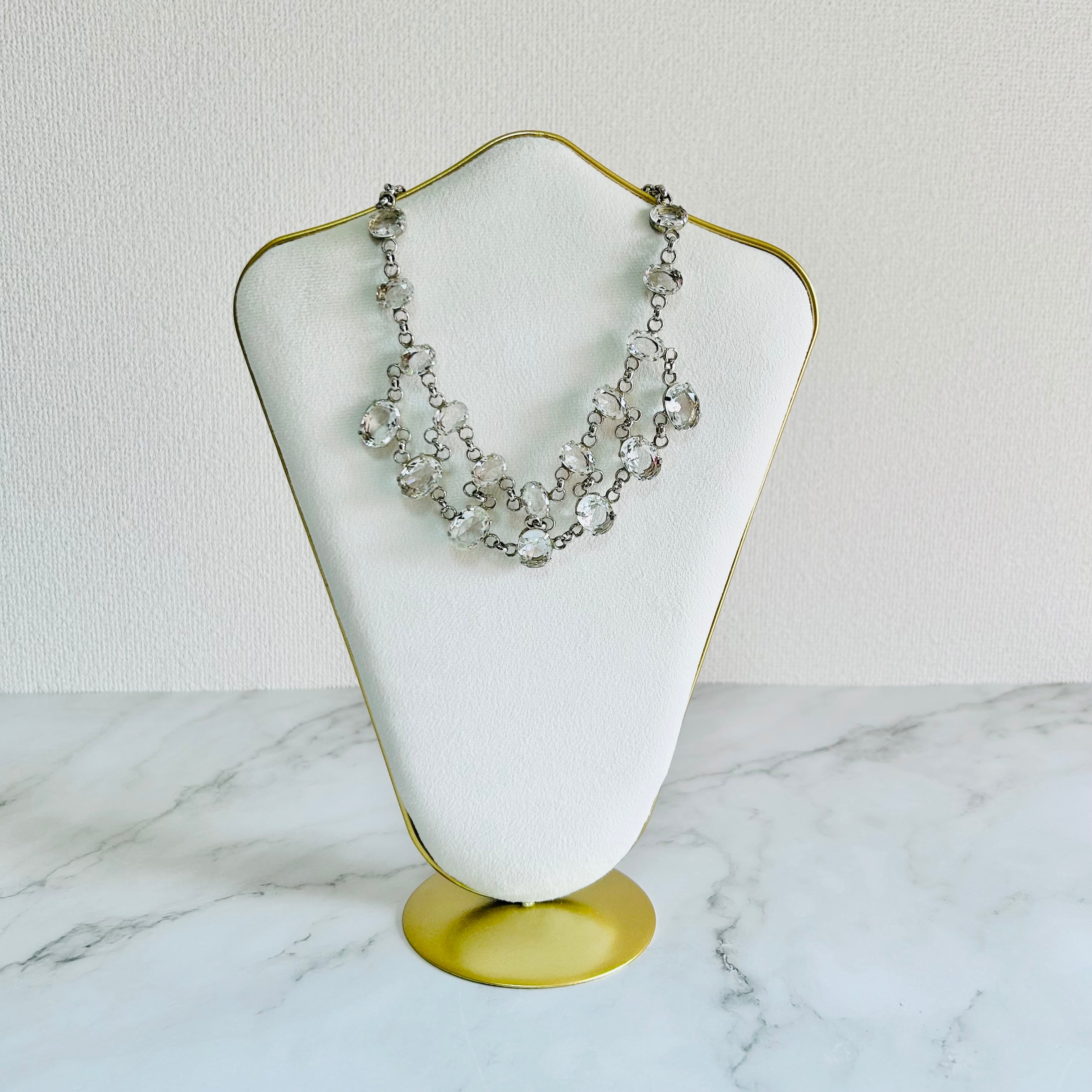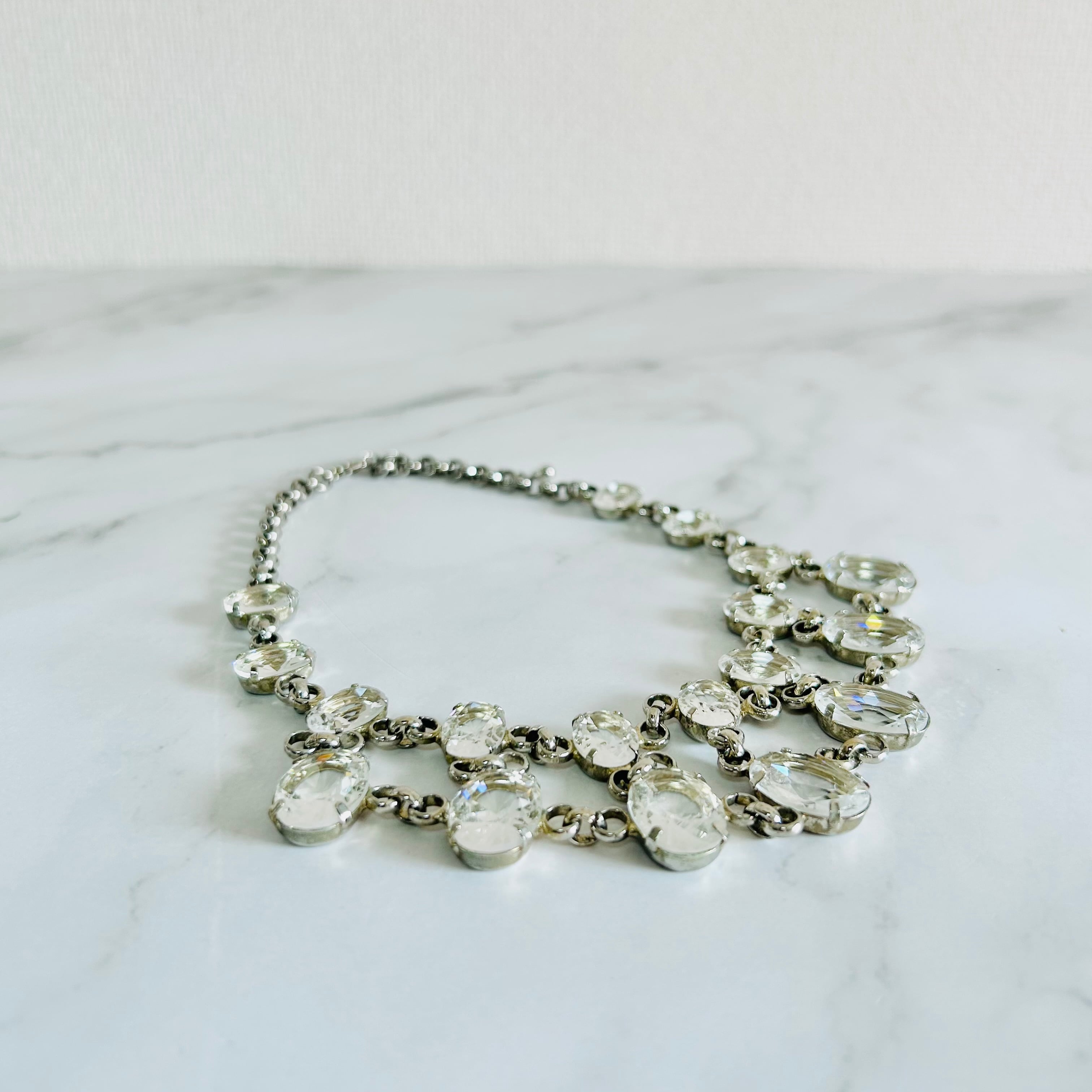 美しいクリアなクリスタルストーンが、シルバーカラーのチェーンに一つ一つ繊細に配置されたネックレスです。