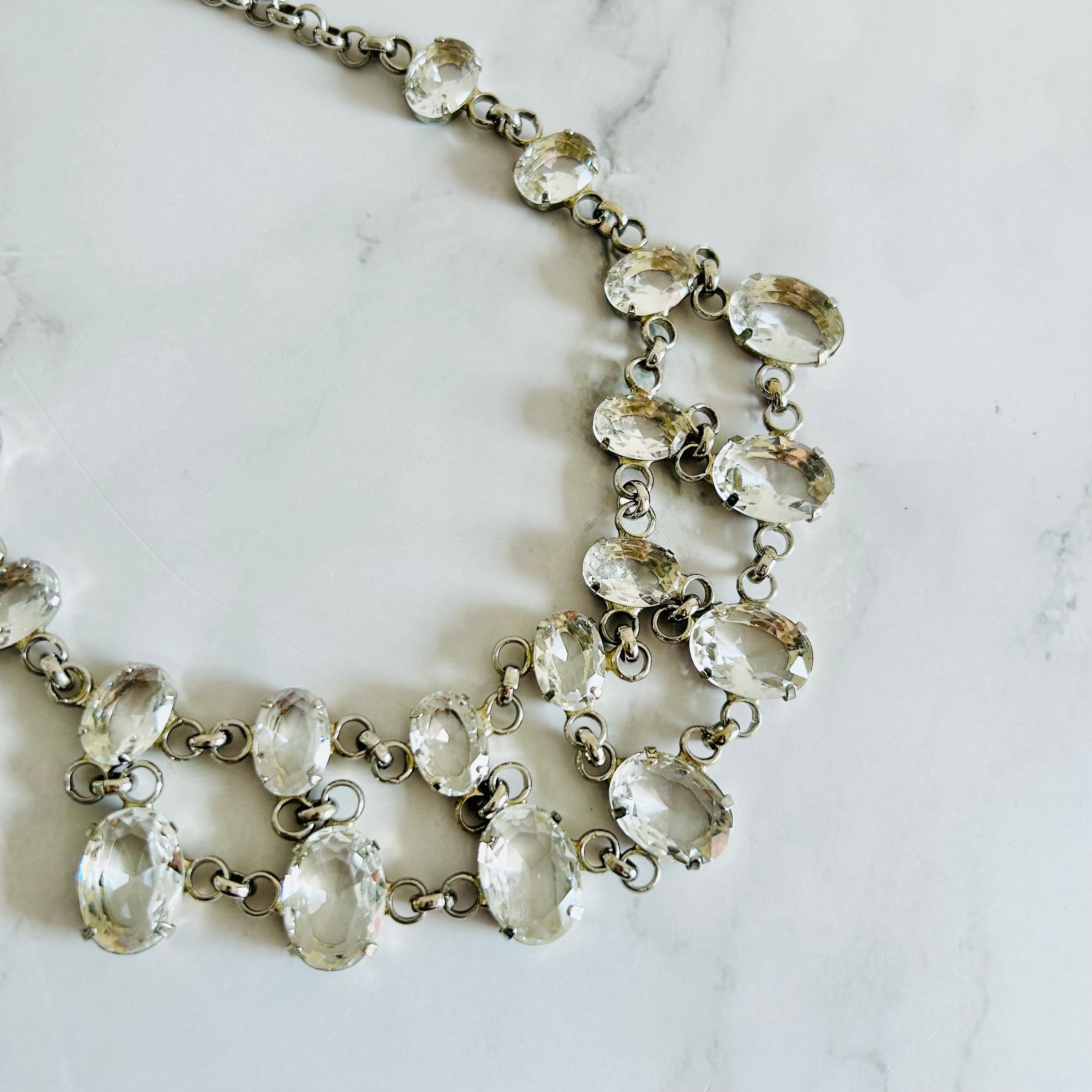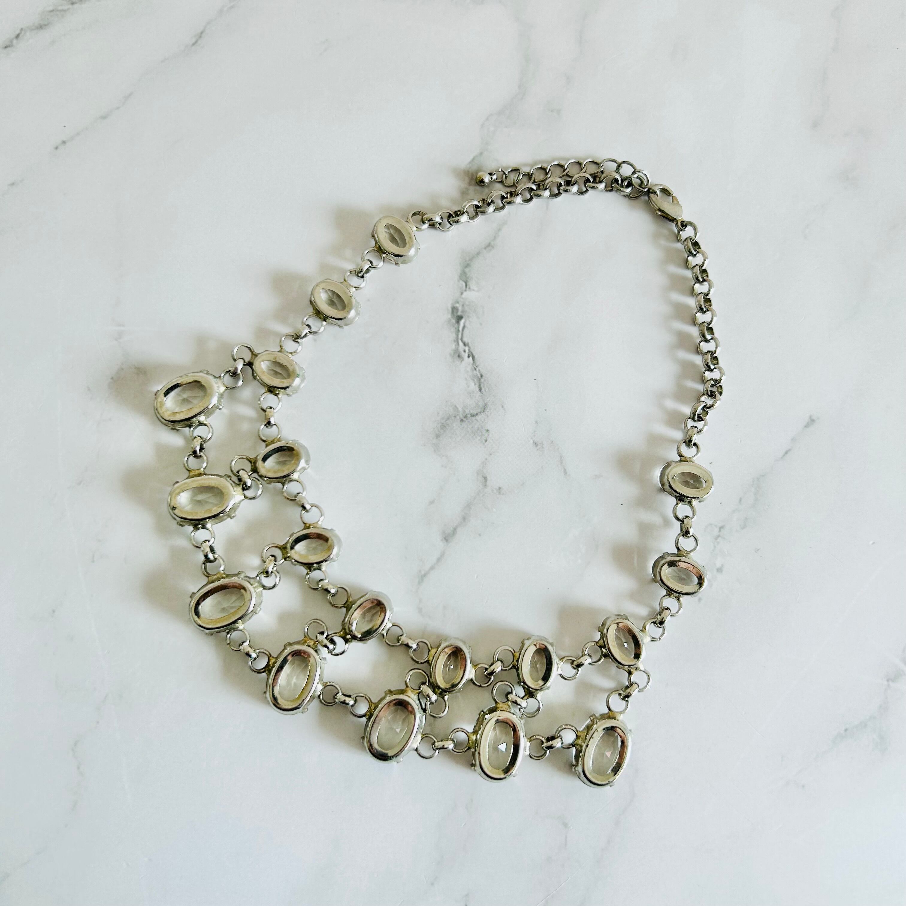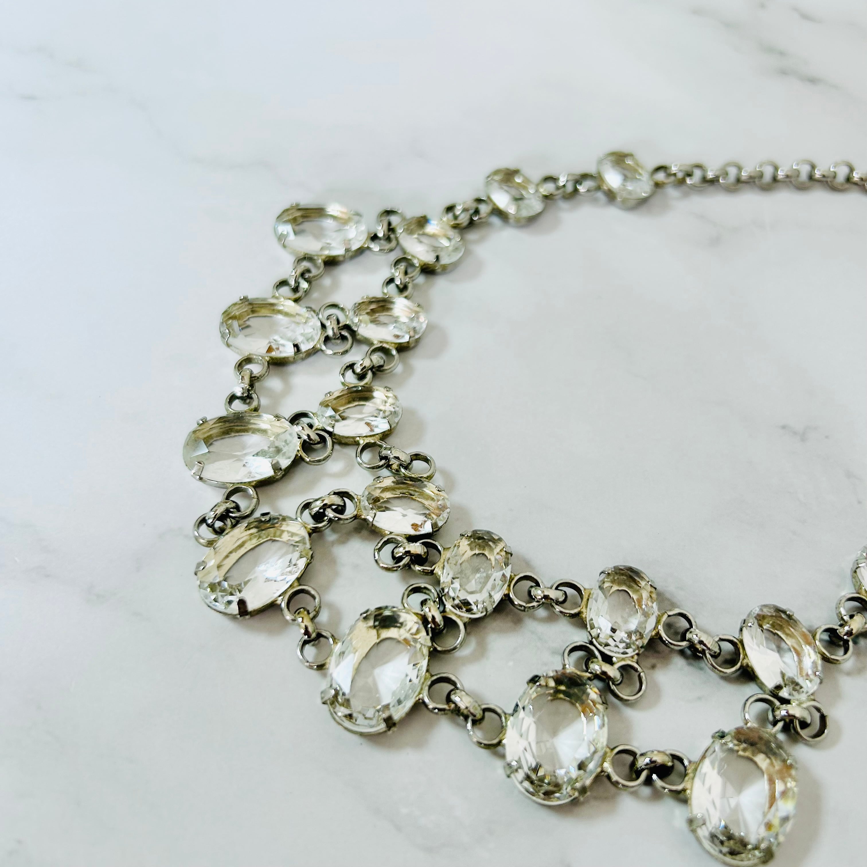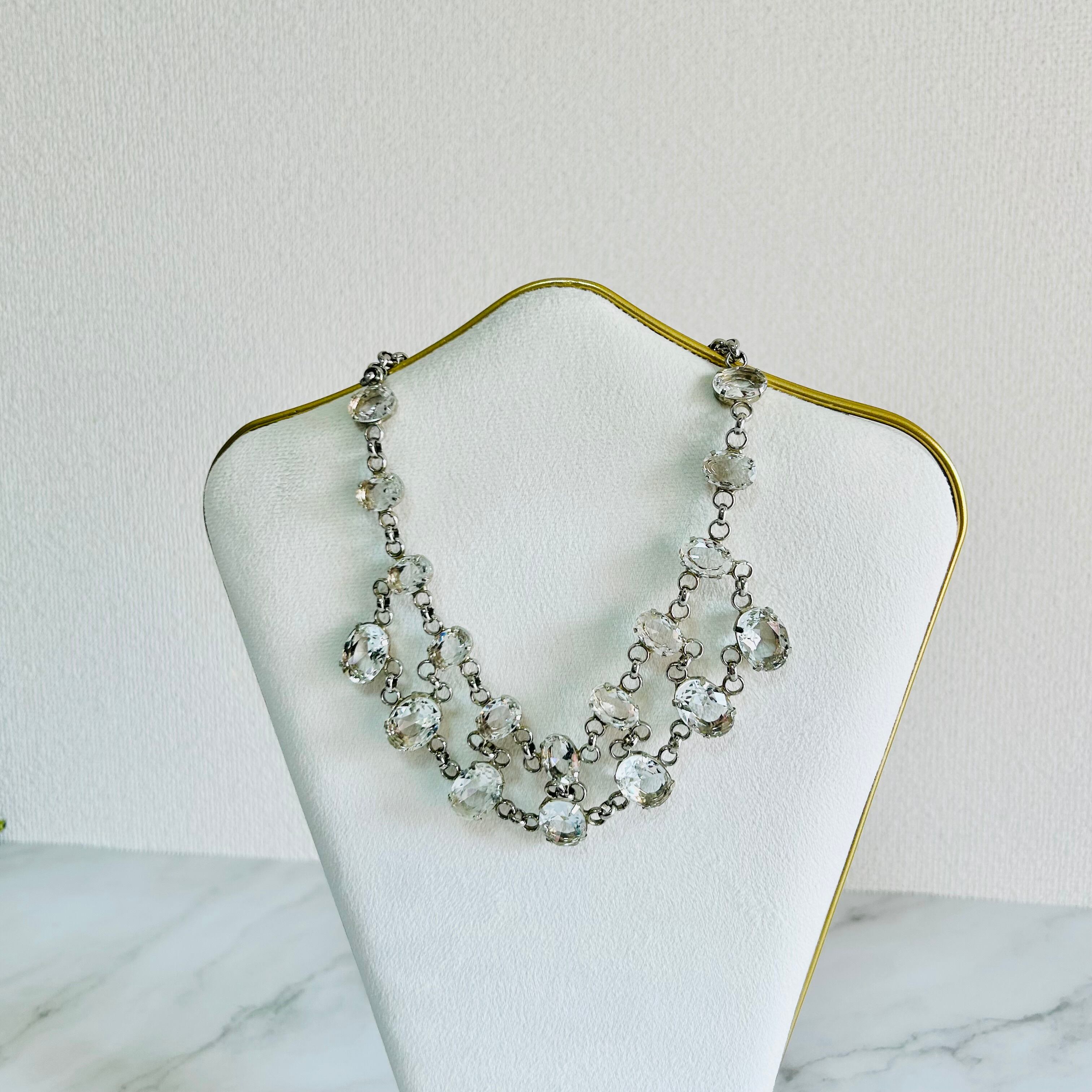 美しいクリアなクリスタルストーンが、シルバーカラーのチェーンに一つ一つ繊細に配置されたネックレスです。