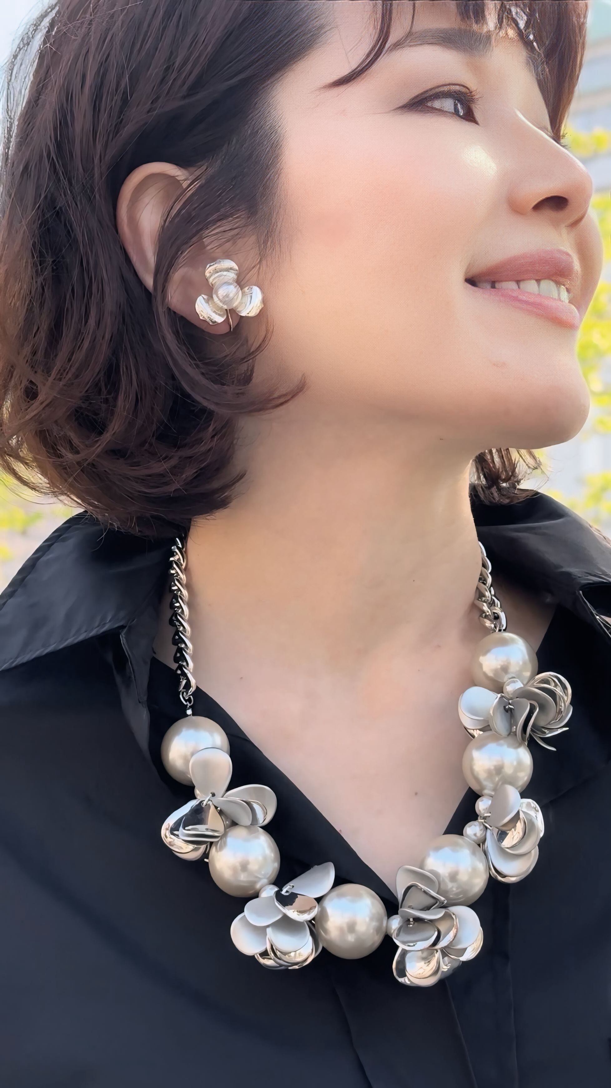 ころんとしたパールと花びらの組み合わせが、どこかクラシカルで、女性らしさを引き立ててくれます♡