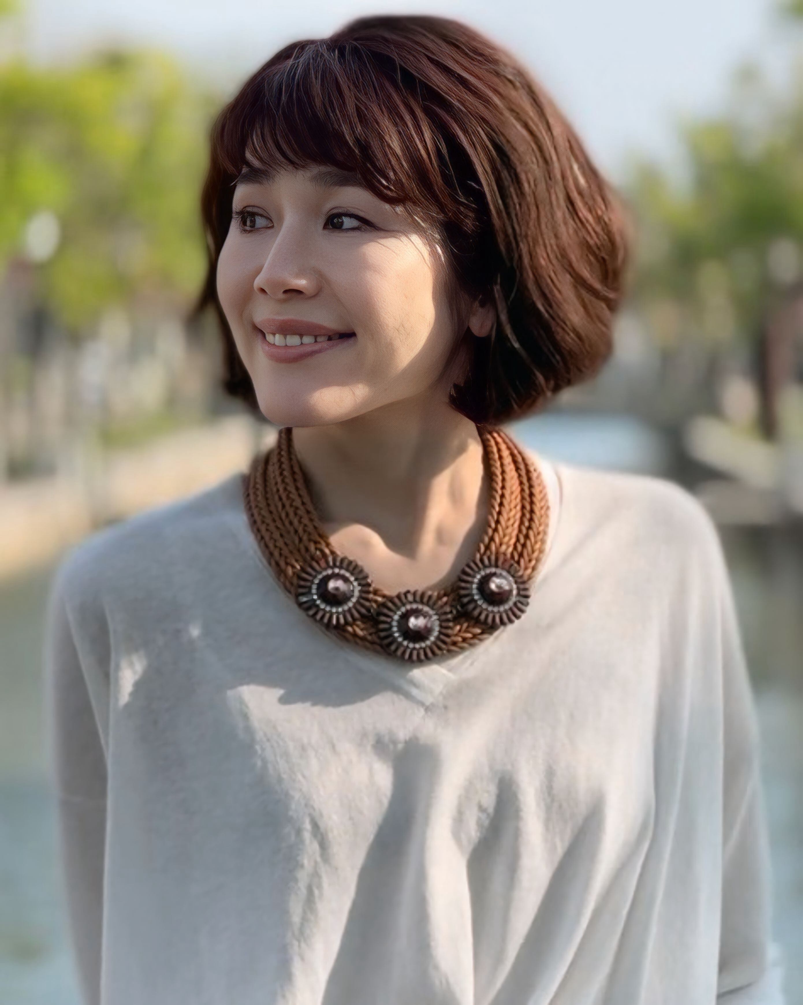 温かみのあるナチュラル素材と、輝きを放つアクセントが絶妙にマッチしたデザインです。
