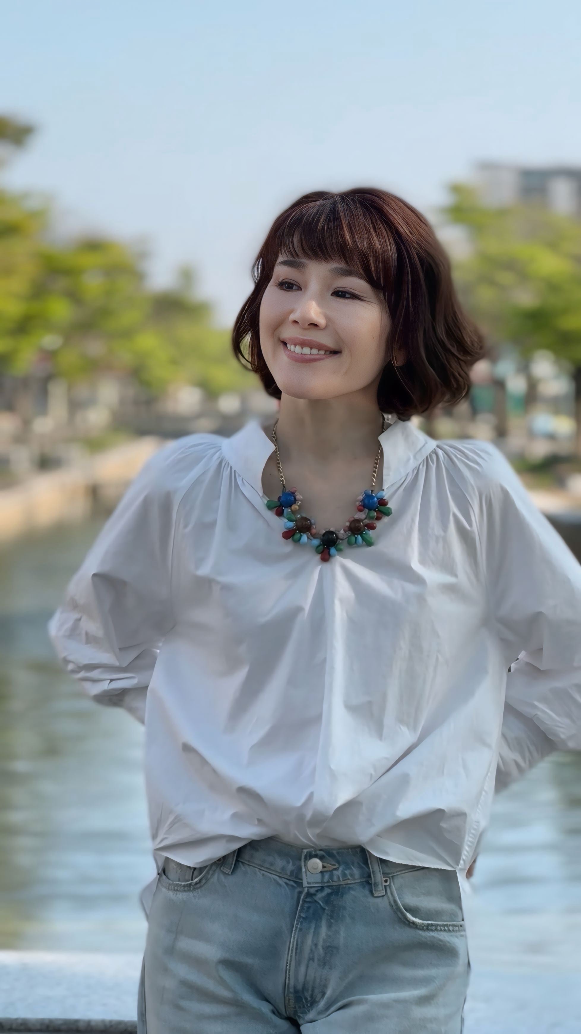 大人のお顔まわりをパッと明るくしてくれる配色で、身につけるだけで元気がもらえるような存在感です♪