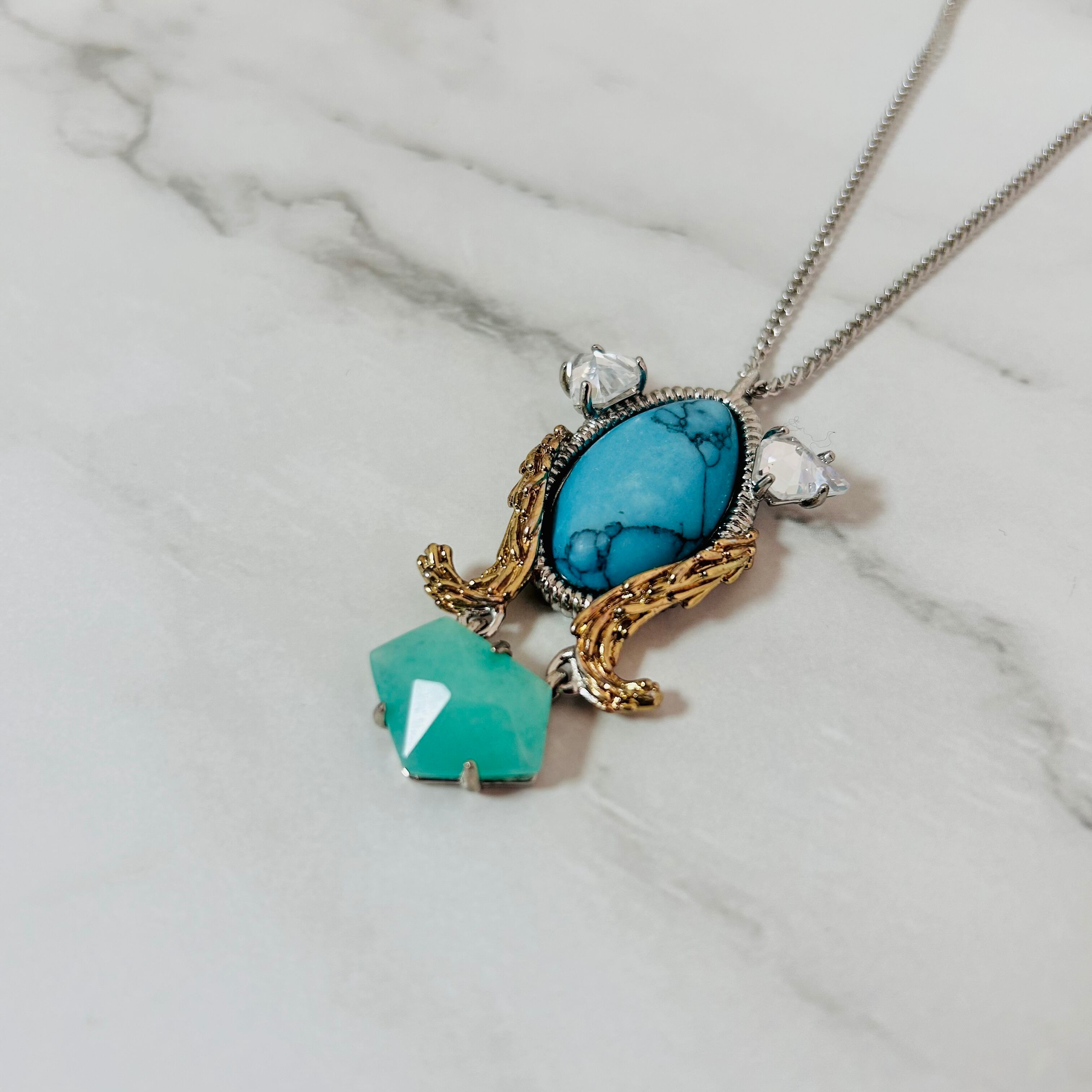 鮮やかなブルーが印象的なこのネックレスは、まるで夏の海を閉じ込めたような清涼感あふれる仕上がりです☆