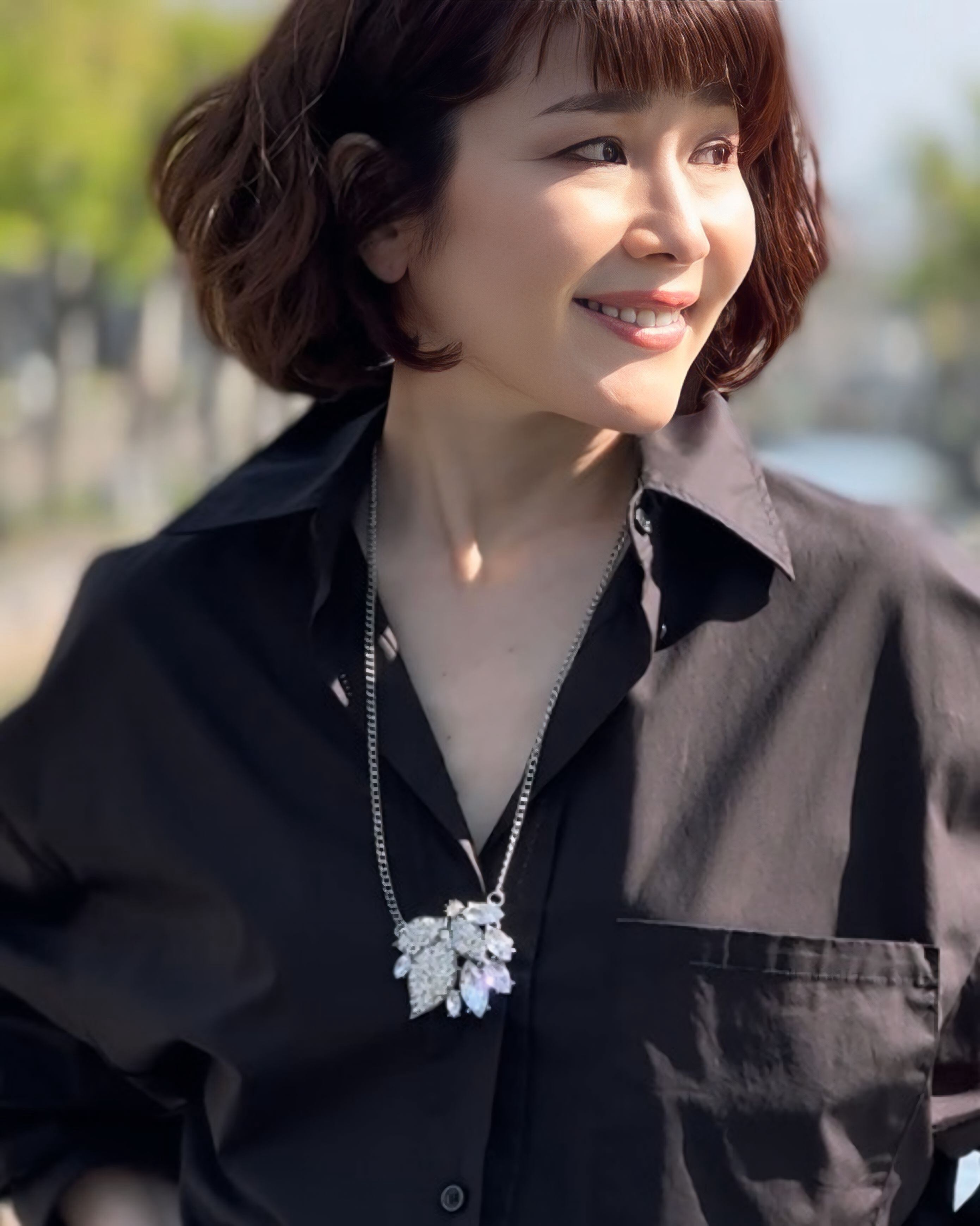 シンプルなワンピースやハイネックトップスに合わせると、モチーフのきらめきが際立ち、洗練された印象に!