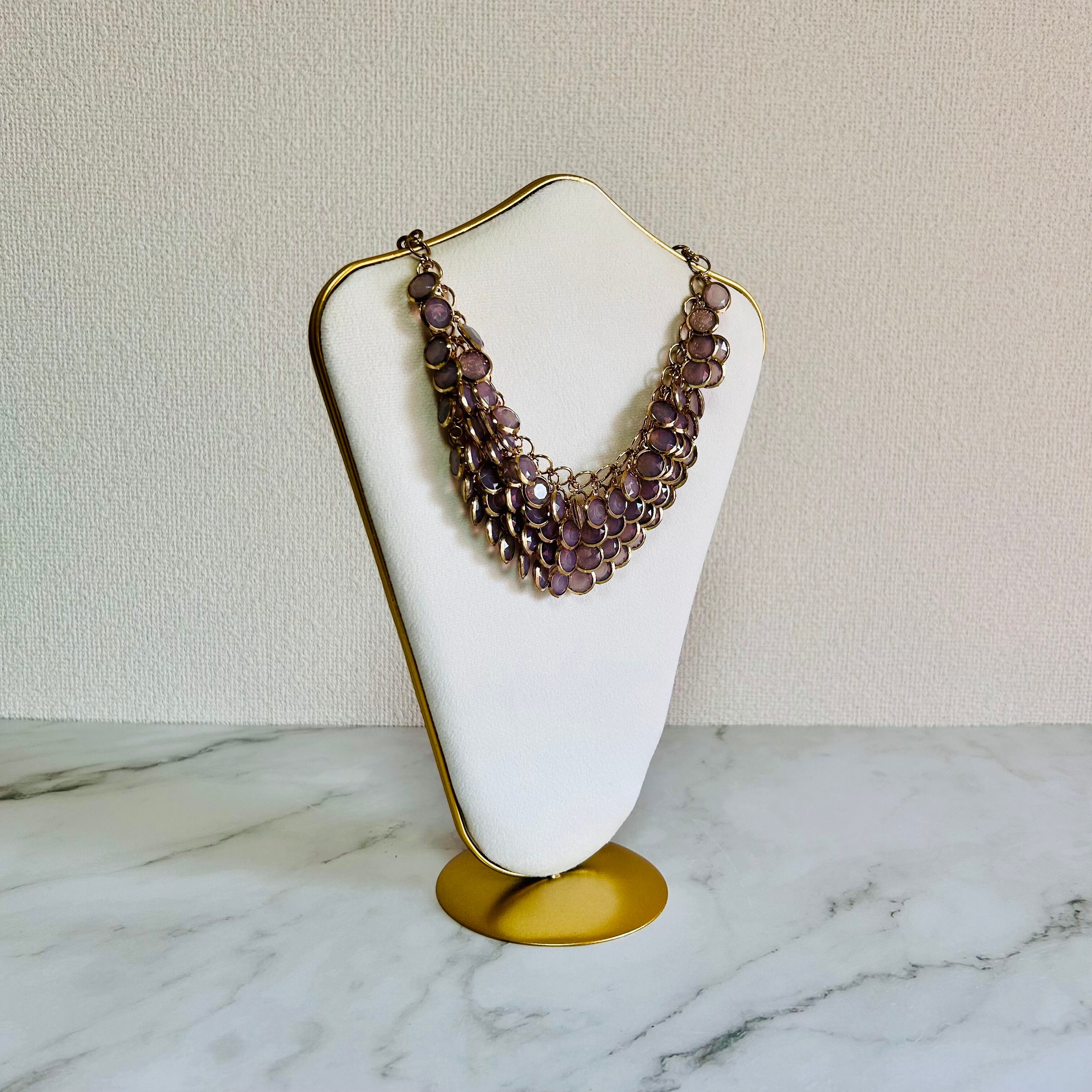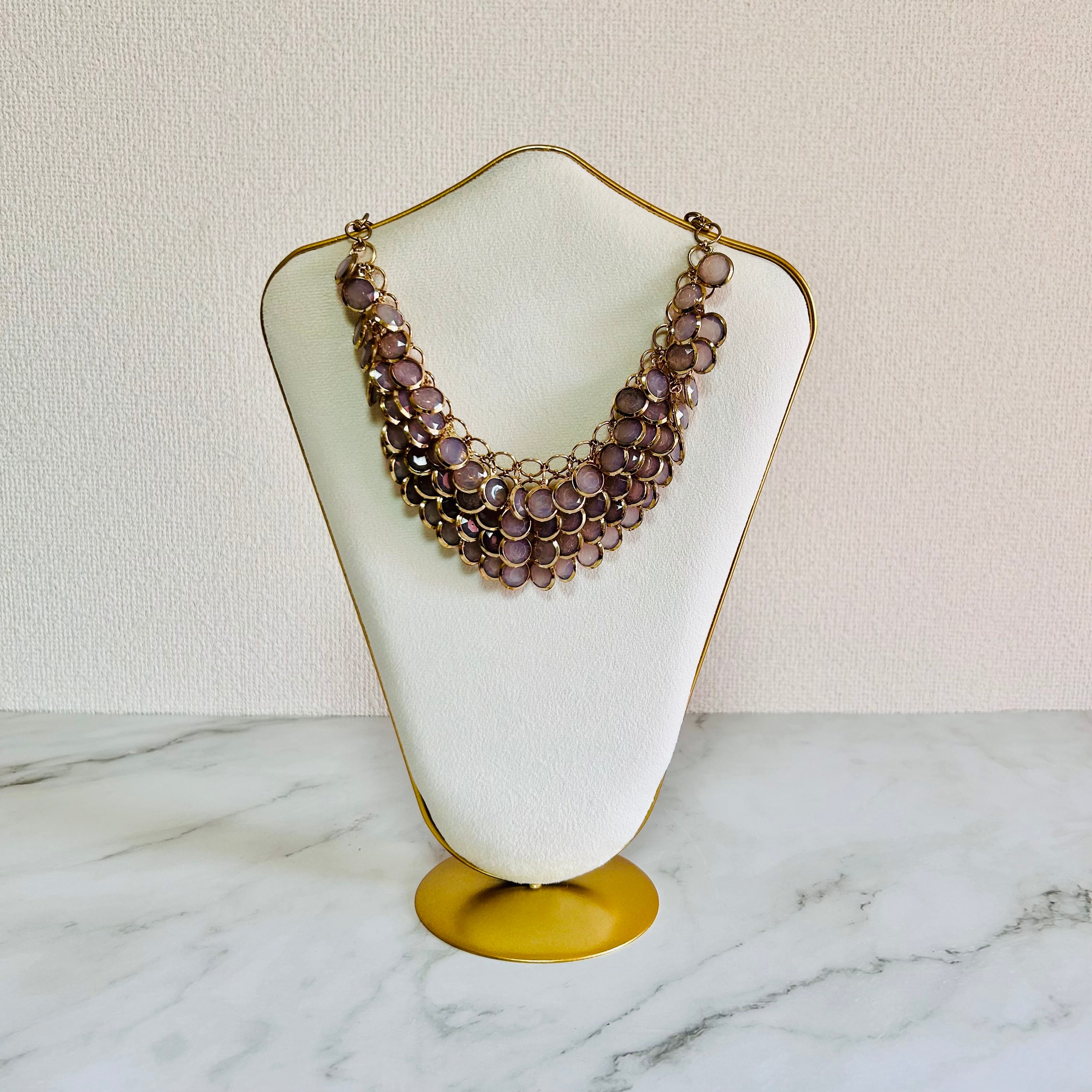 繊細に連なる小さな円が幾重にも重なり、動きに合わせて表情が変わる華やかなネックレスです。